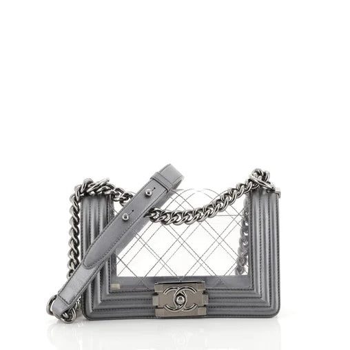CHANEL METALLIC LAMBSKIN PVC QUILTED SMALL BOY BAG