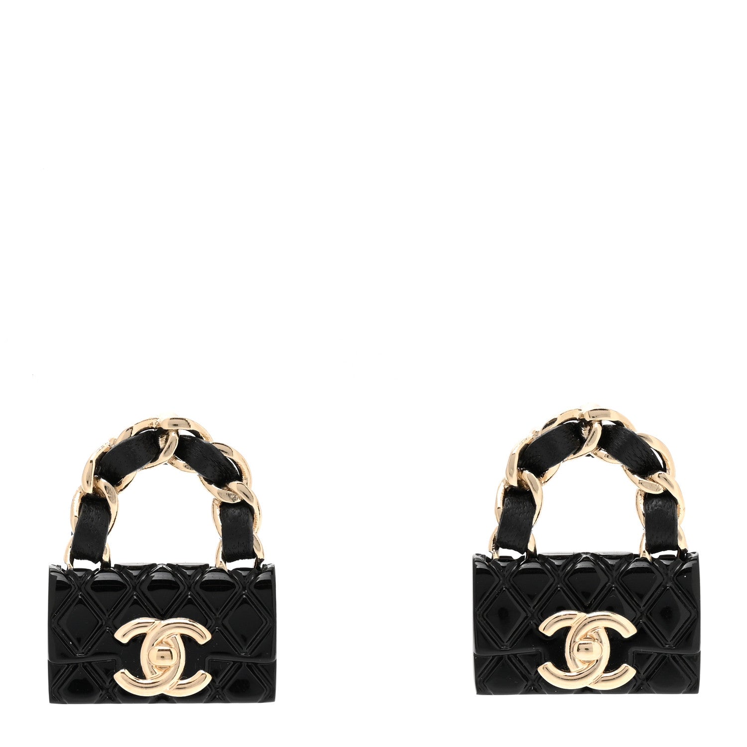 CHANEL METALLIC RESIN QUILTED CC TURNLOCK CHAIN FLAP EARRINGSCHANEL METALLIC RESIN QUILTED CC TURNLOCK CHAIN FLAP EARRINGS