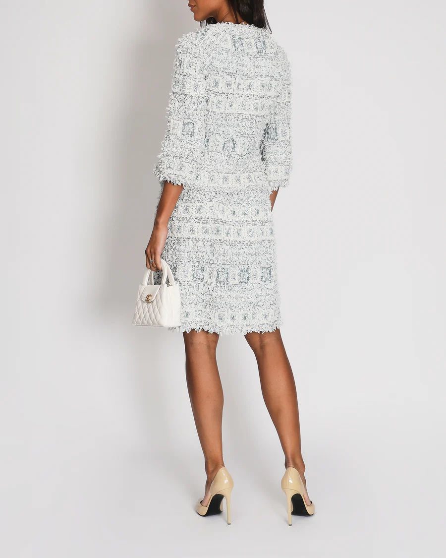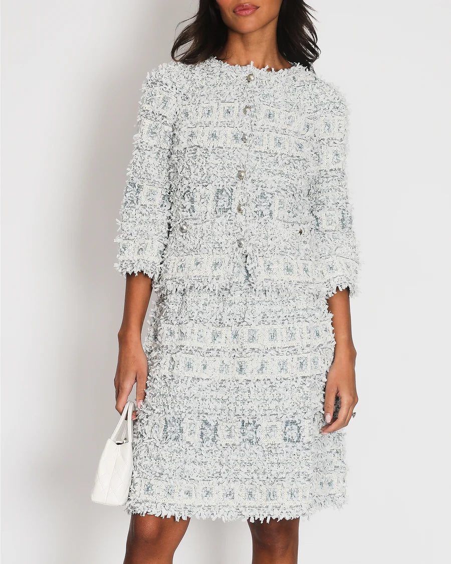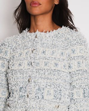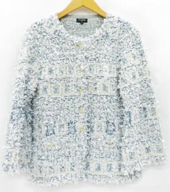 Chanel Baby Blue Metallic Tweed Embellished Jacket Blazer