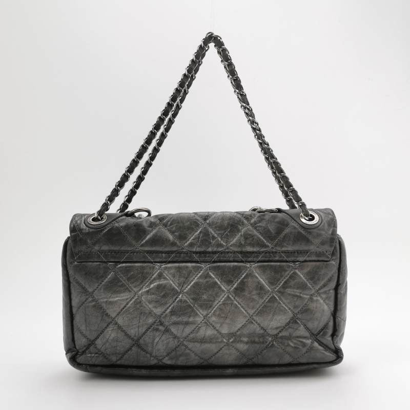 Chanel Paris Bombay Pondicherry Flap Bag Quilted Large Grey Silver HardwareChanel Paris Bombay Pondicherry Flap Bag Quilted Large Grey Silver Hardware