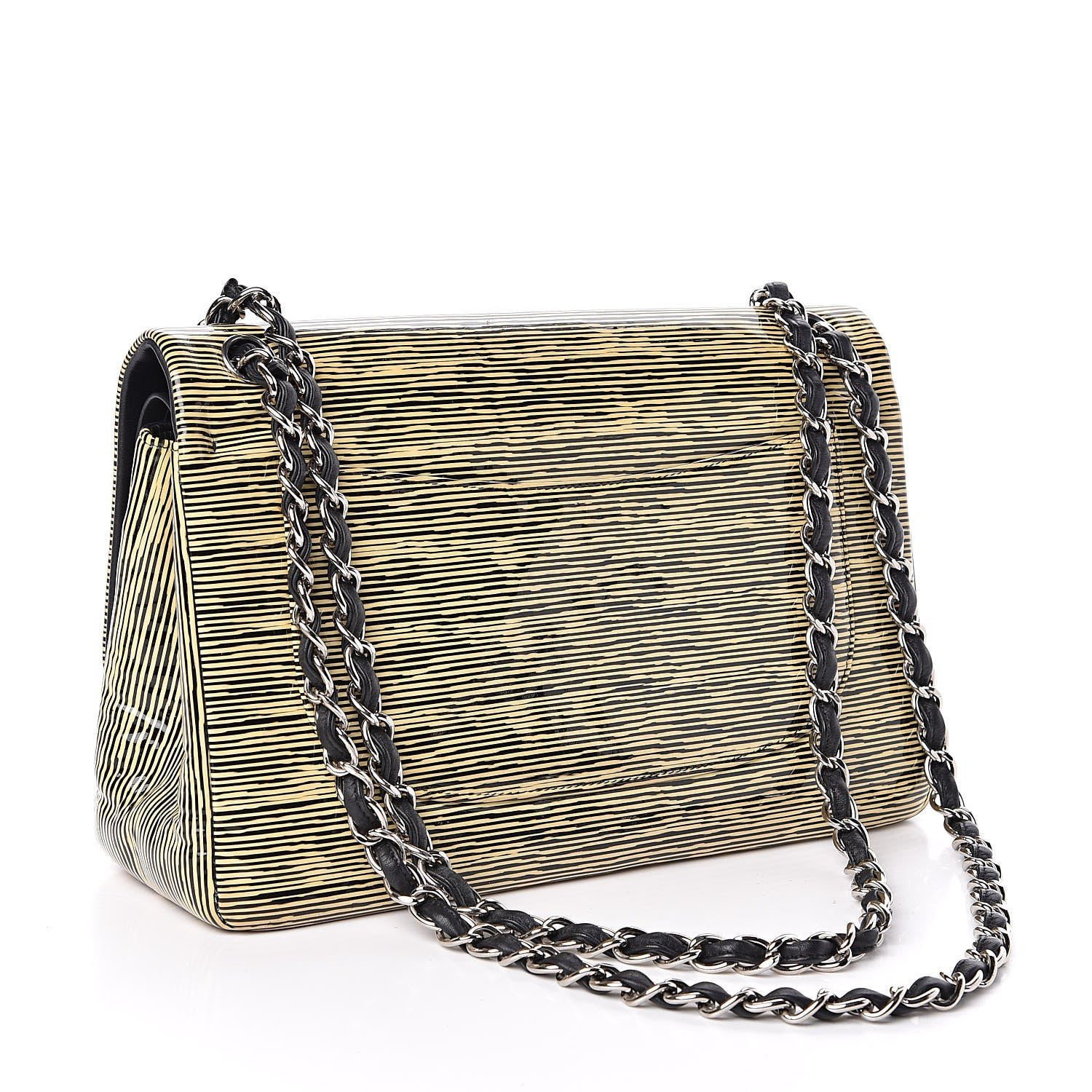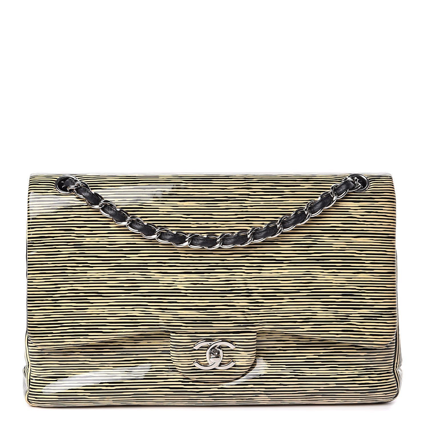 CHANEL Patent Calfskin Striped Jumbo Double FlapCHANEL Patent Calfskin Striped Jumbo Double Flap