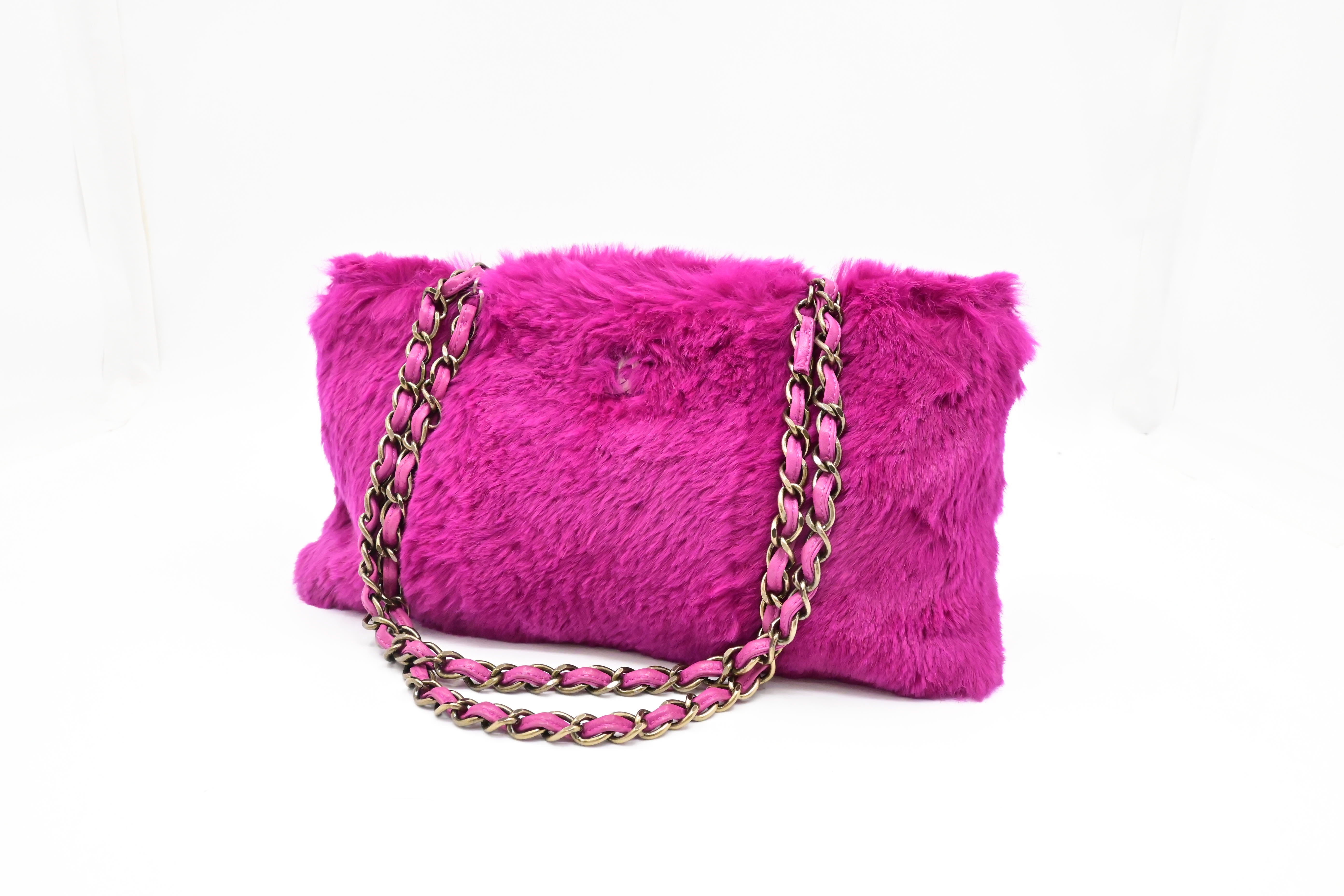 Chanel Chain Shoulder Bag in Pink FurChanel Chain Shoulder Bag in Pink Fur