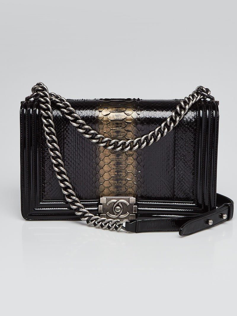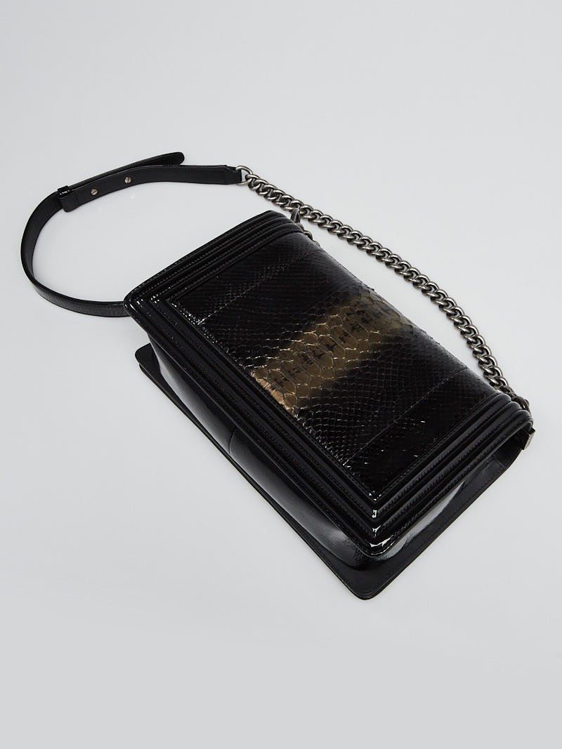 CHANEL PYTHON AND PATENT LEATHER MEDIUM BOY BAG