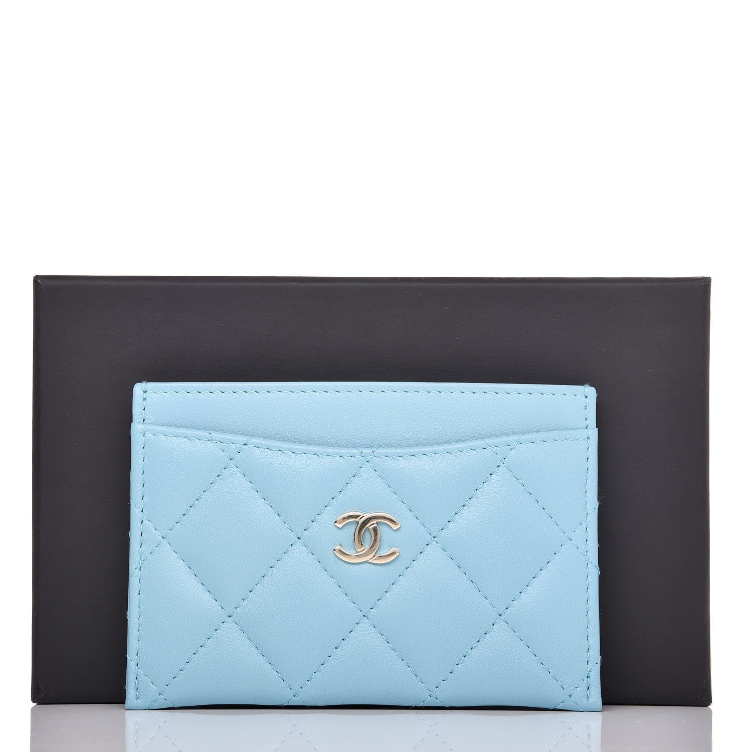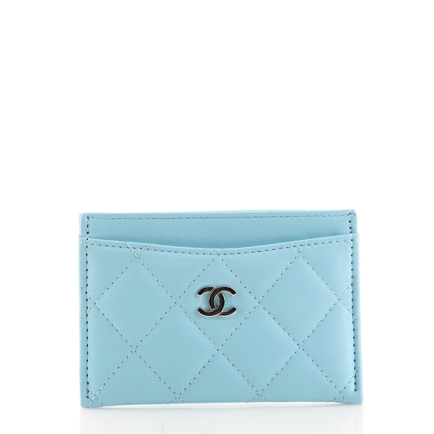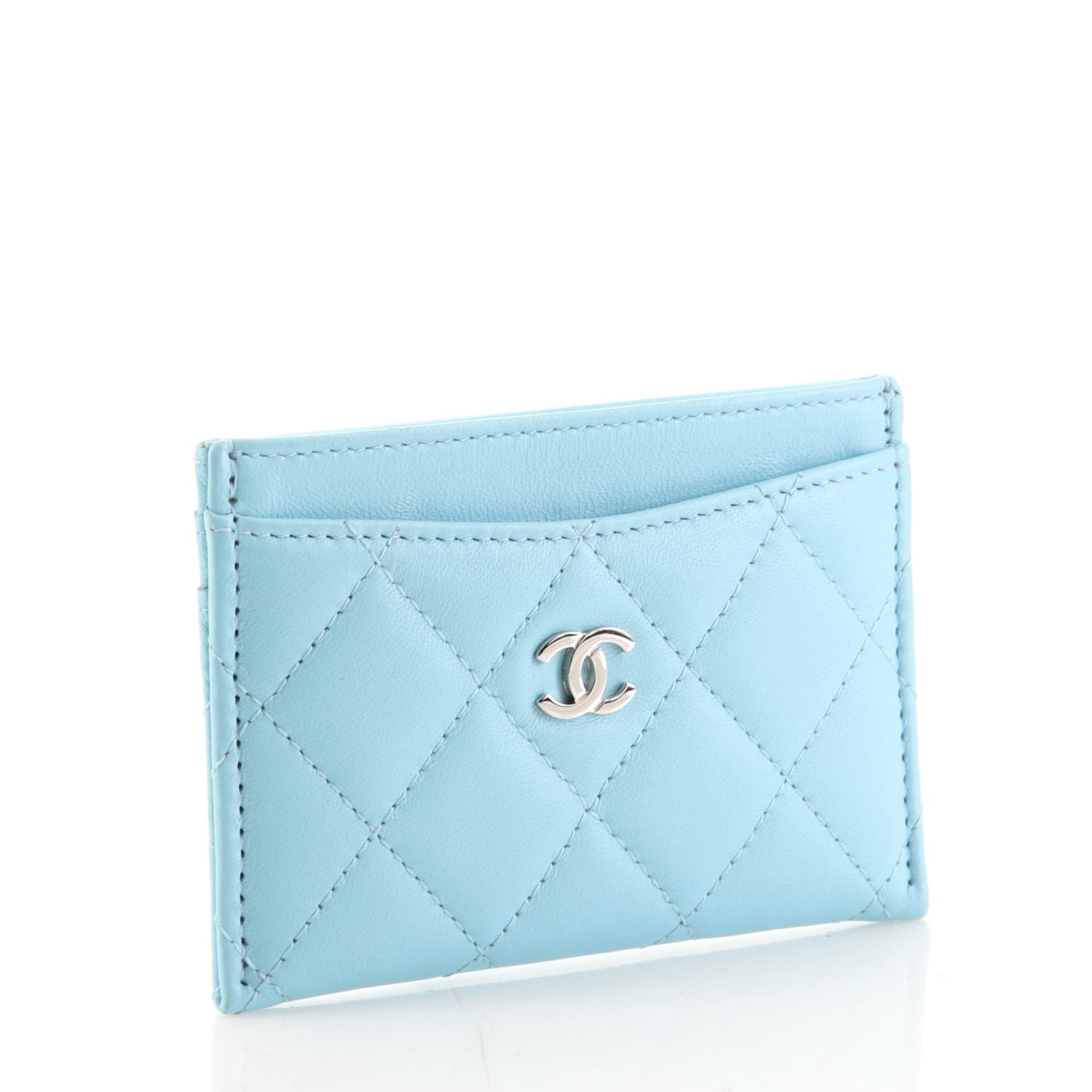 CHANEL QUILTEDÂ LAMBSKIN CARD HOLDER NEON BLUE