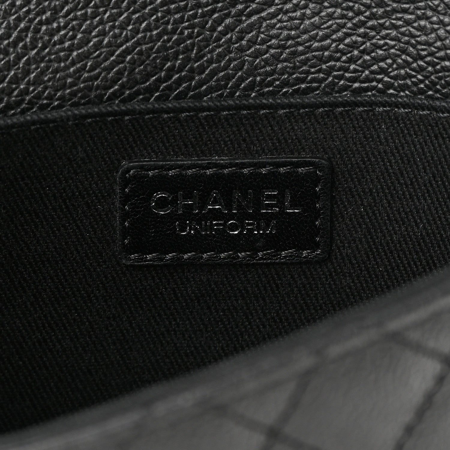 This Stunning Belt/ Clutch Bag is finely Crafted of Grained Calfskin leather with signature diamond-shaped quilting in black.