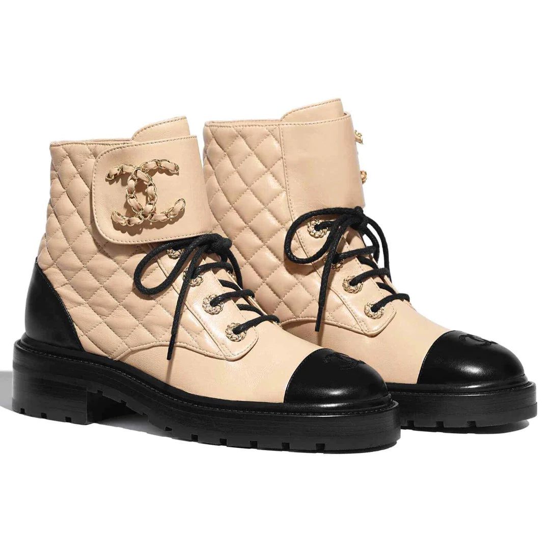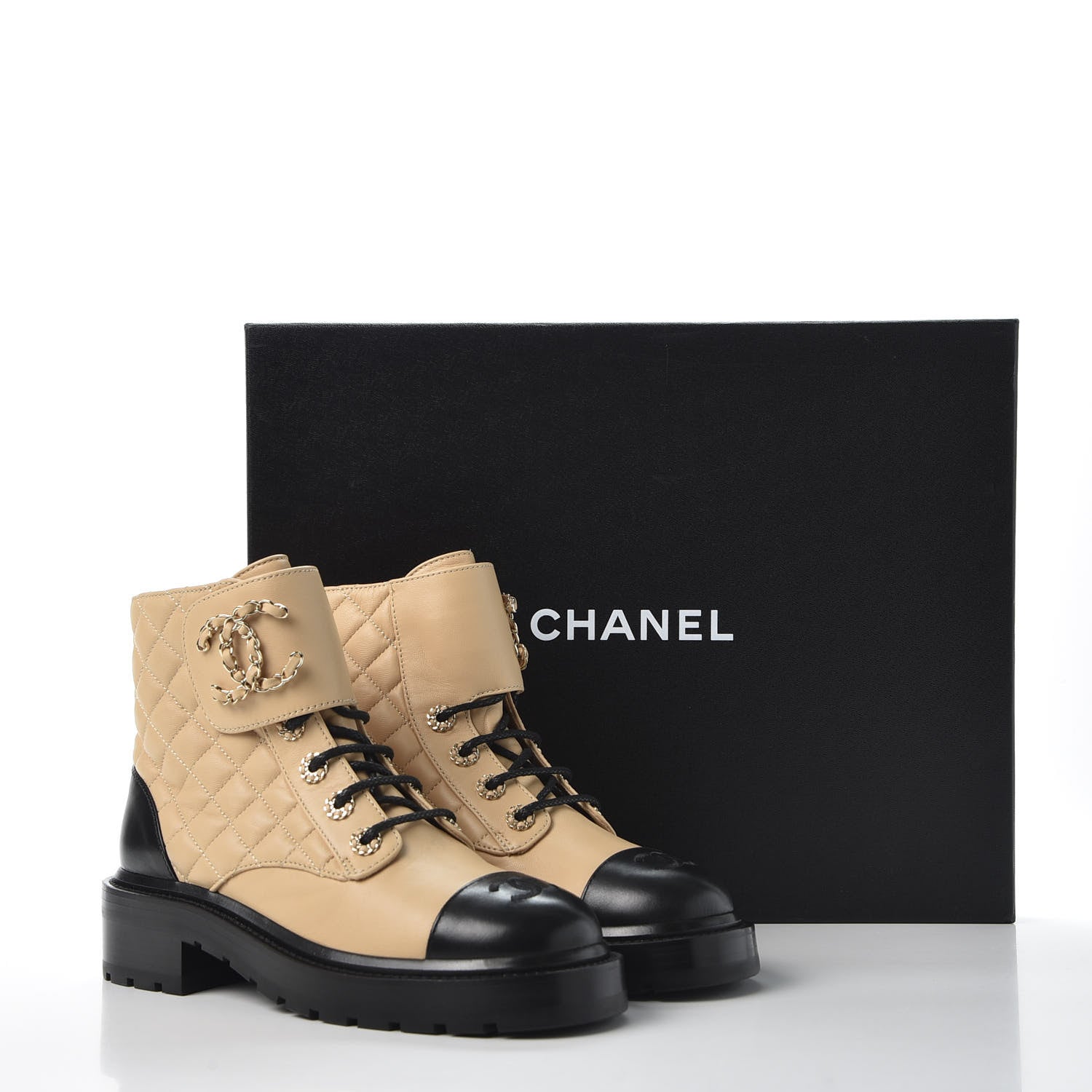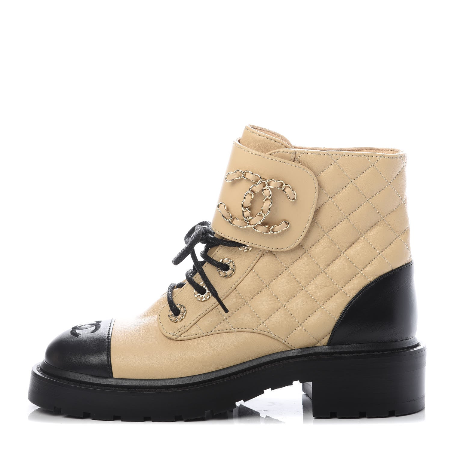 CHANEL QUILTED LAMBSKIN CC CHAIN COMBAT BOOTSCHANEL QUILTED LAMBSKIN CC CHAIN COMBAT BOOTS