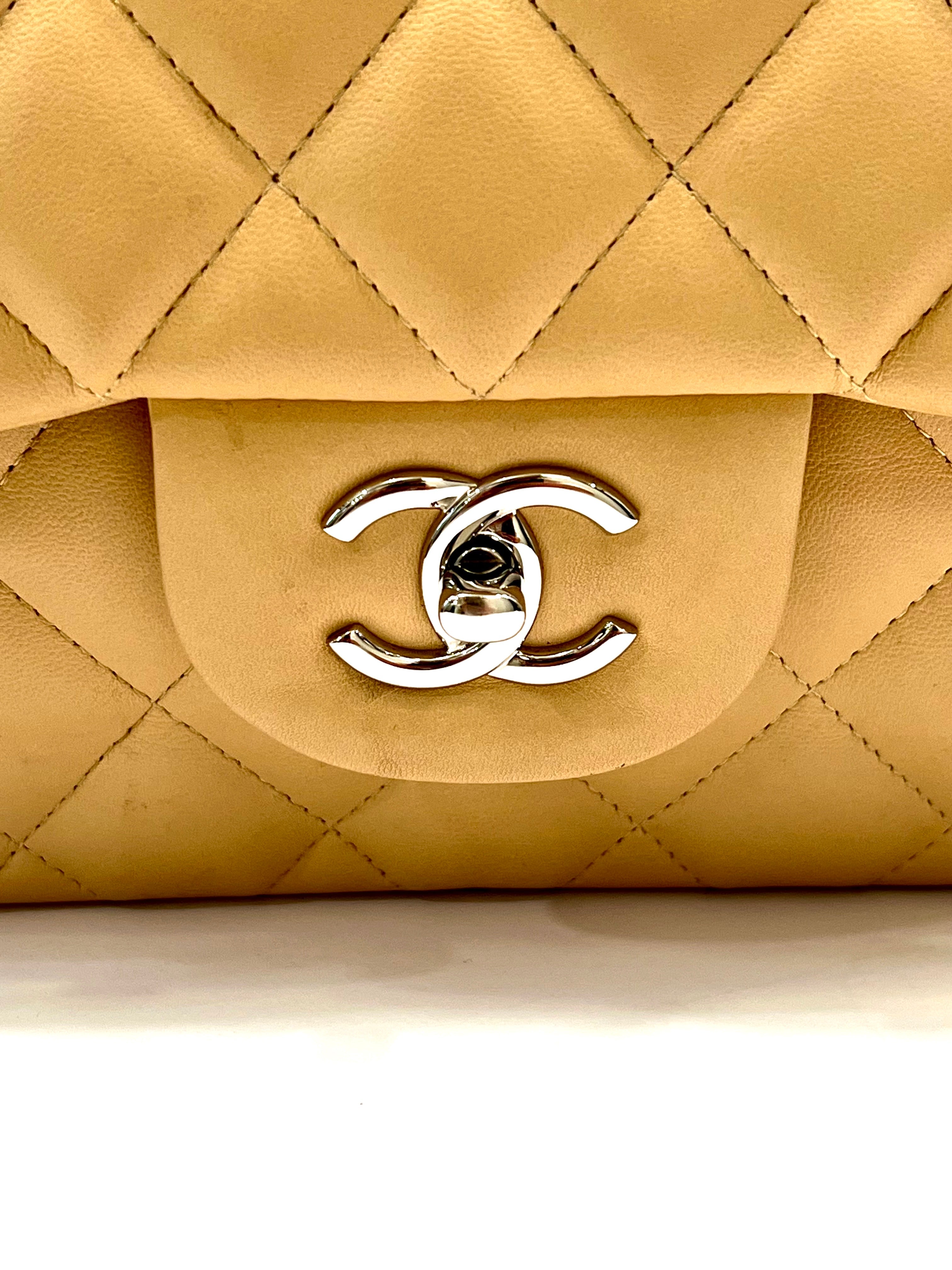 CHANEL QUILTED LAMBSKIN DOUBLE FLAP BEIGE SHOULDER BAGCHANEL QUILTED LAMBSKIN DOUBLE FLAP BEIGE SHOULDER BAG