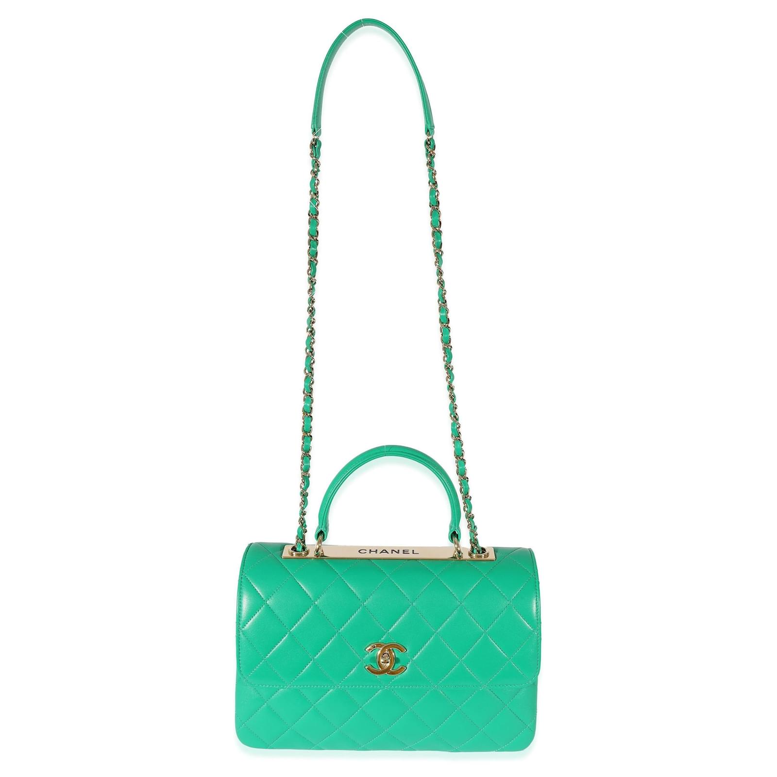 CHANEL QUILTED LAMBSKIN MEDIUM TOP-HANDLE TRENDY BAG KELLY GREEN