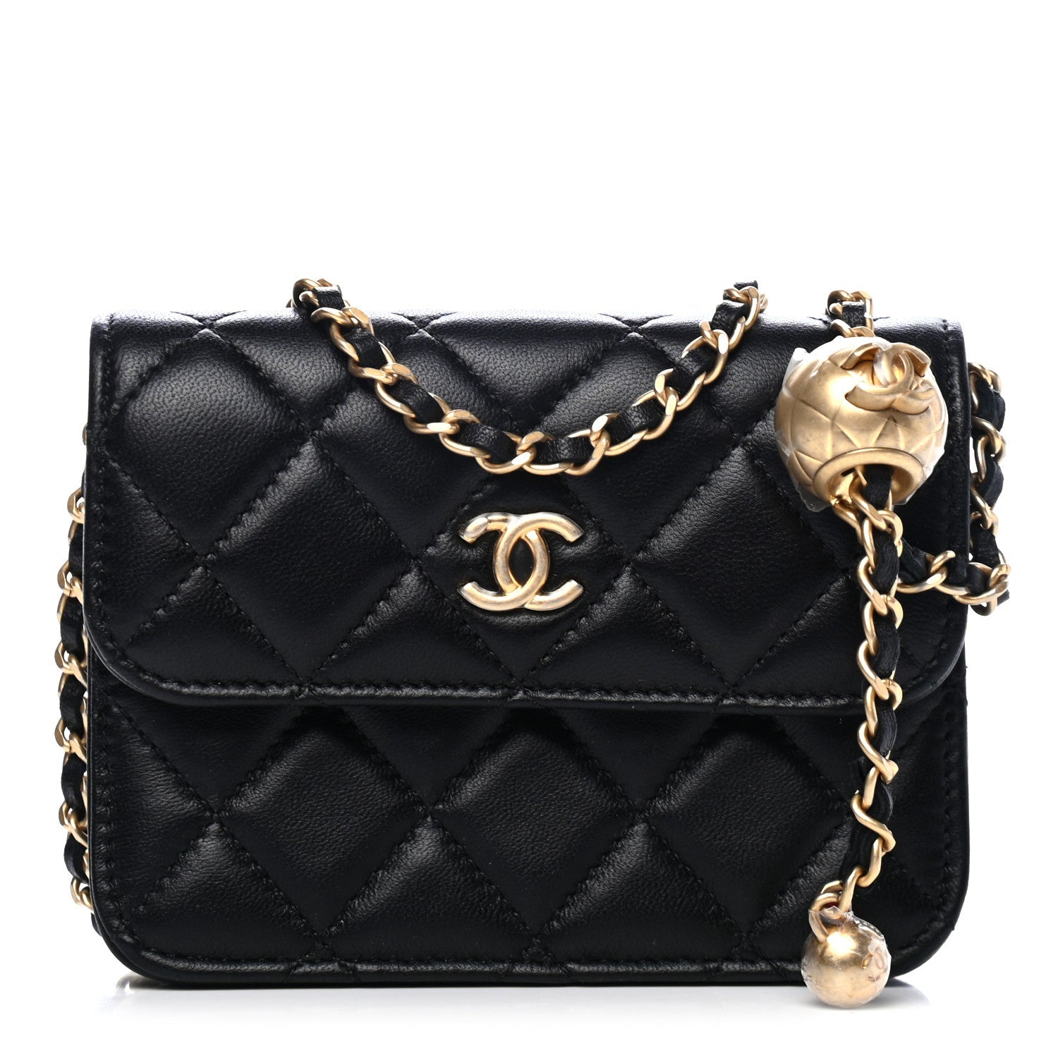 CHANEL QUILTED LAMBSKIN PEARL CRUSH CLUTCH WITH CHAIN