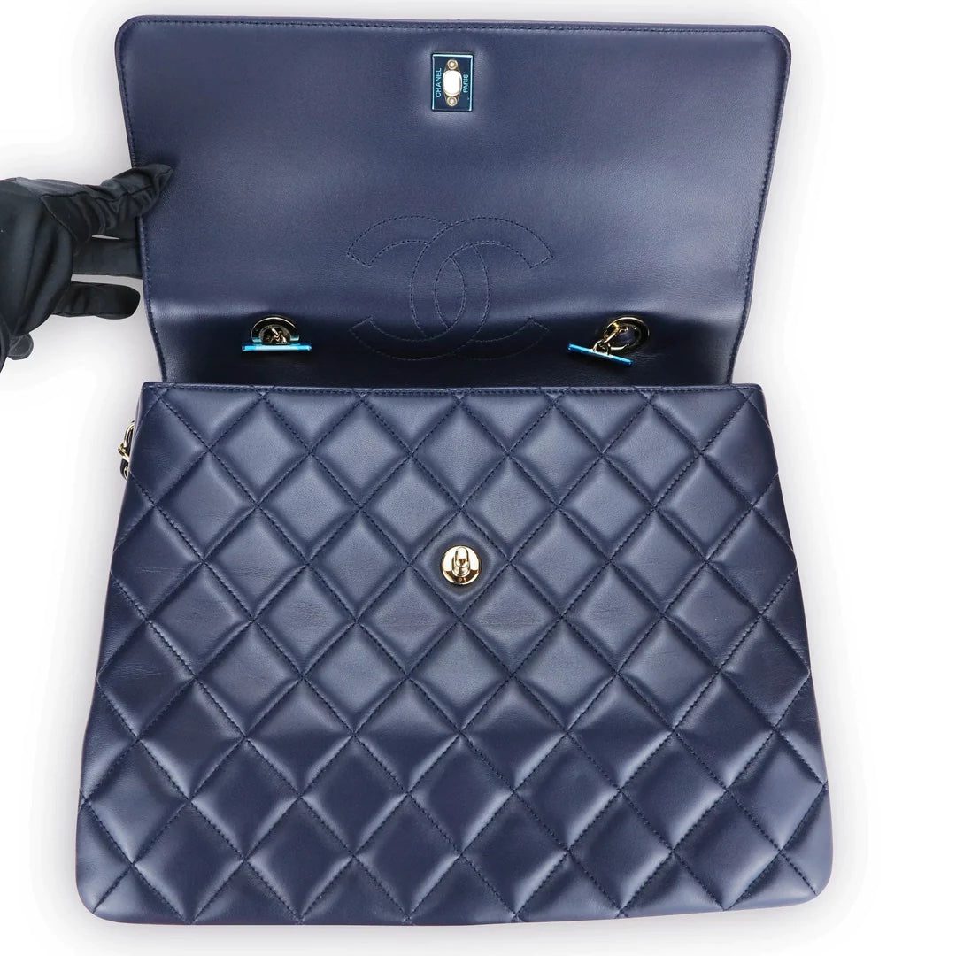 CHANEL QUILTED NAVY LAMBSKIN LEATHER TRENDY CC HANDLE FLAP BAG
