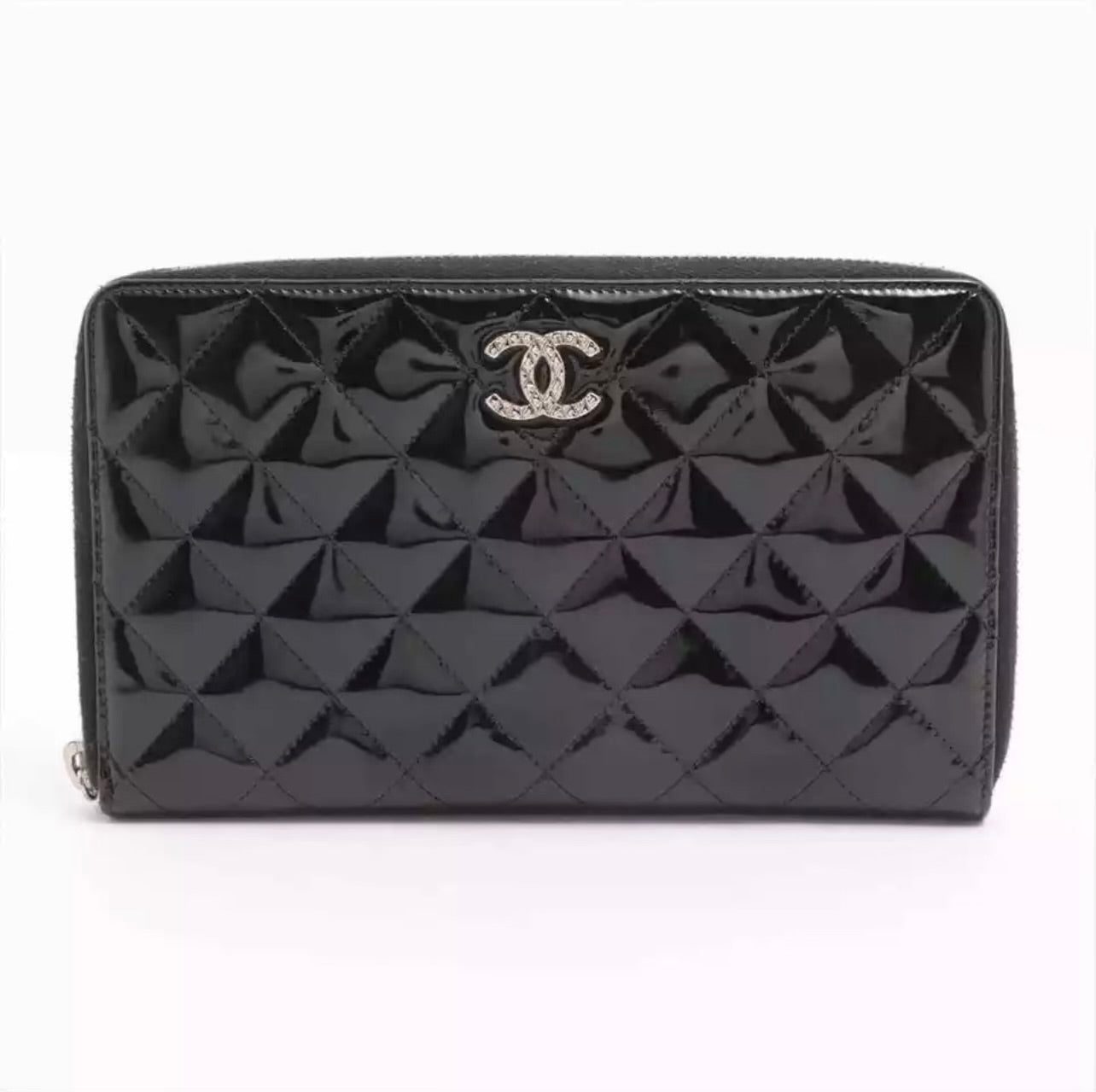 CHANEL Matelasse Quilted Patent Leather CC Zip Around Wallet OrganizerCHANEL Matelasse Quilted Patent Leather CC Zip Around Wallet Organizer