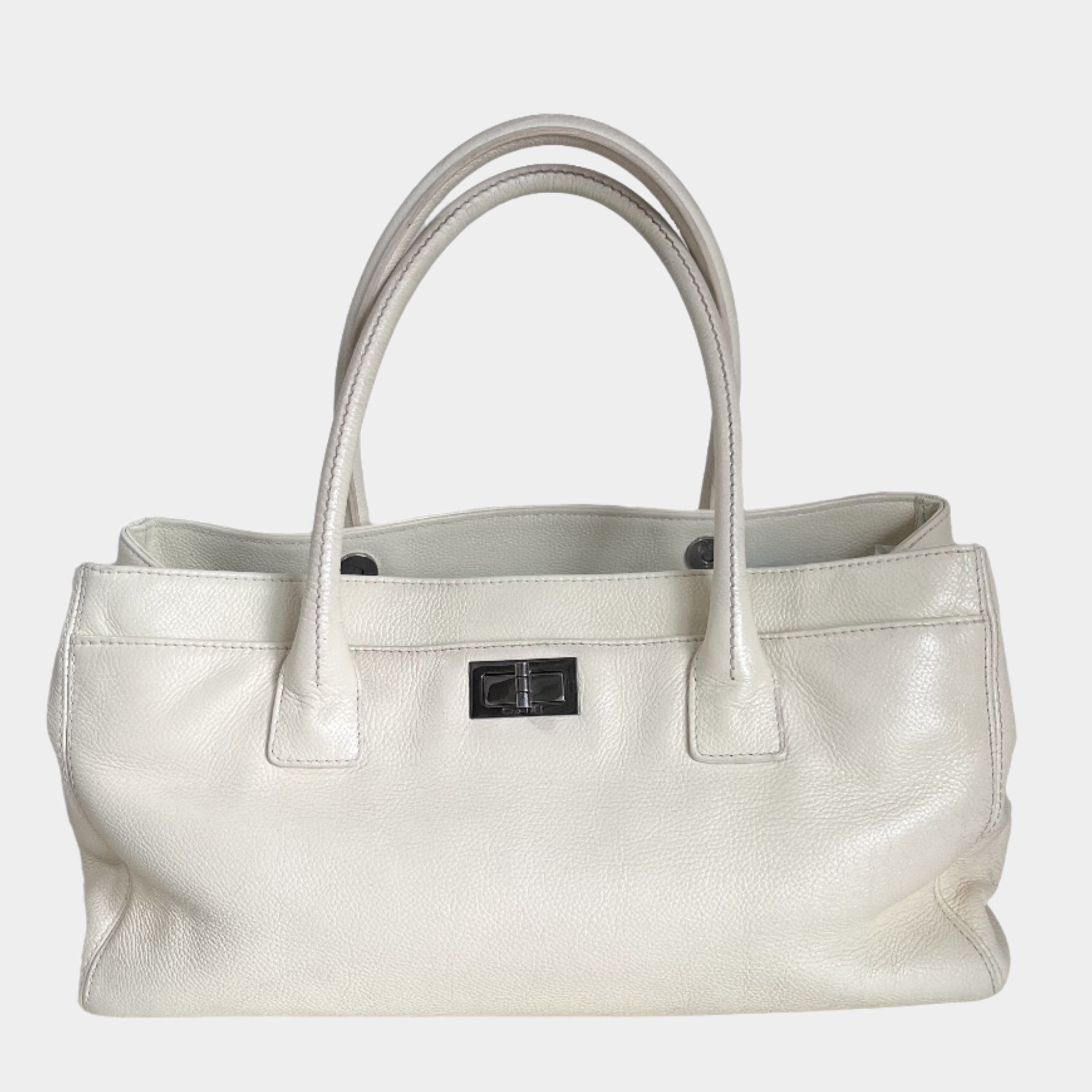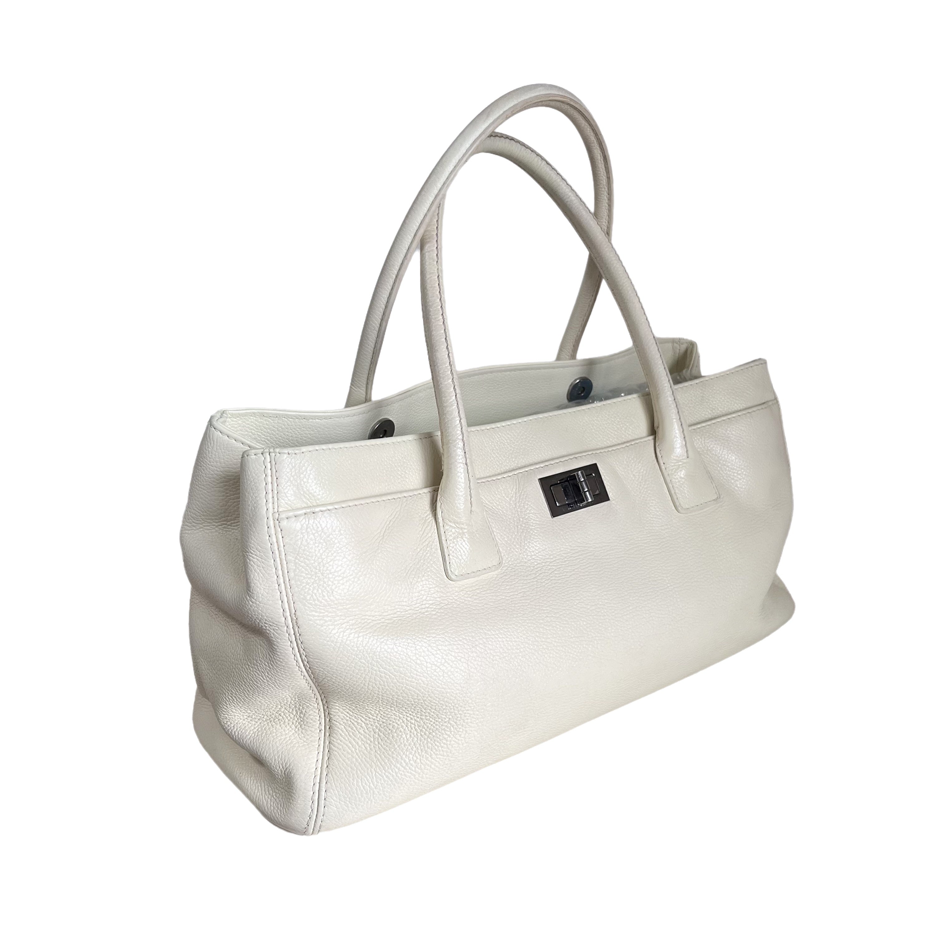 Chanel Cerf Executive East West Small White Caviar Leather HandbagChanel Cerf Executive East West Small White Caviar Leather Handbag