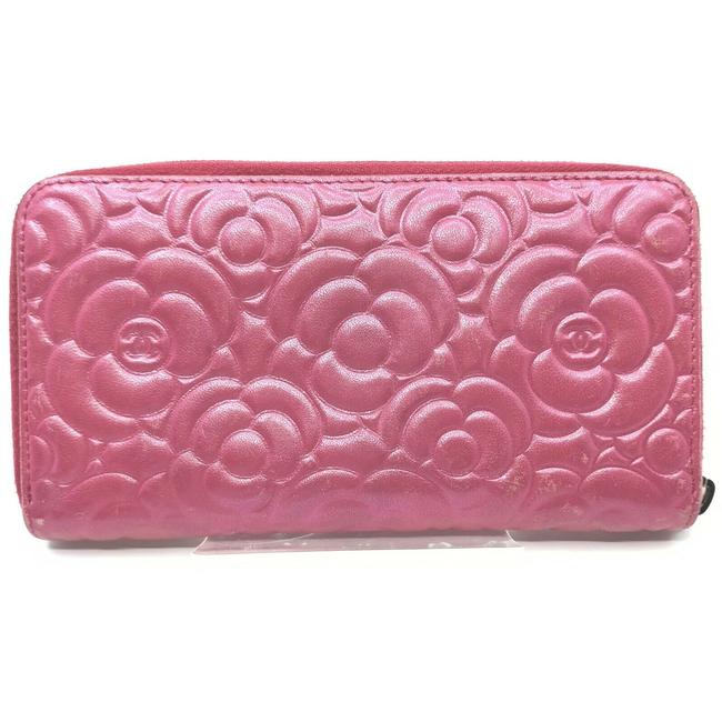 CHANEL Camellia Lamb Skin Pink Zippy Wallet