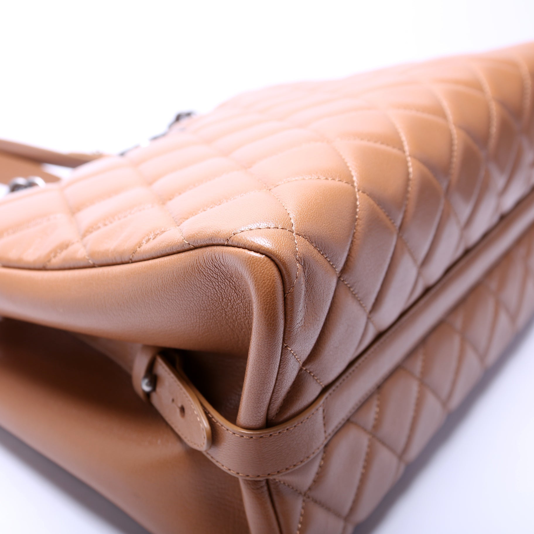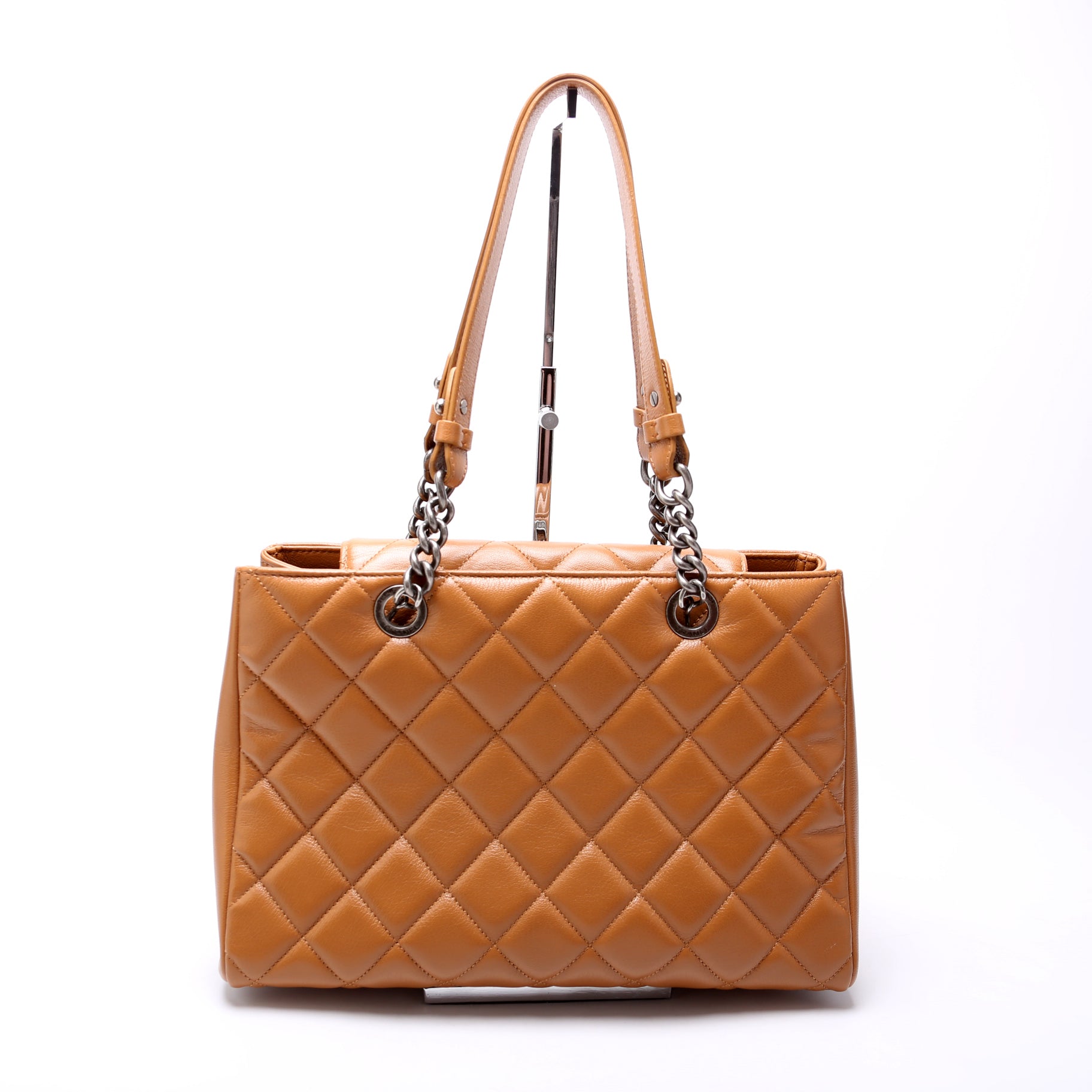 Chanel City Rock Shopping Tote Quilted Goatskin 21M. The exterior is in the classic Chanel Goatskin Leather.Â