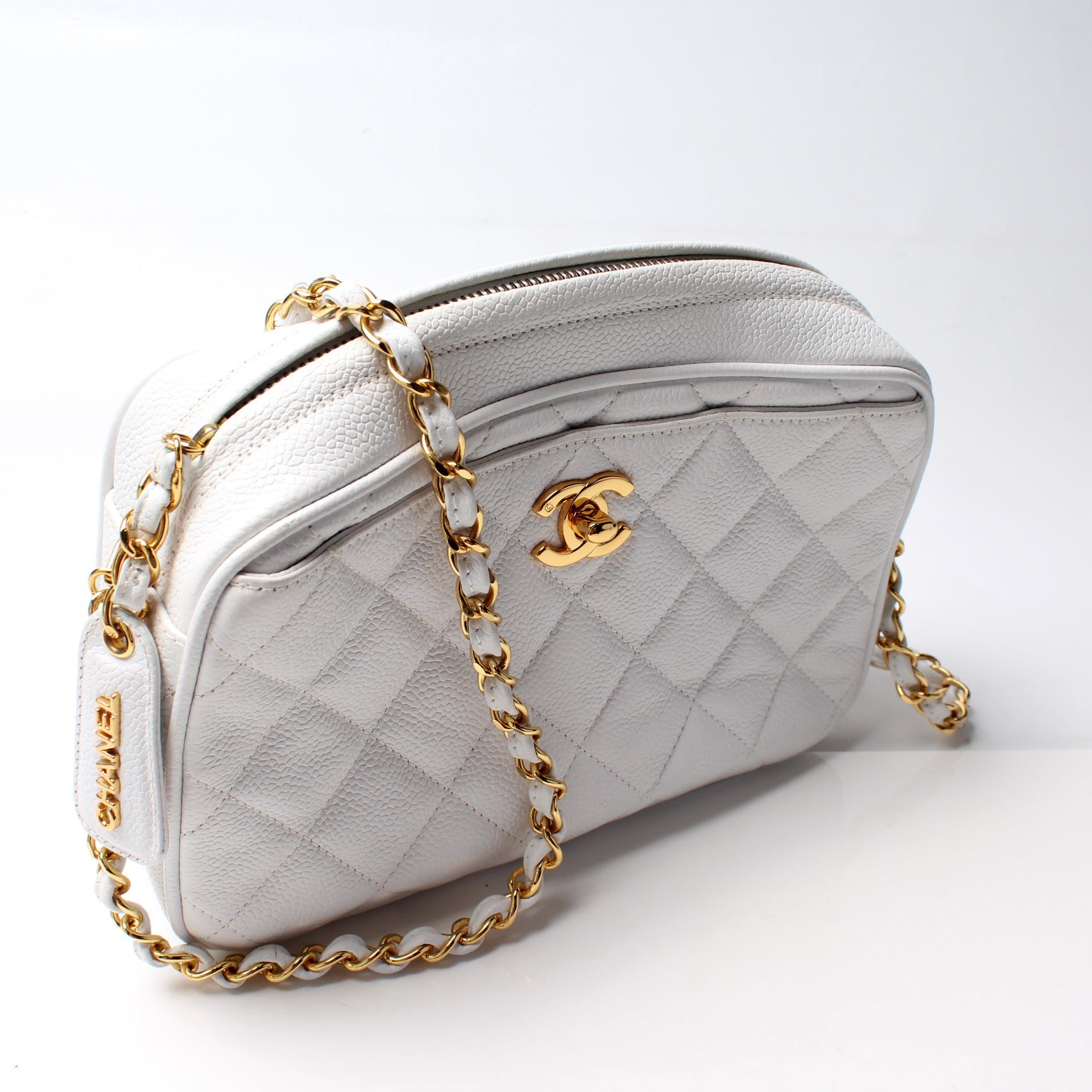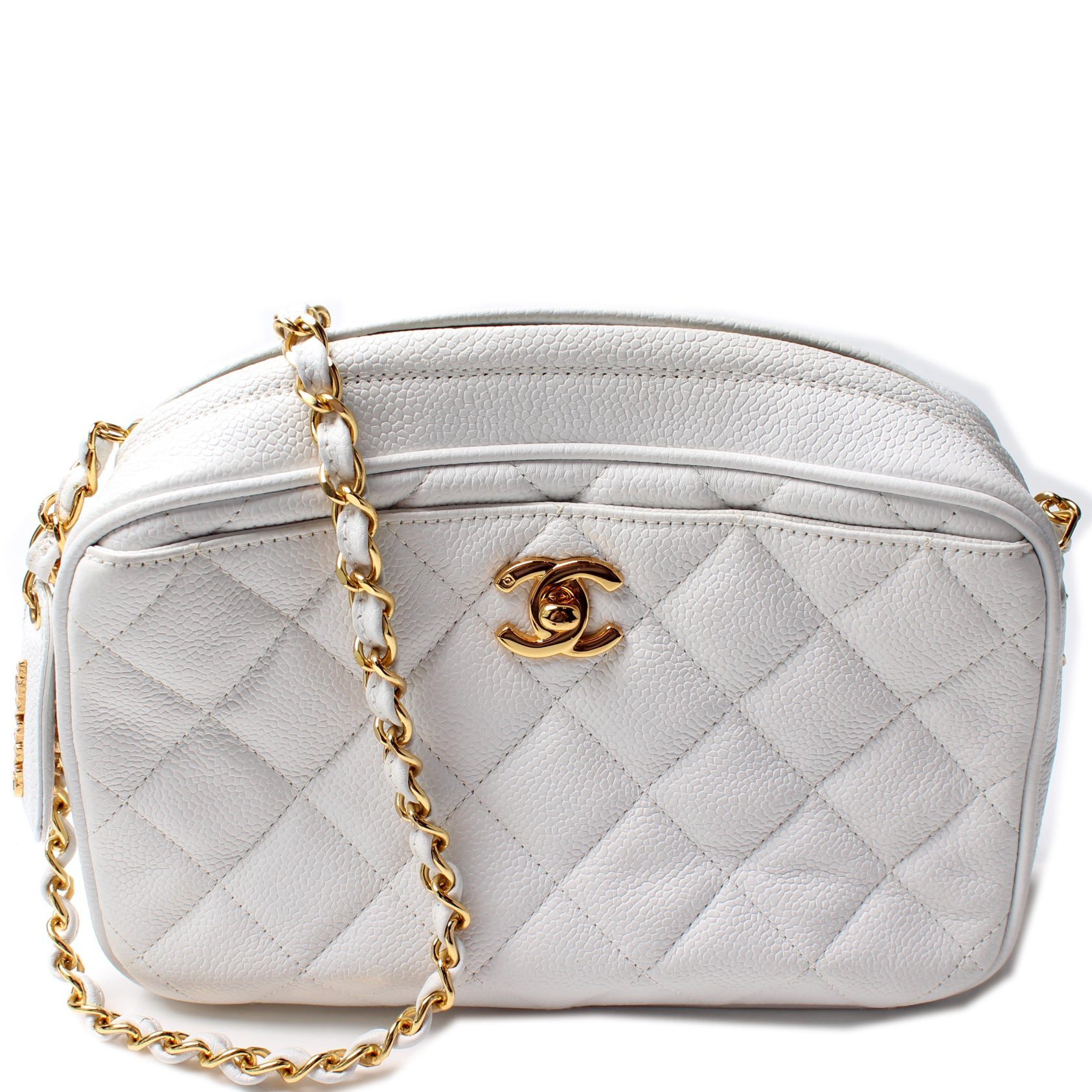 Chanel Classic Camera Bag. The exterior is in the classic Chanel Caviar leather. Â