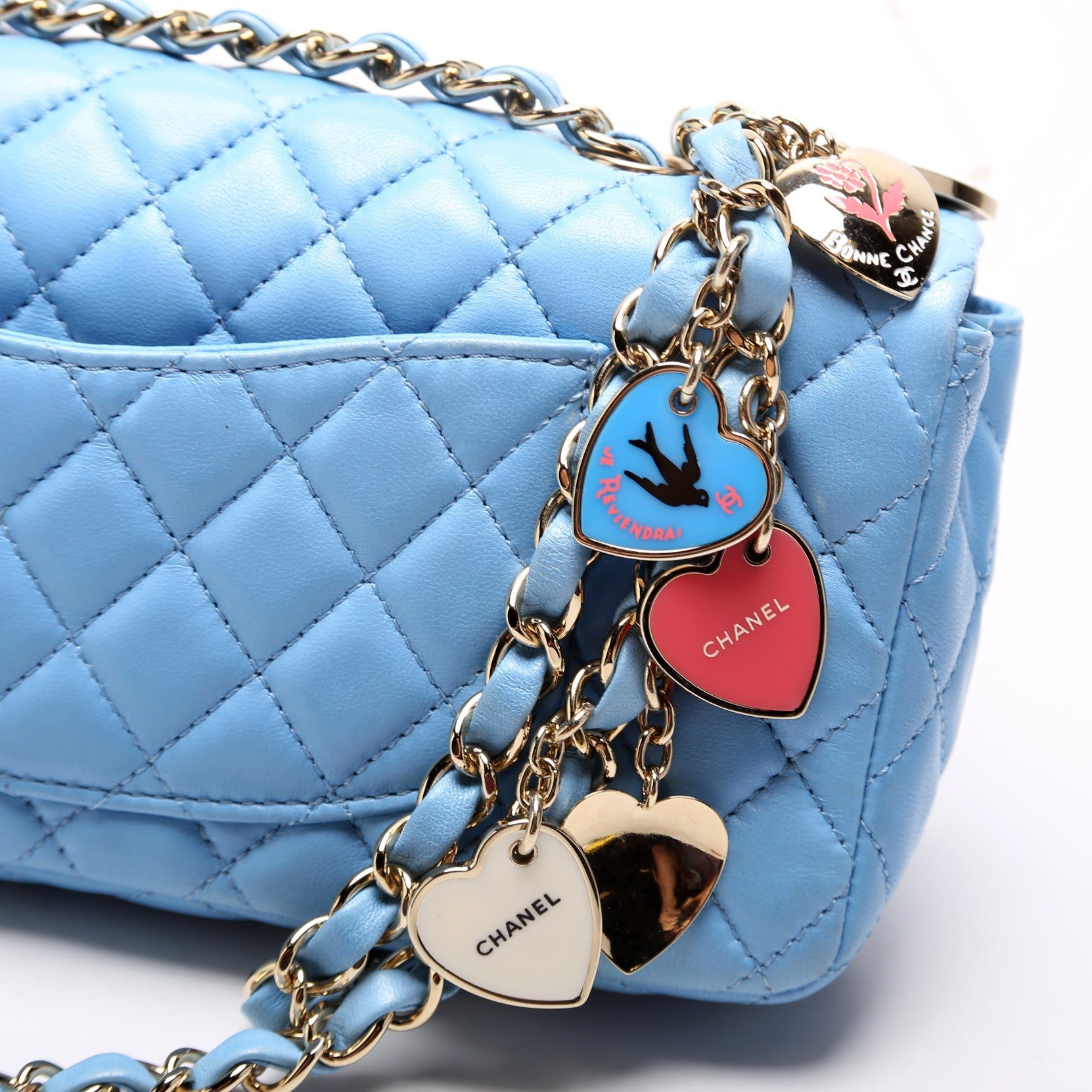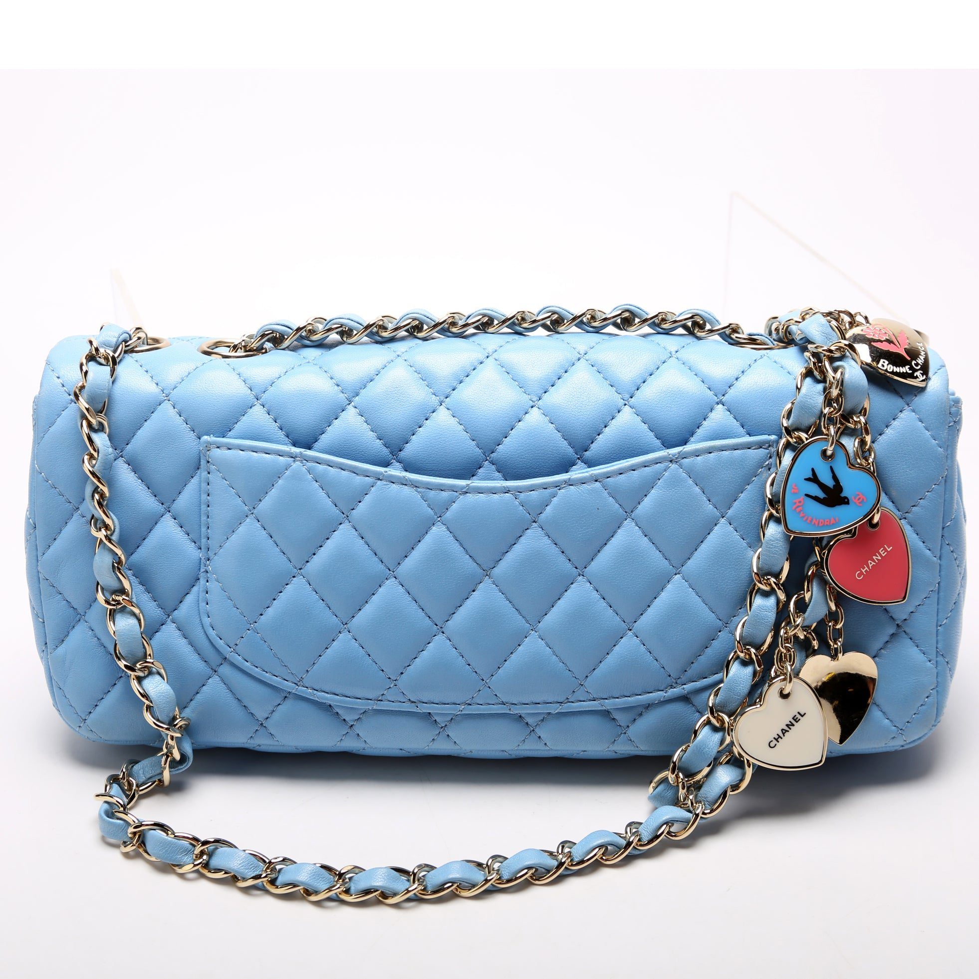 Chanel Classic E/W Valentine Charms Flap Bag�. The exterior is in the classic Chanel Lambskin leather.Â
