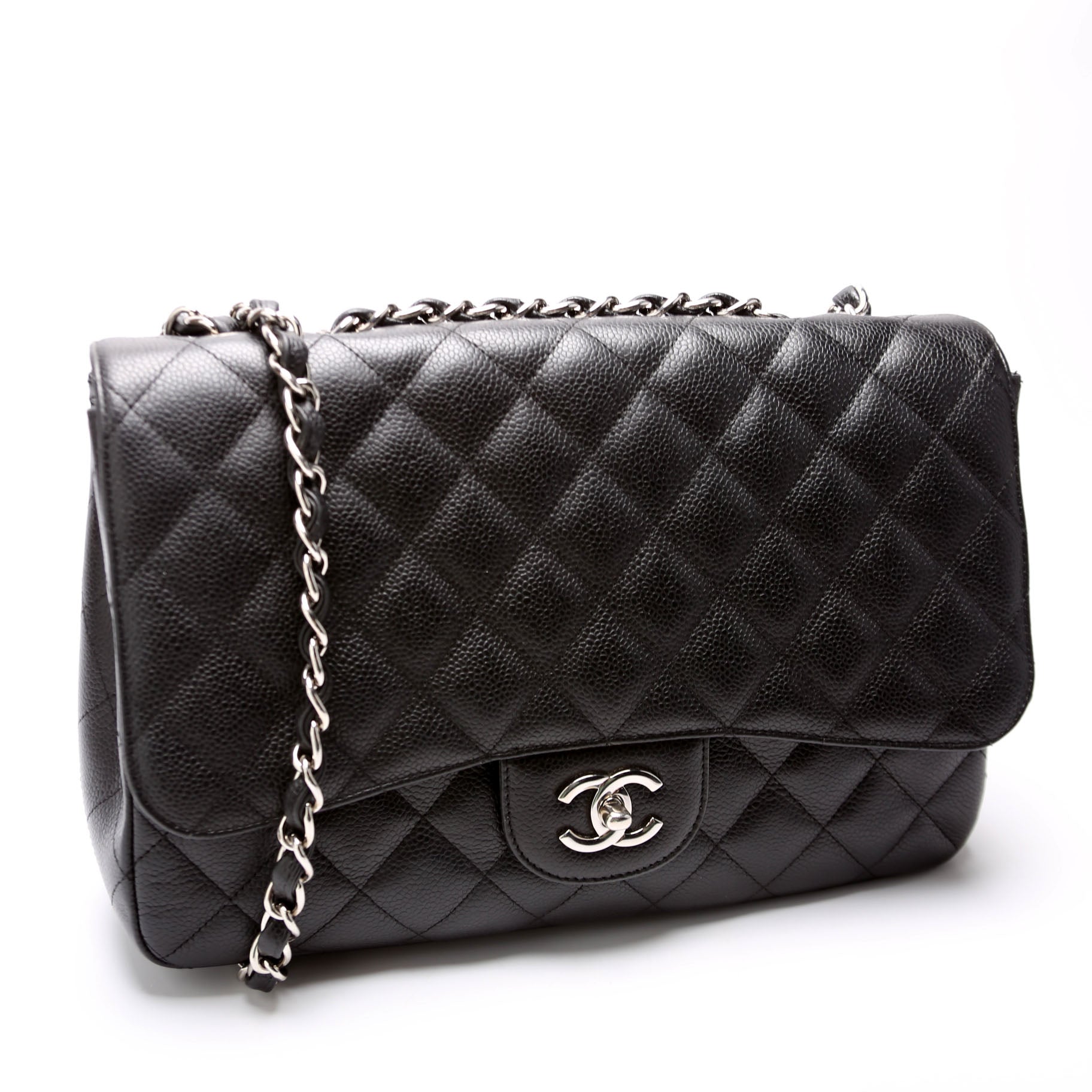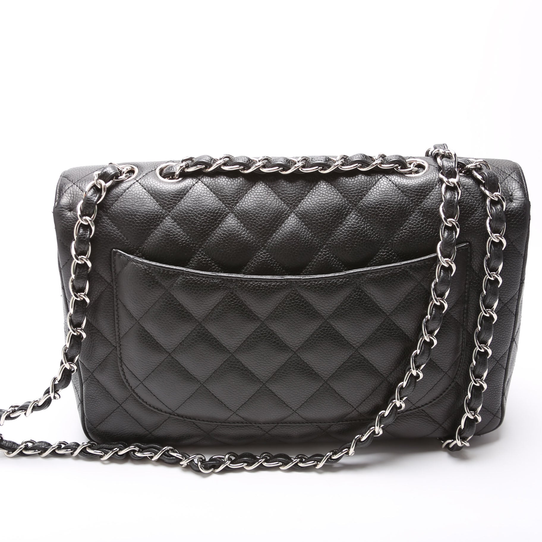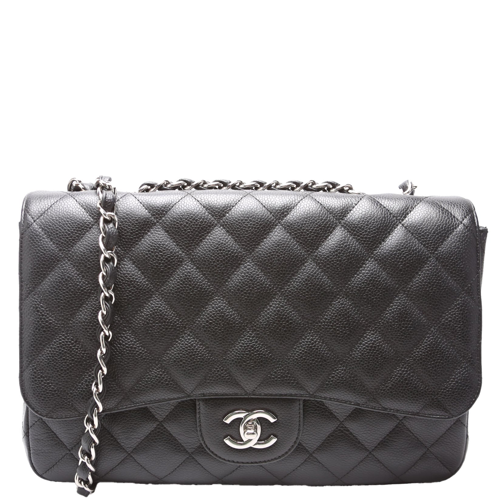Chanel Classic Flap Jumbo. The exterior is in the classic Chanel Caviar leather. Â