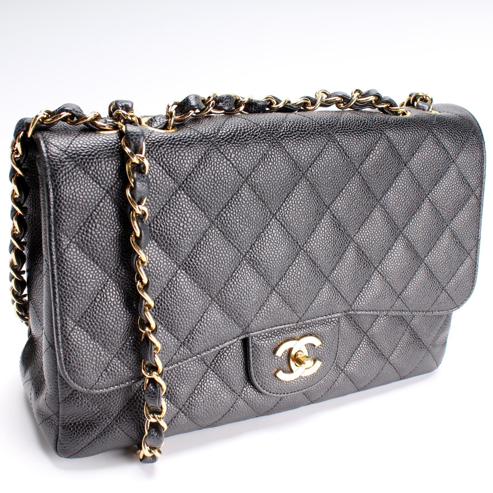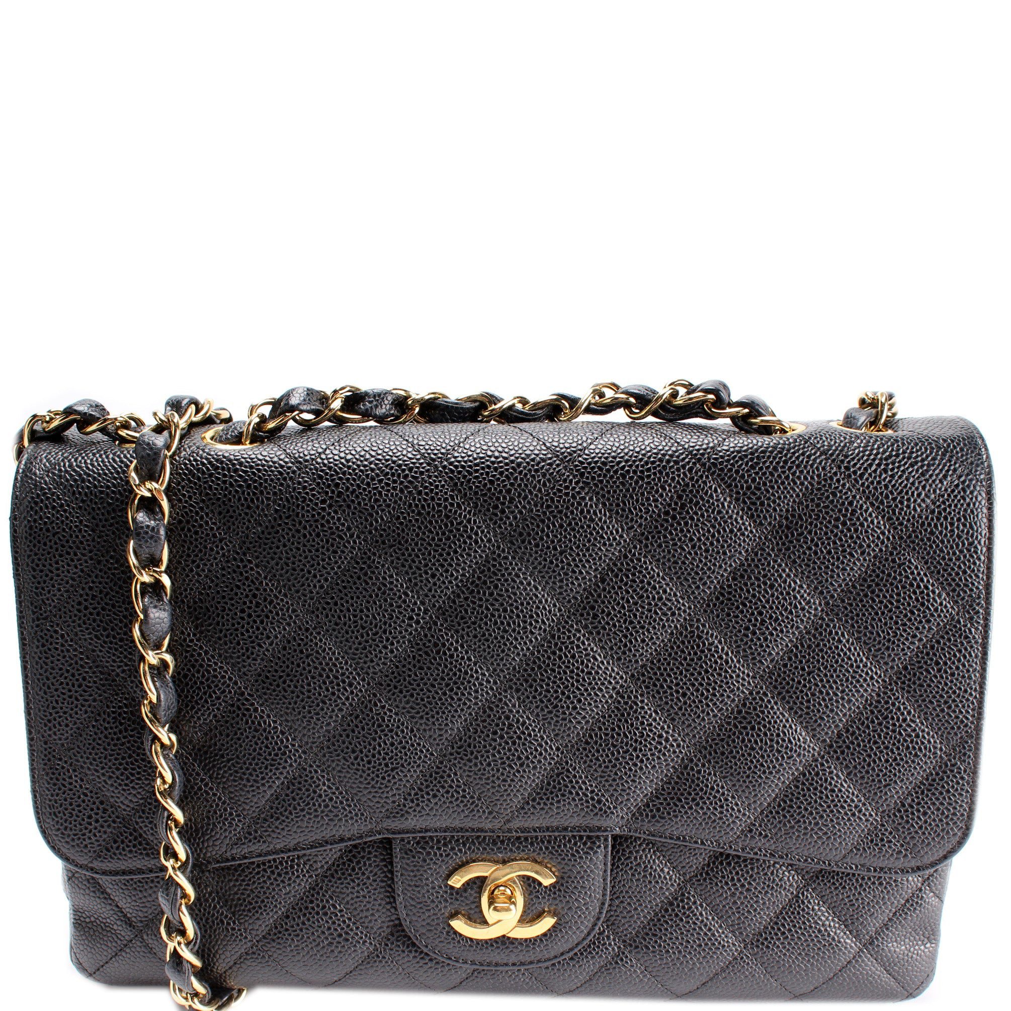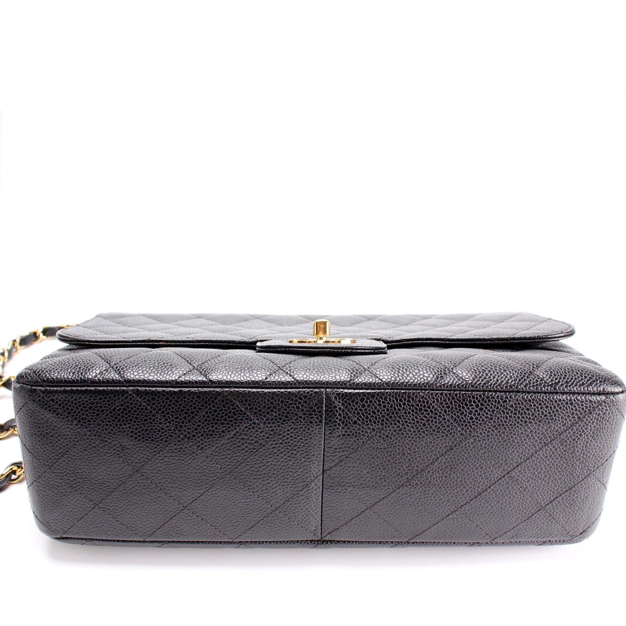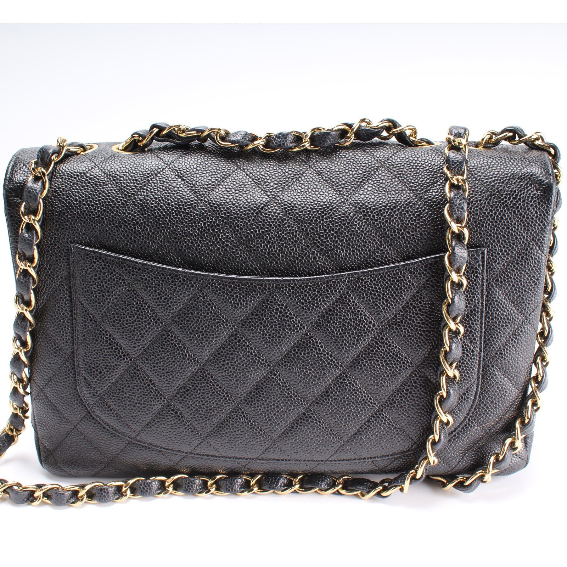 Chanel Classic Flap Jumbo. The exterior is in the classic Chanel Caviar leather. Â