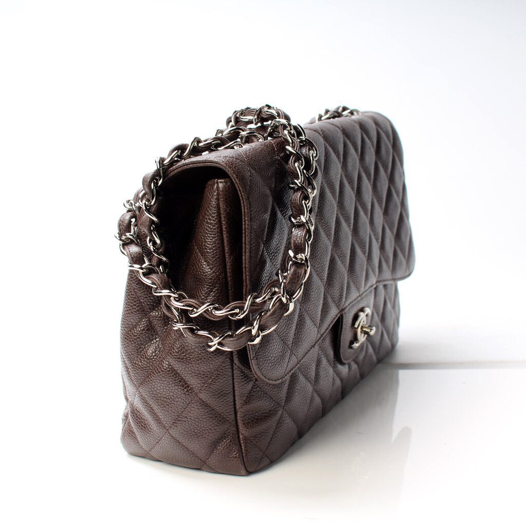 Chanel Classic Flap Jumbo�. The exterior is in the classic Chanel Caviar leather. Â