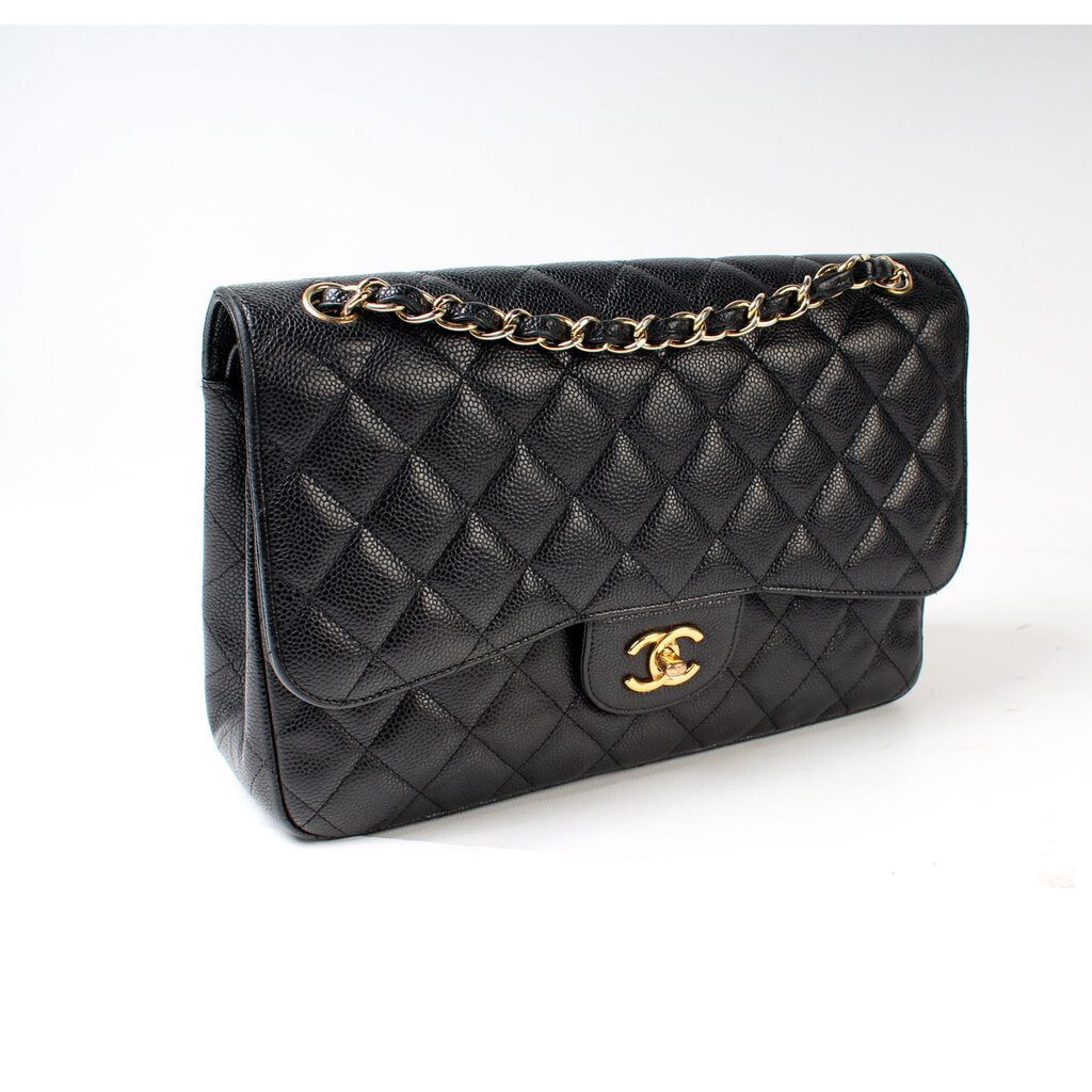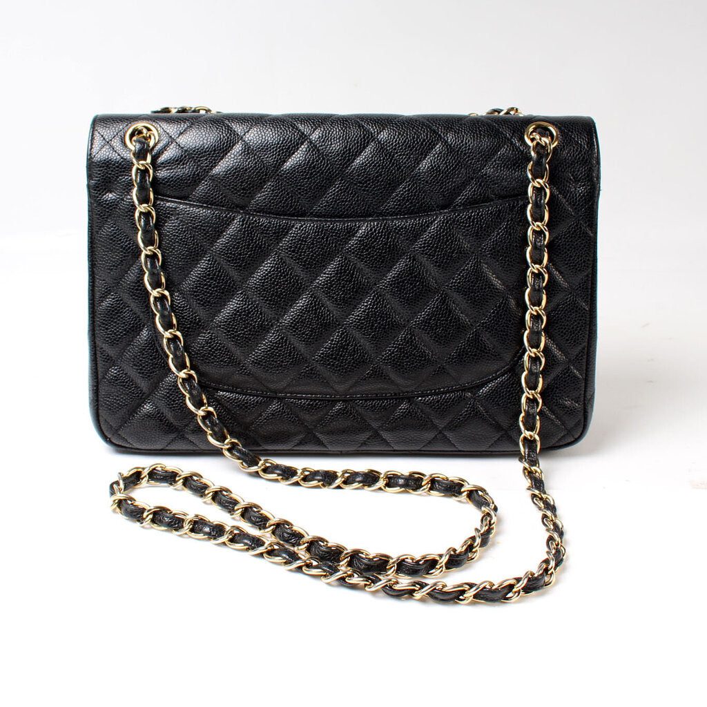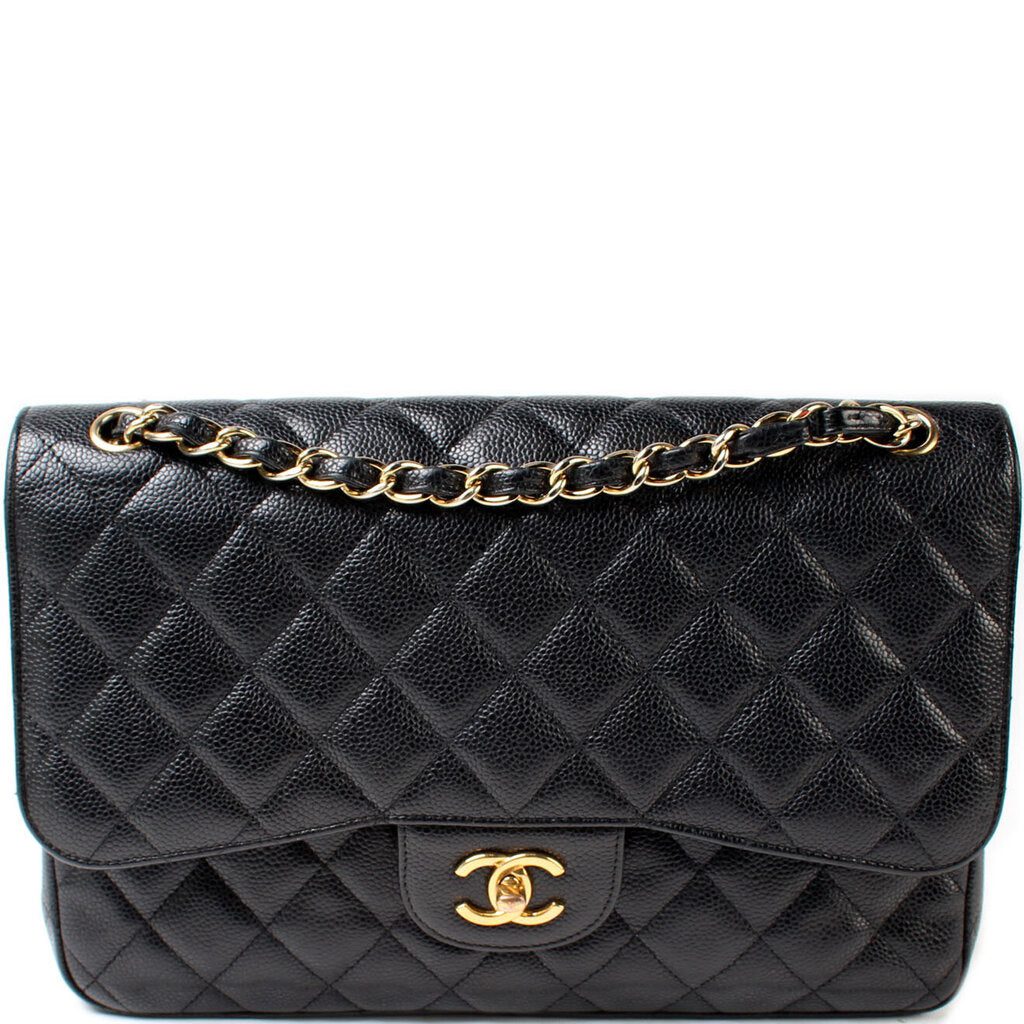 Chanel Classic Flap Jumbo�. The exterior is in the classic Chanel Caviar leather.