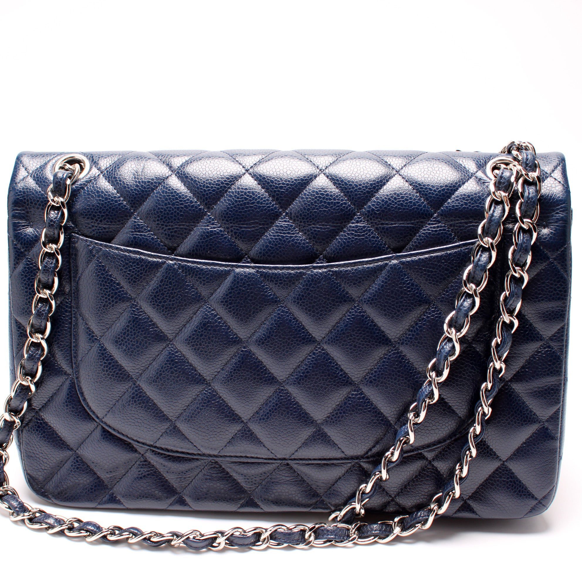 Chanel Classic Flap Jumbo. The exterior is in the classic Chanel Caviar Leather.