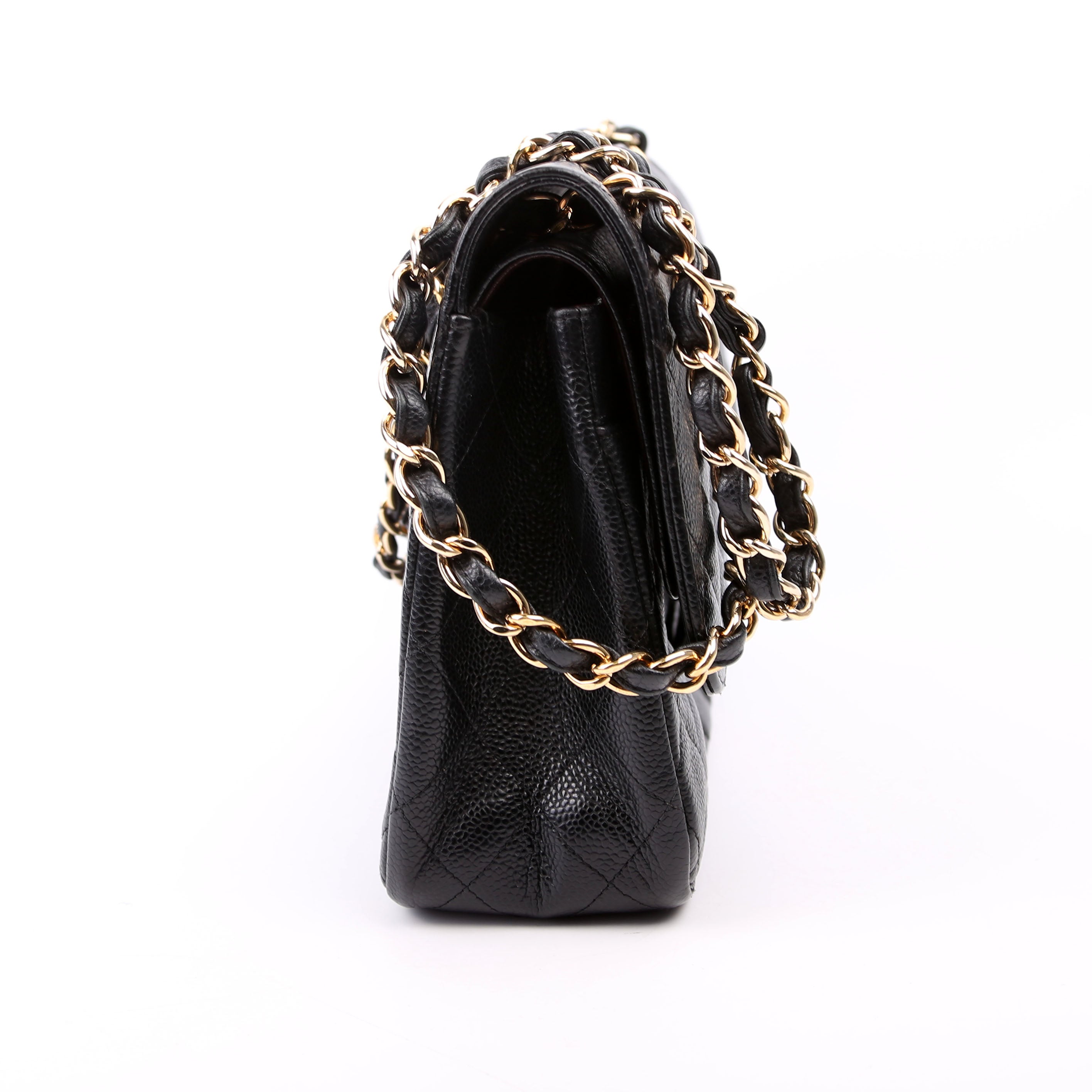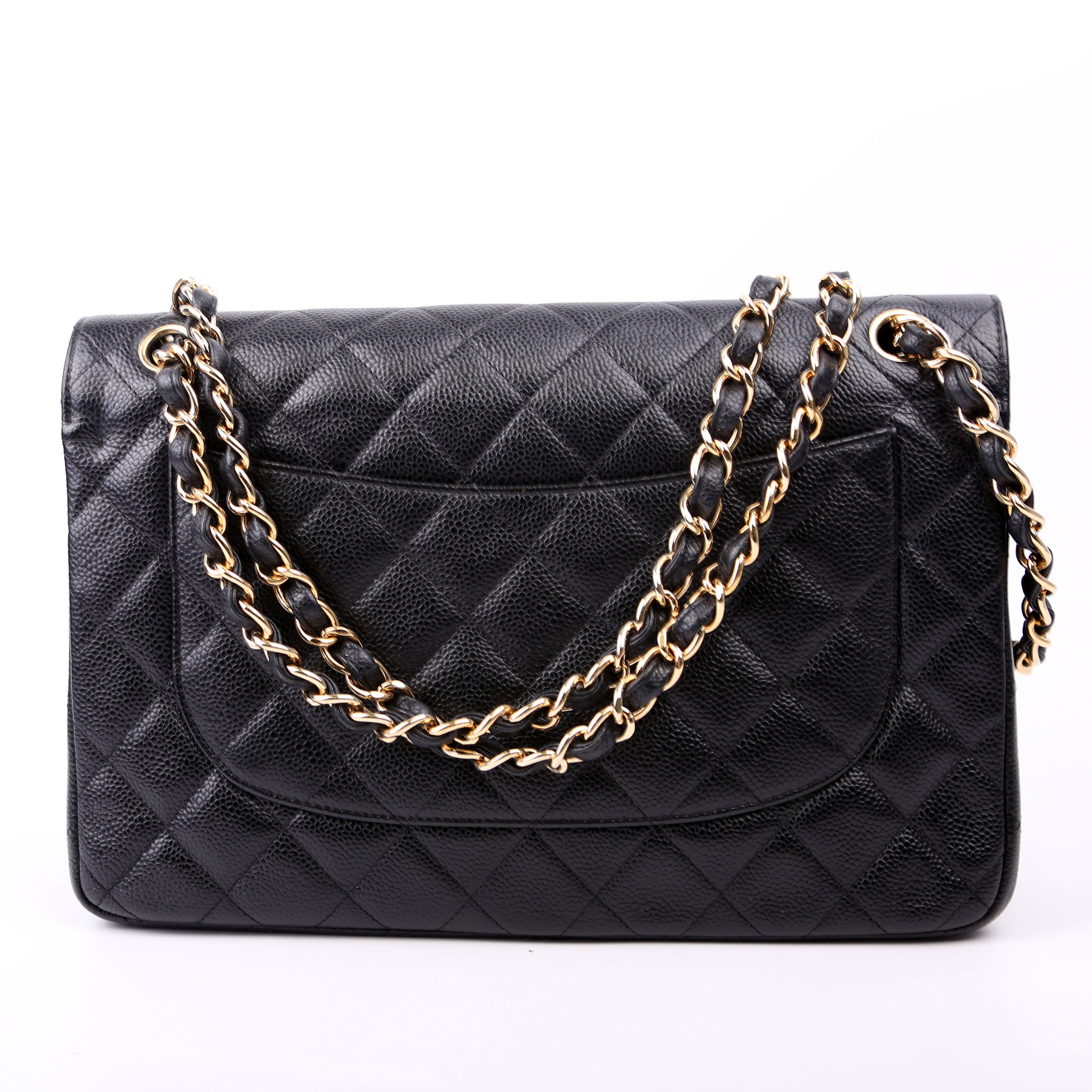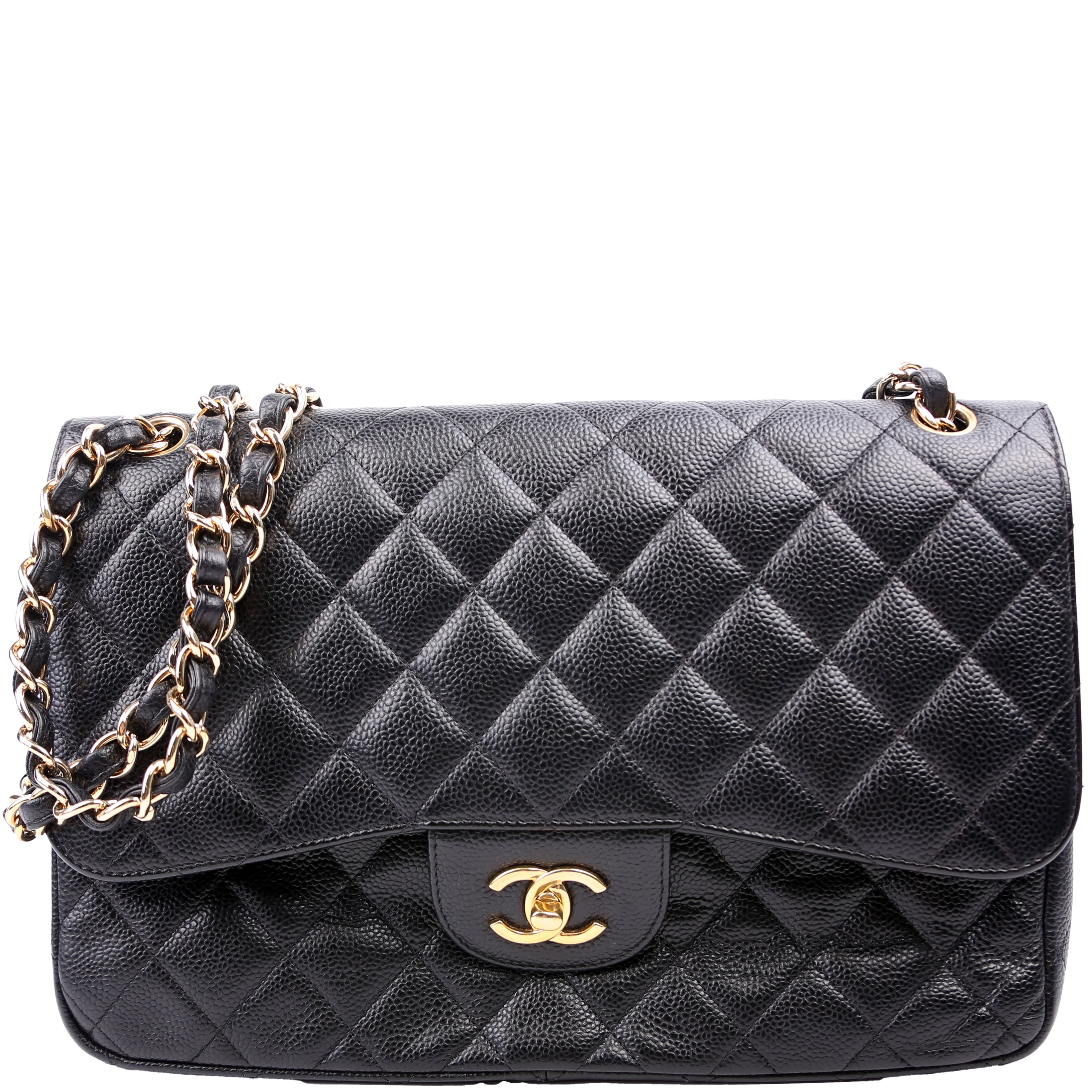 Chanel Classic Flap Jumbo. The exterior is in the classic Chanel Caviar leather. Â