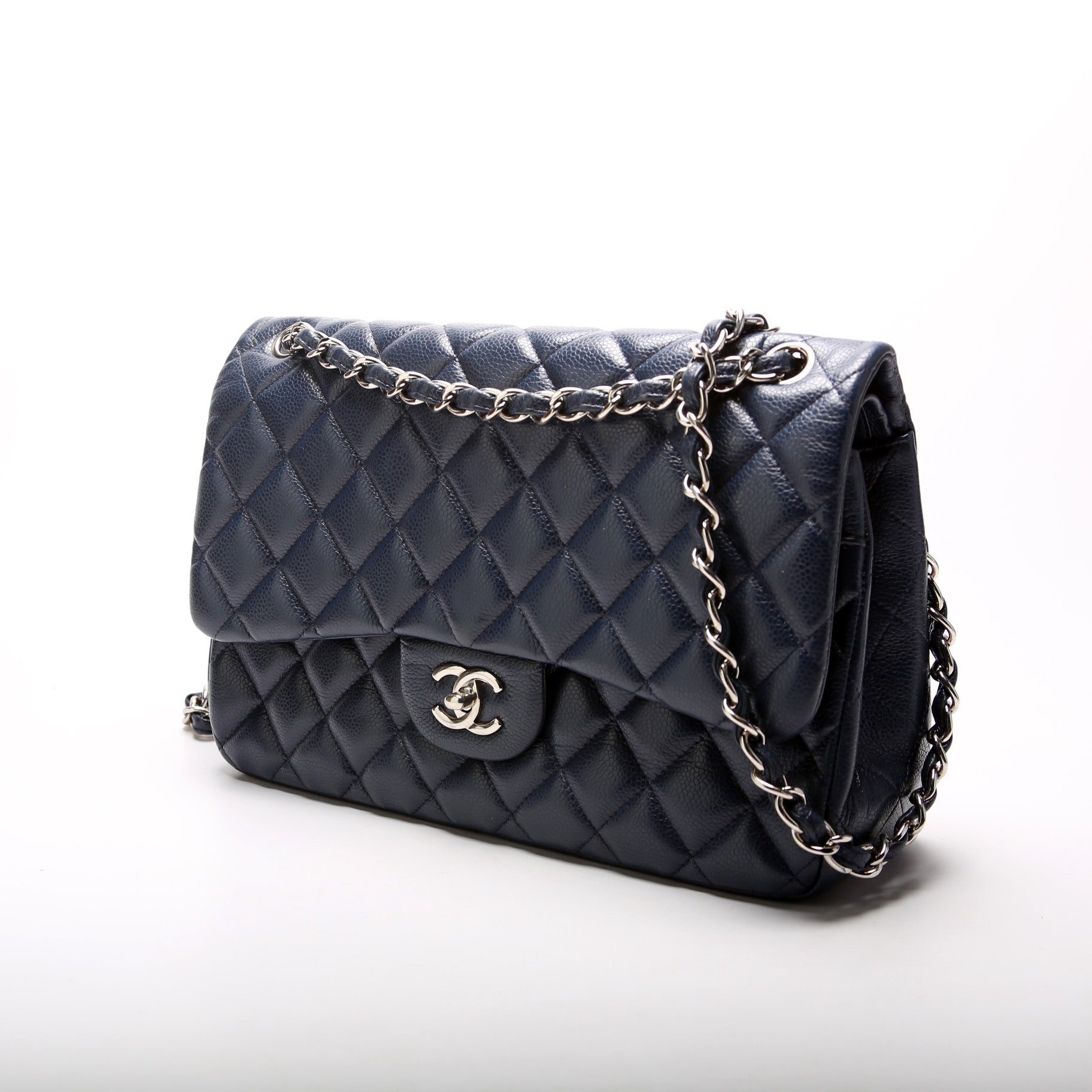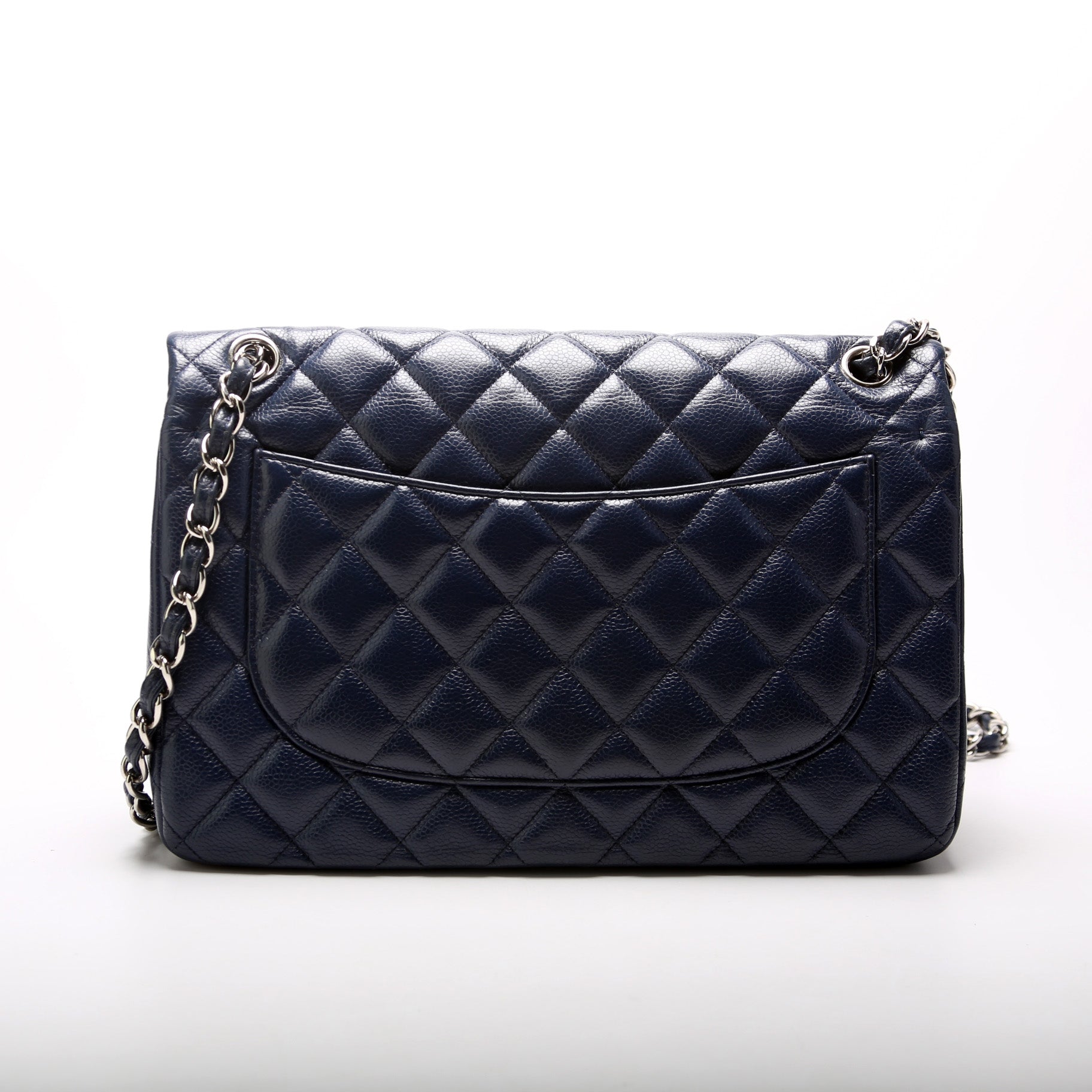 Chanel Classic Flap Jumbo. The exterior is in the classic Chanel Caviar leather.