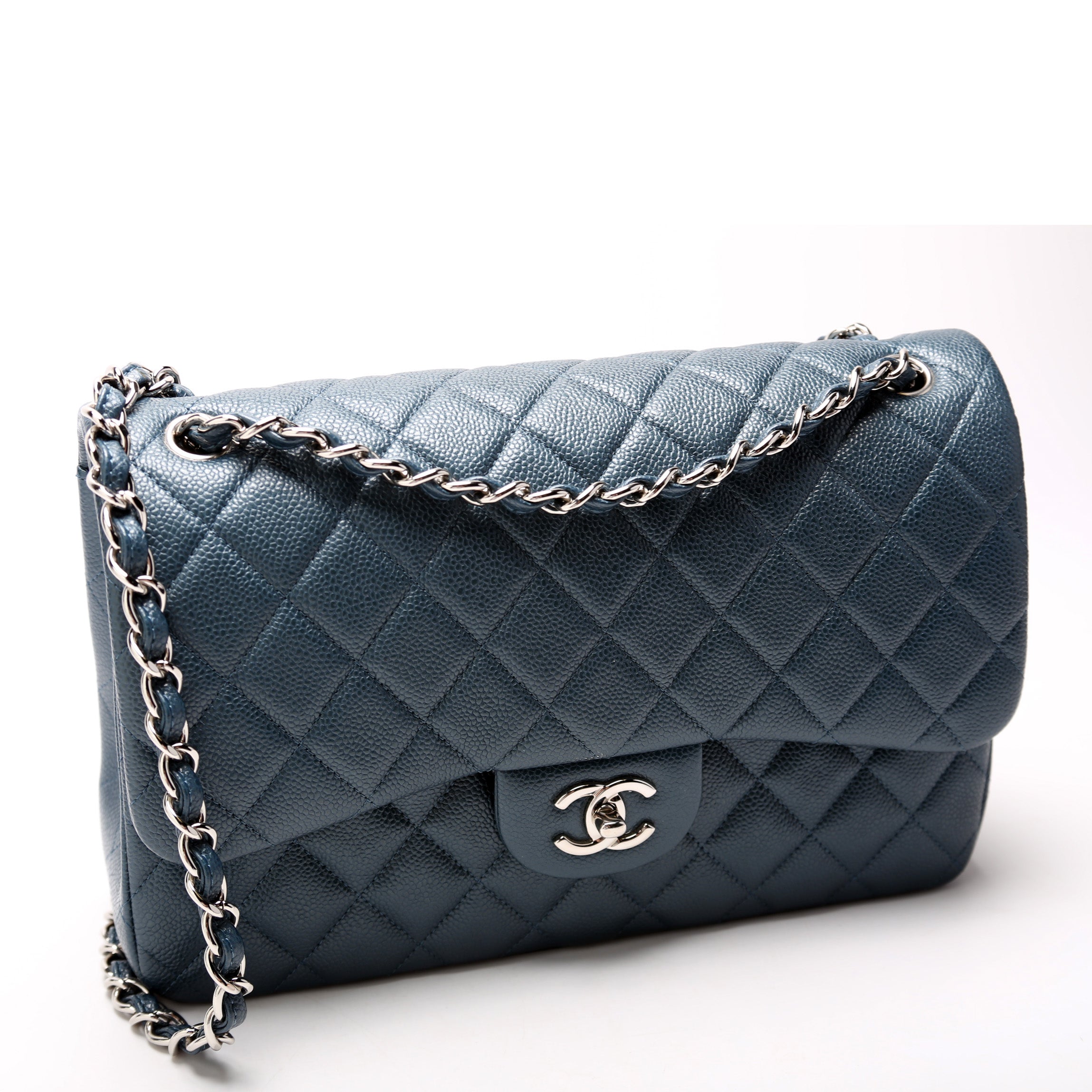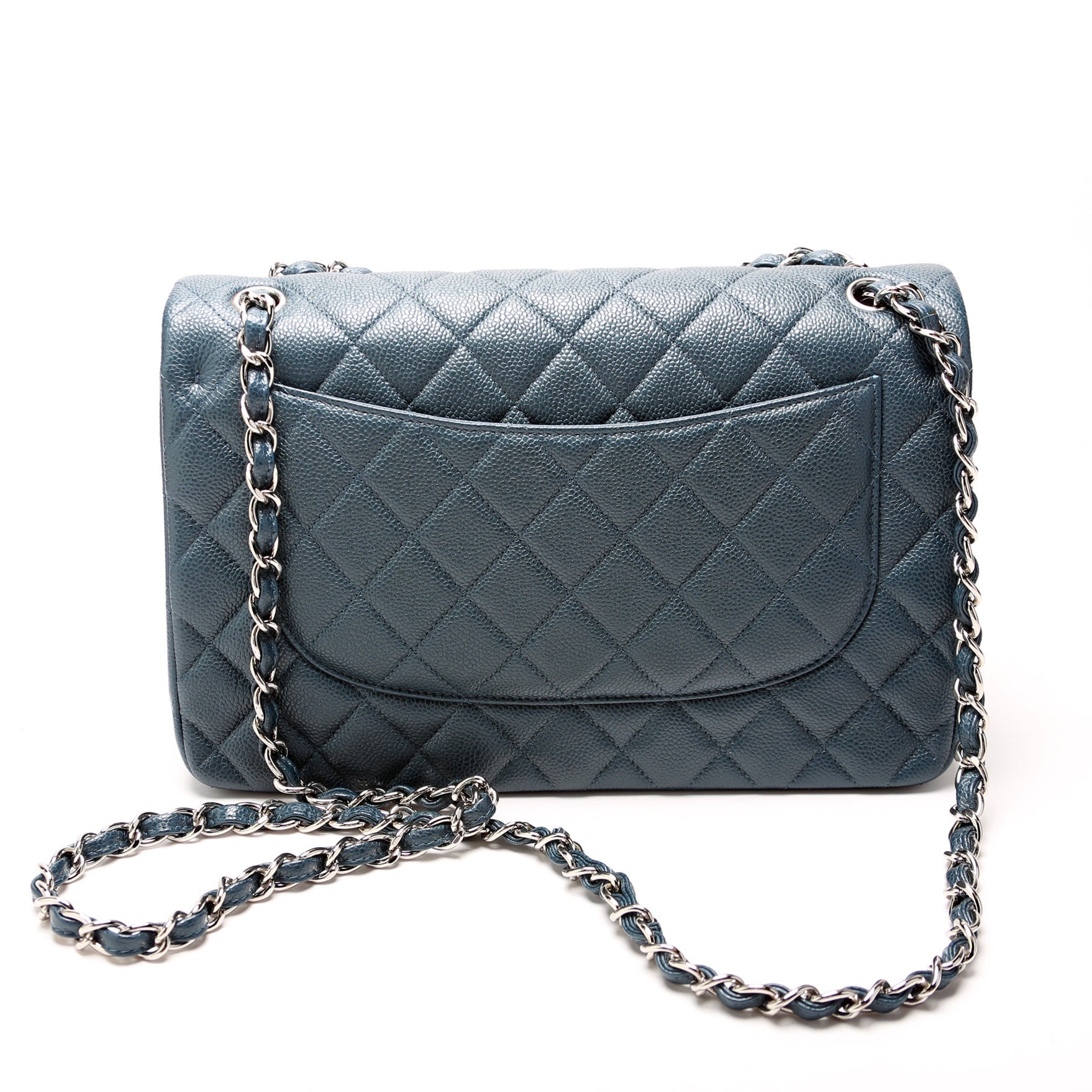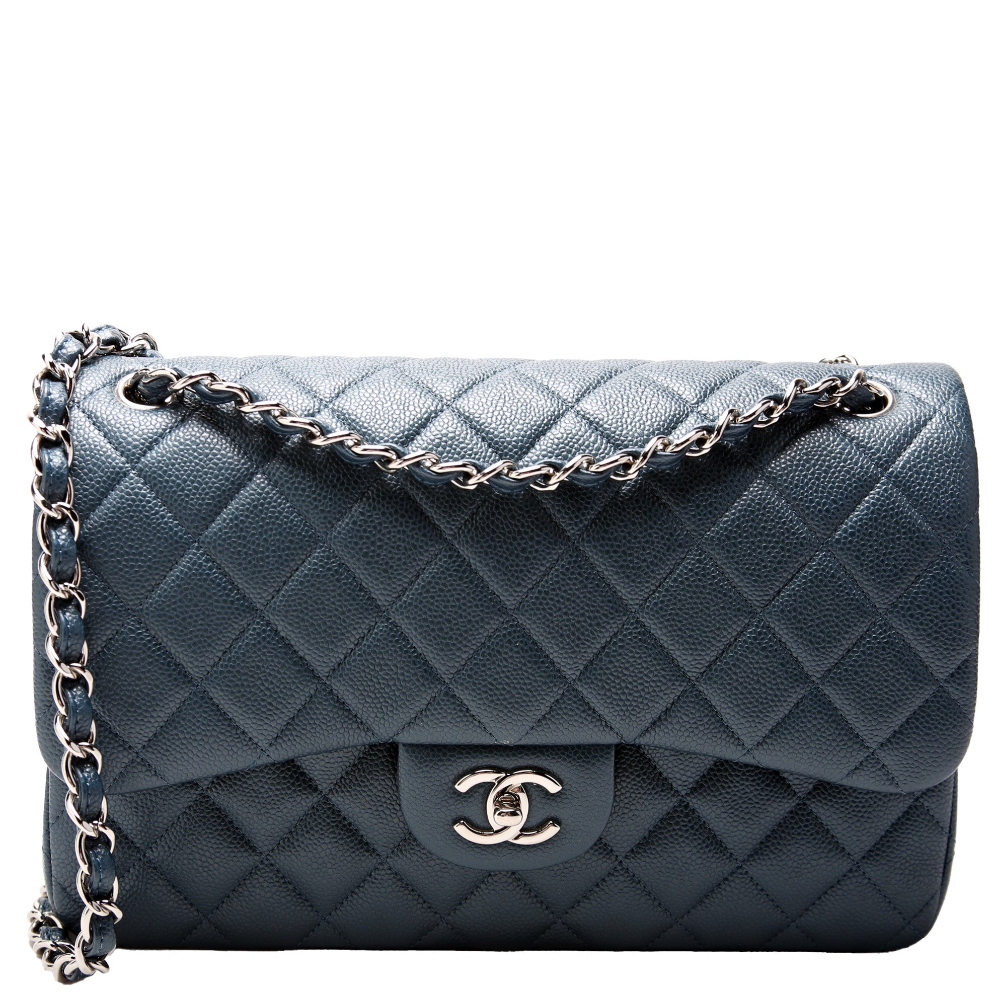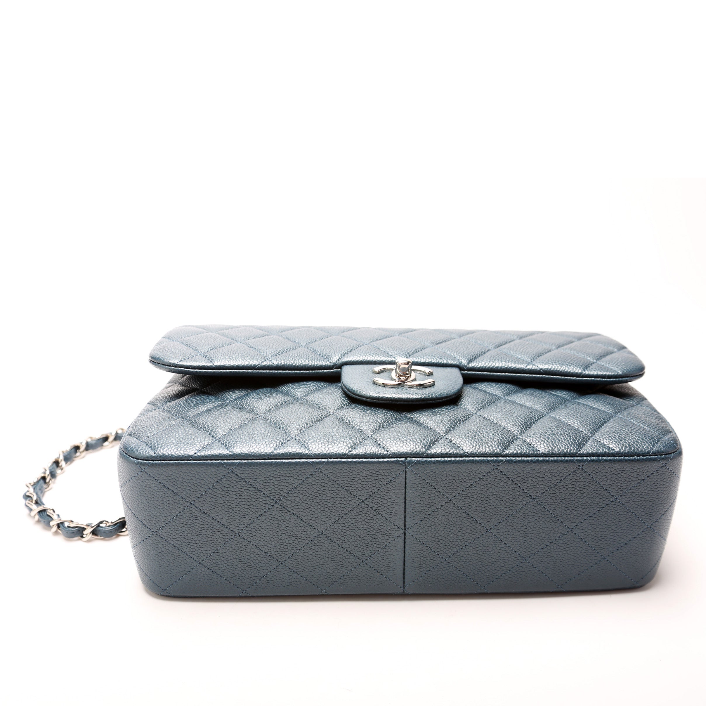 Chanel Classic Flap Jumbo. The exterior is in the classic Chanel Caviar leather.