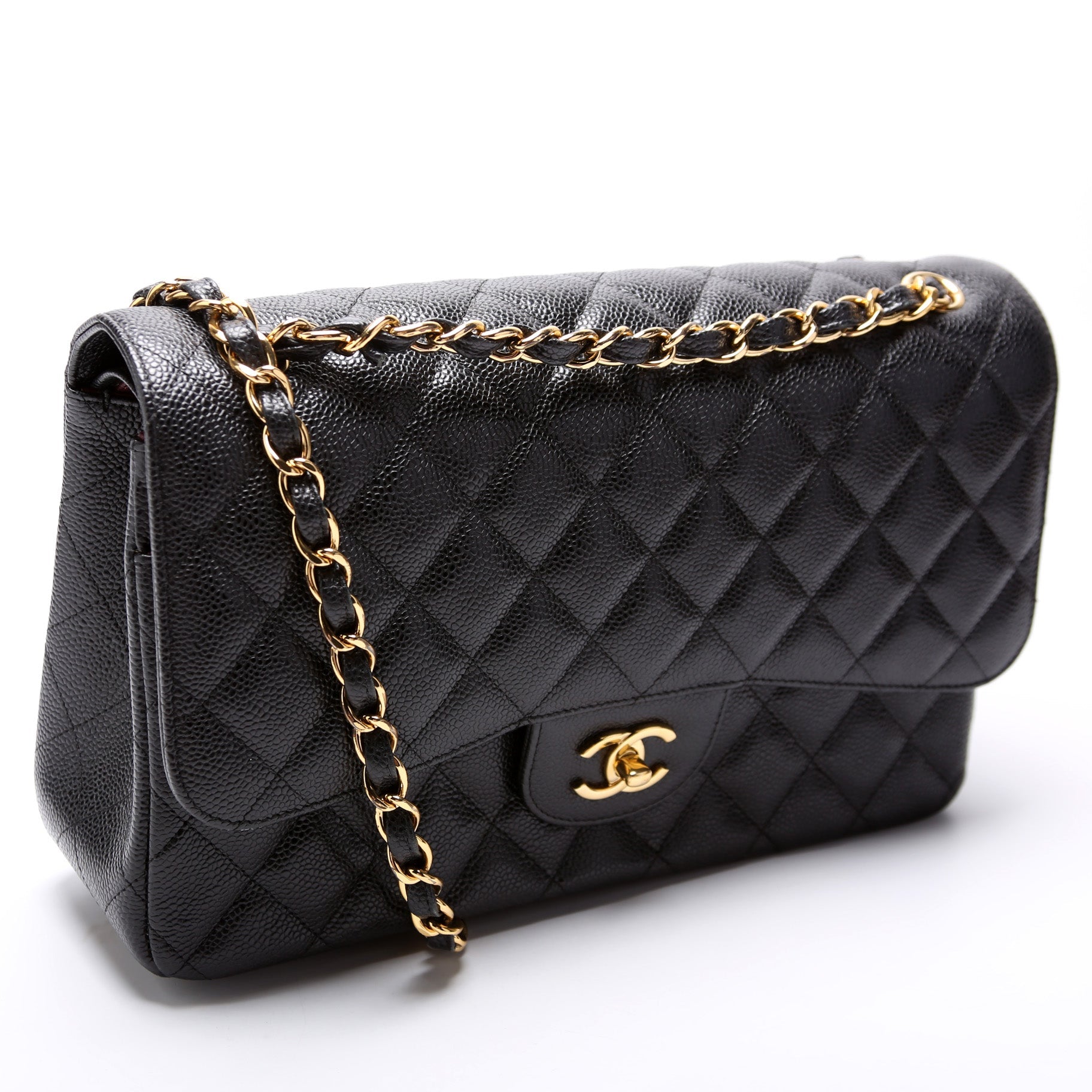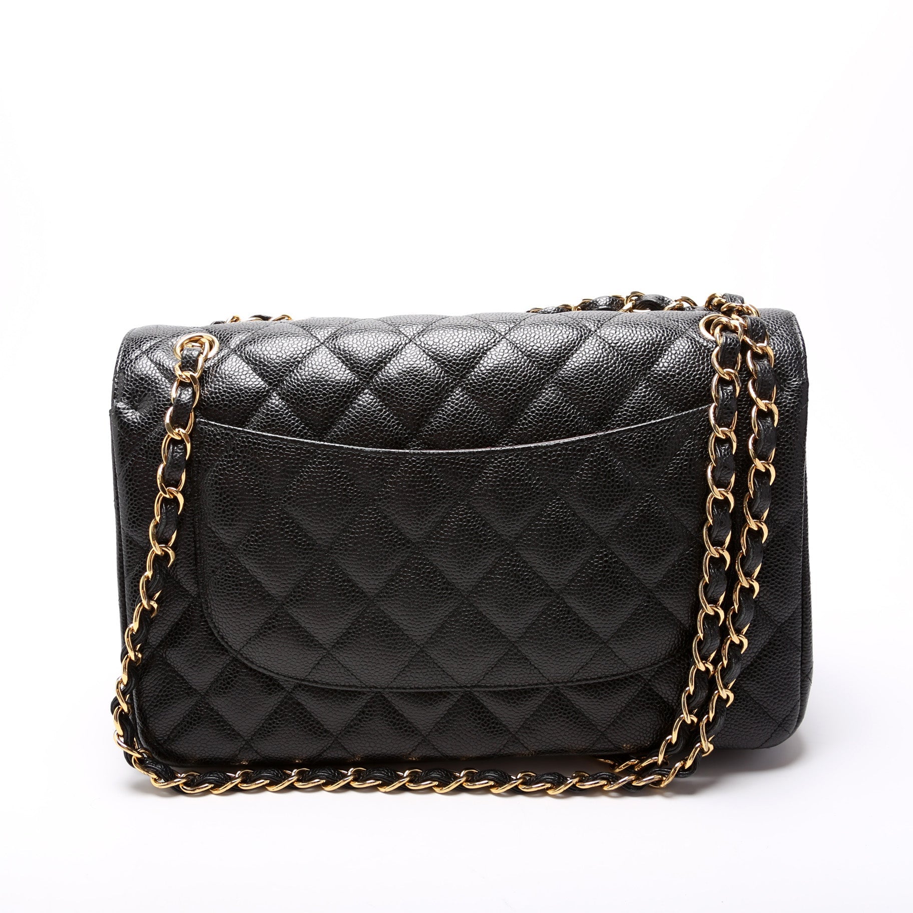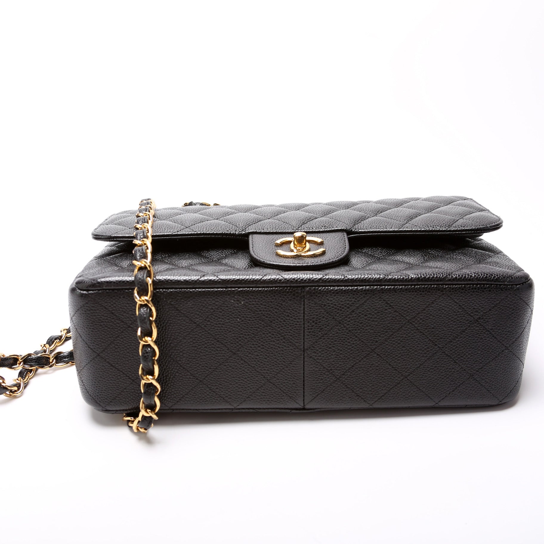 Chanel Classic Flap Jumbo�. The exterior is in the classic Chanel Caviar leather. Â
