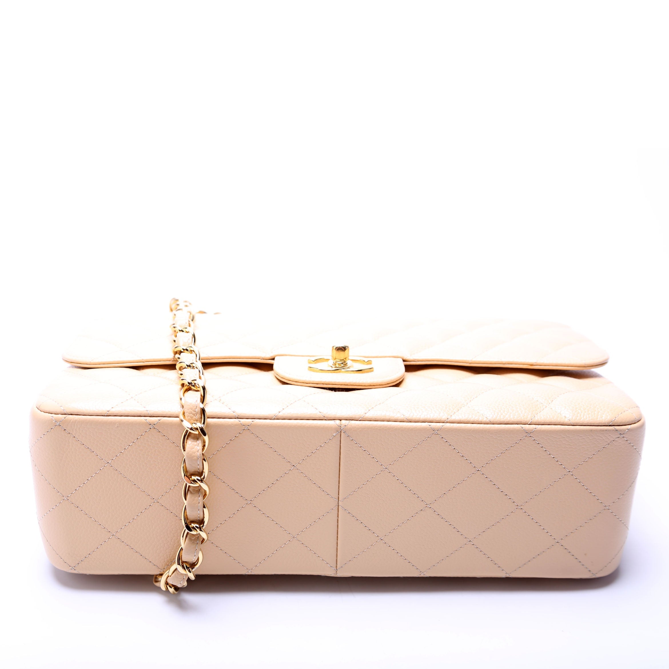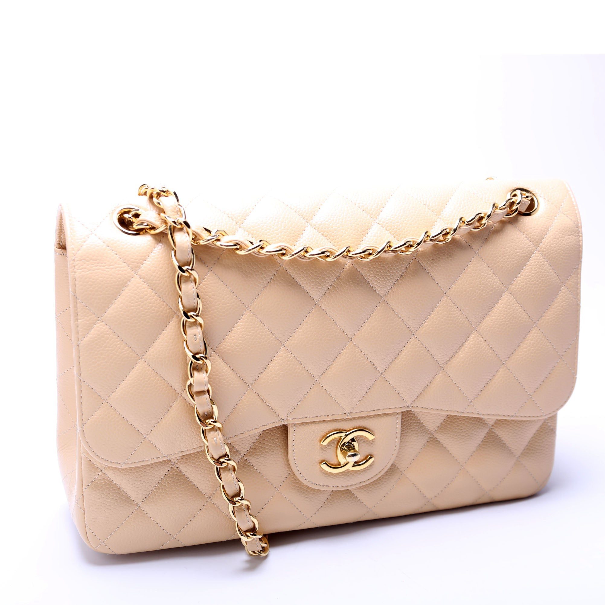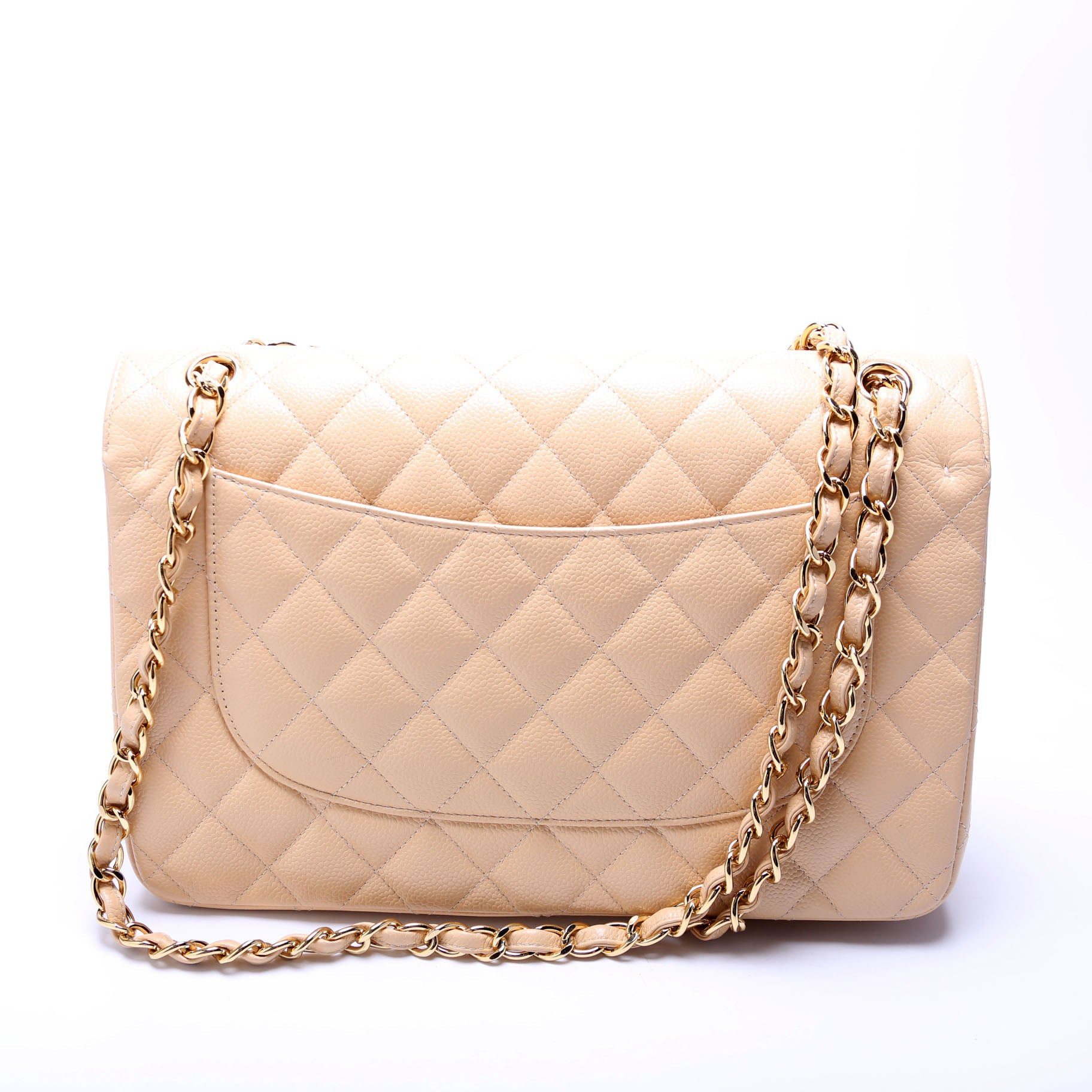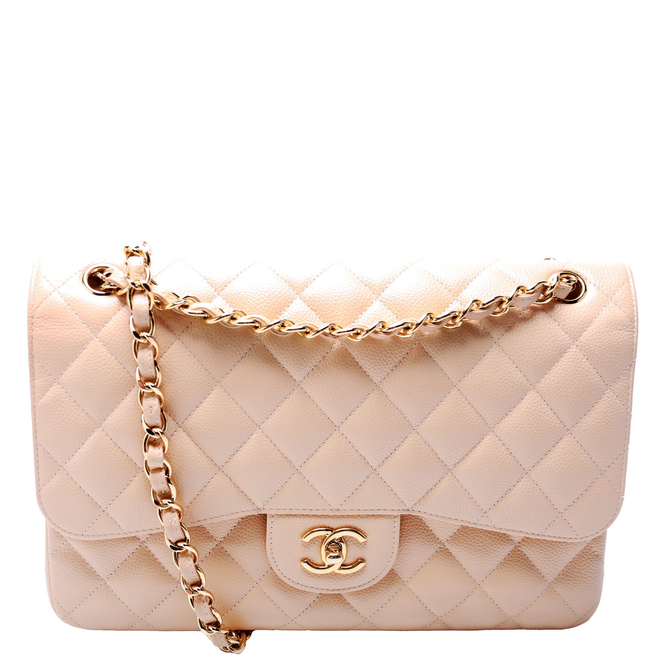 Chanel Classic Flap Jumbo. The exterior is in the classic Chanel Caviar Leather.