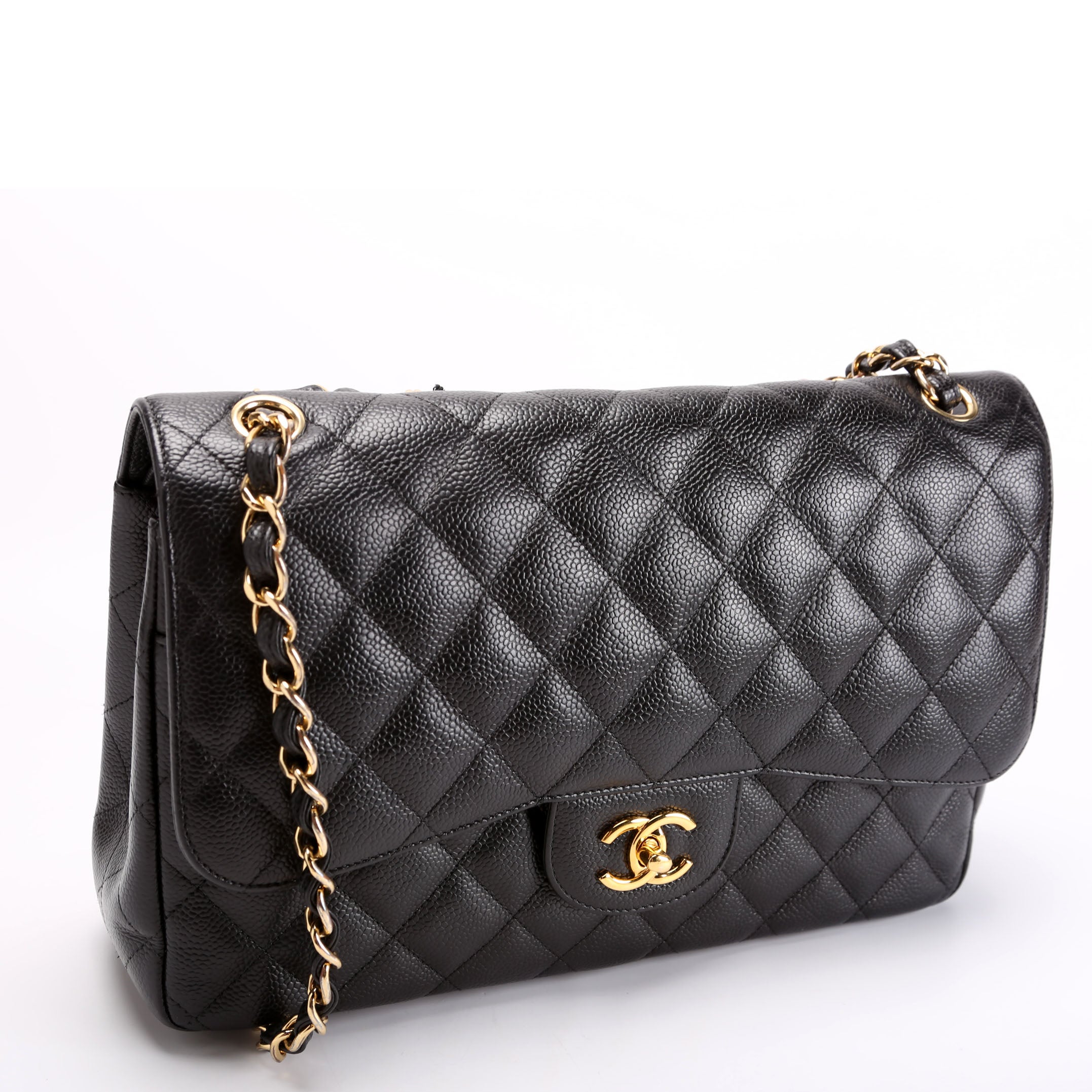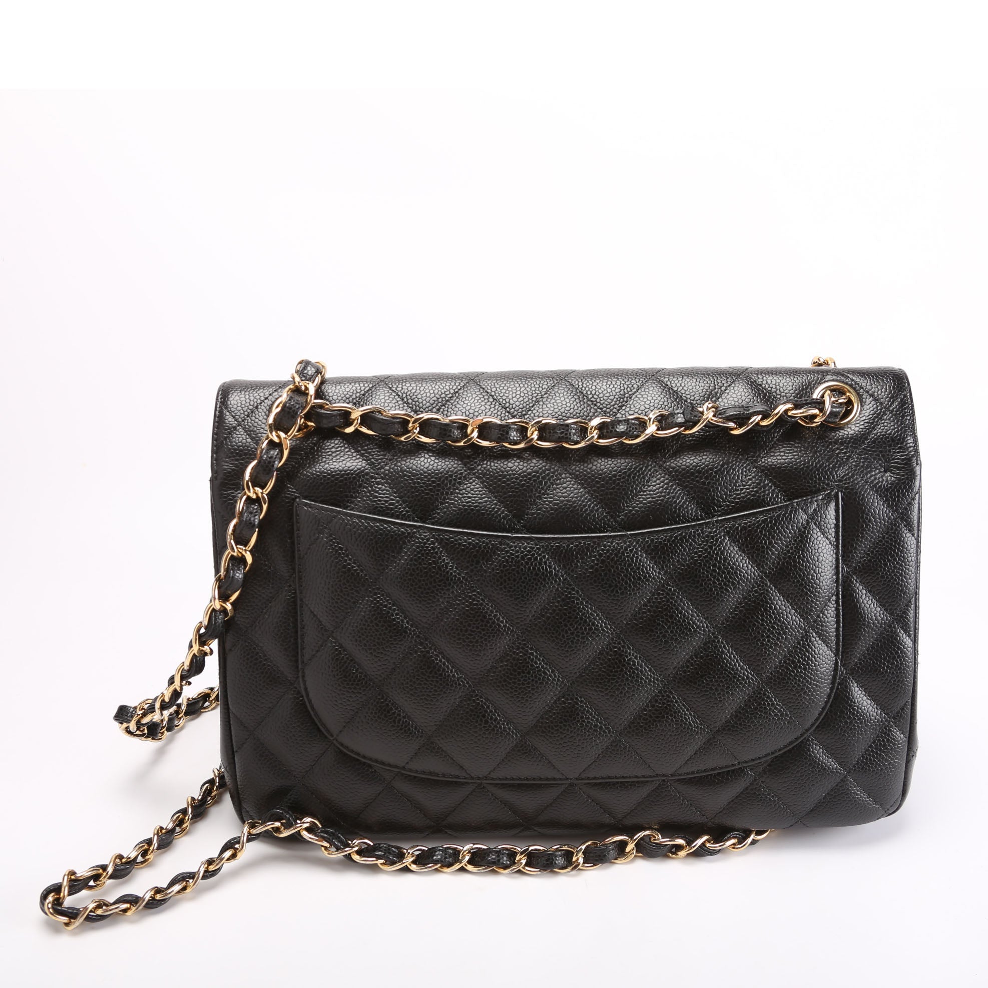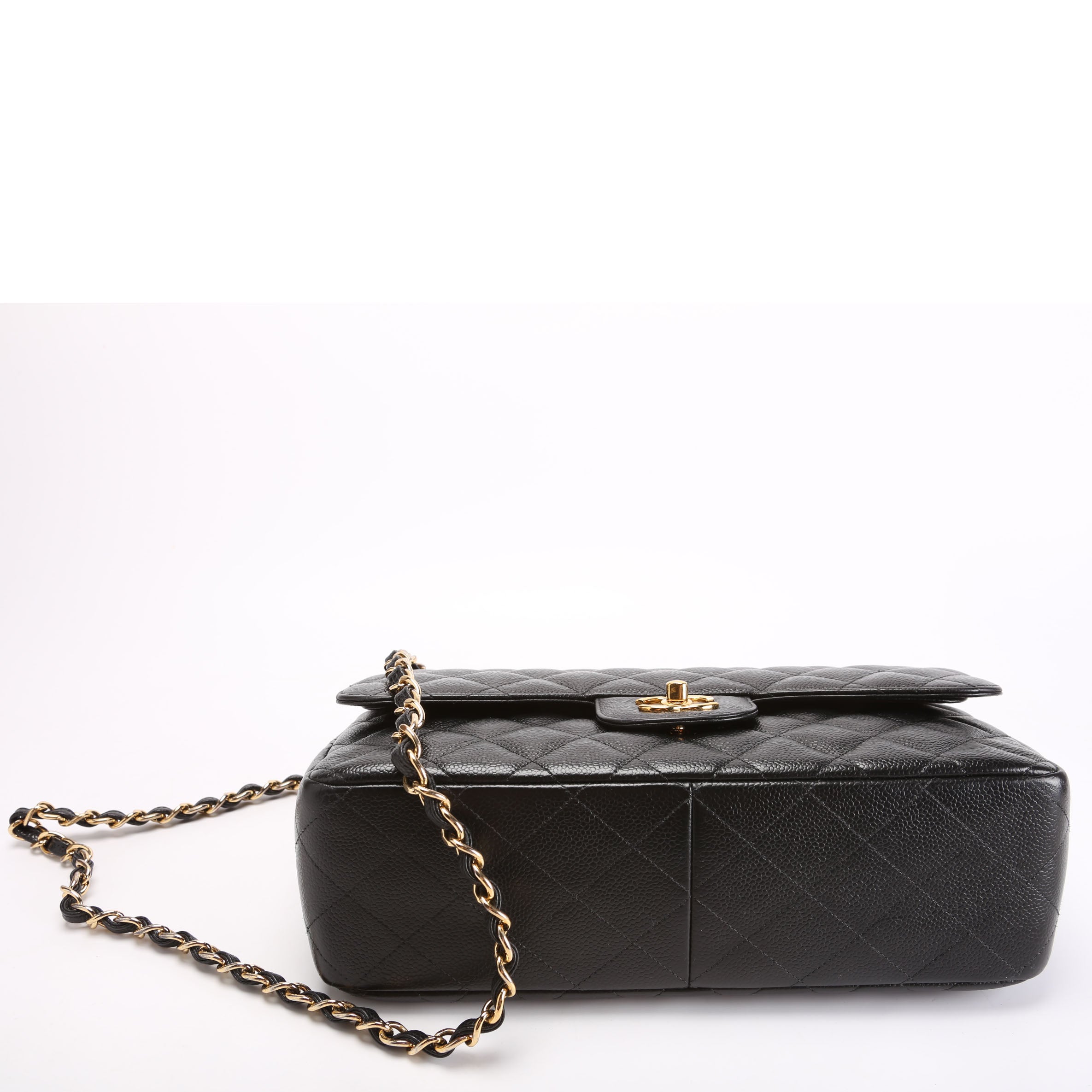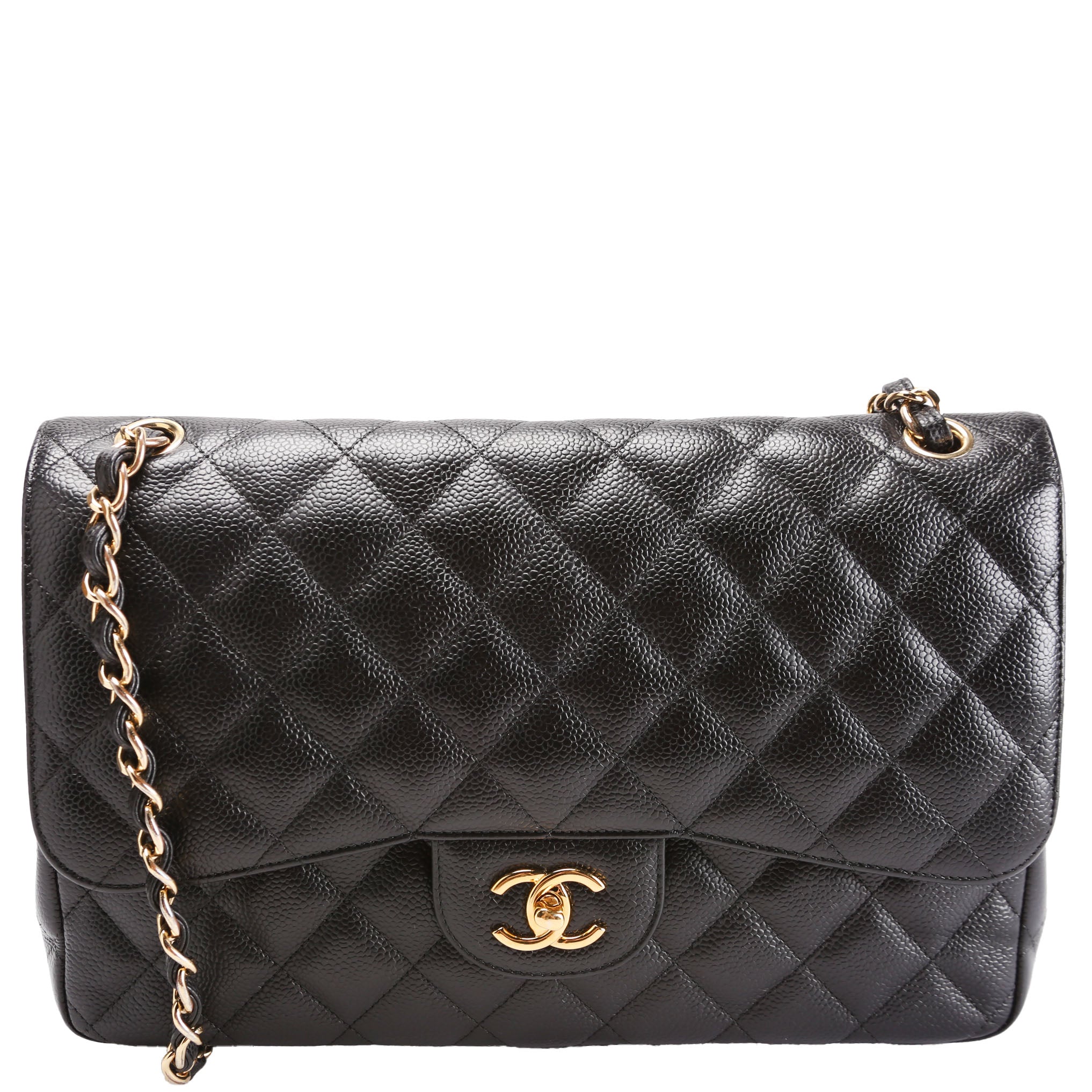 Chanel Classic Flap Jumbo. The exterior is in the classic Chanel Caviar leather. Â