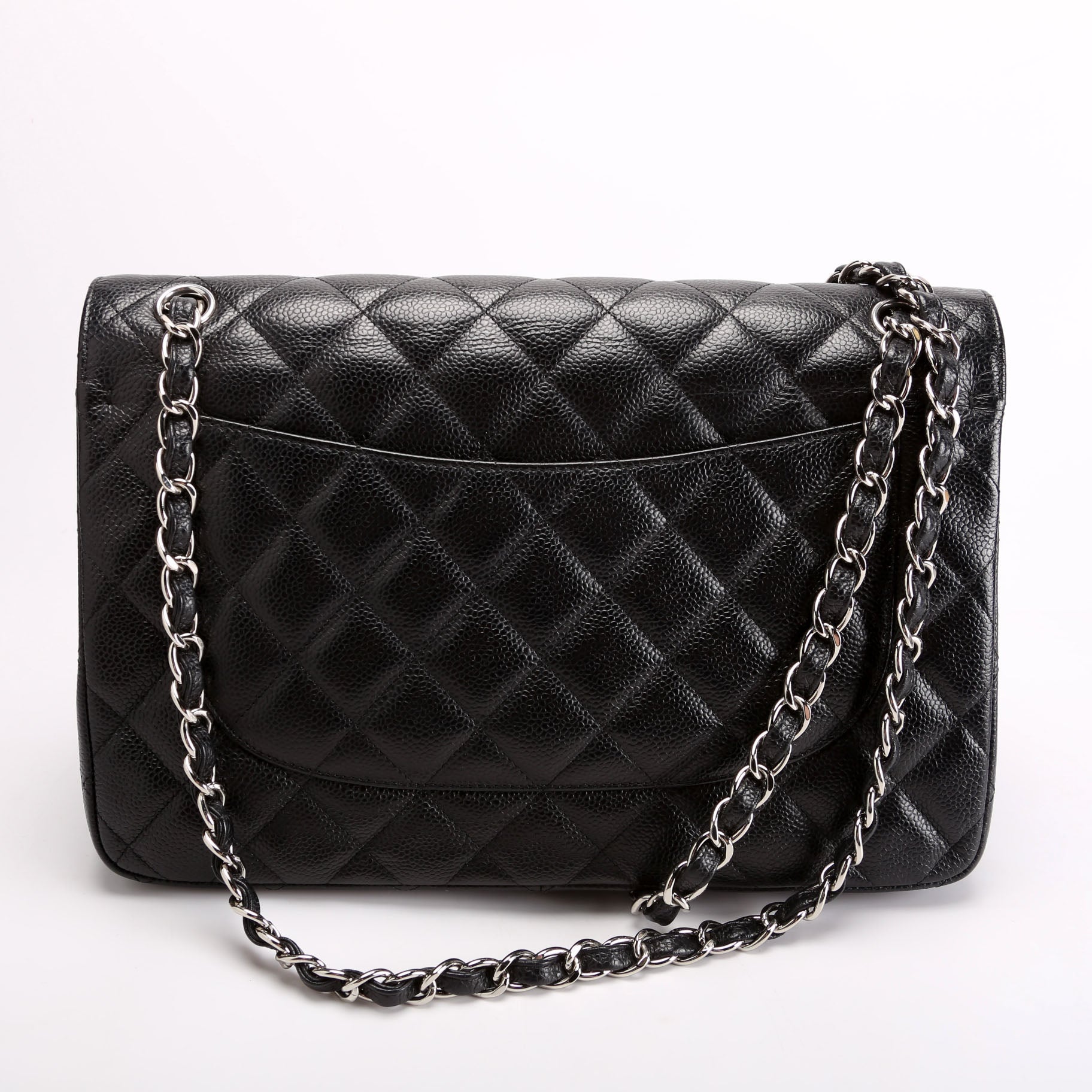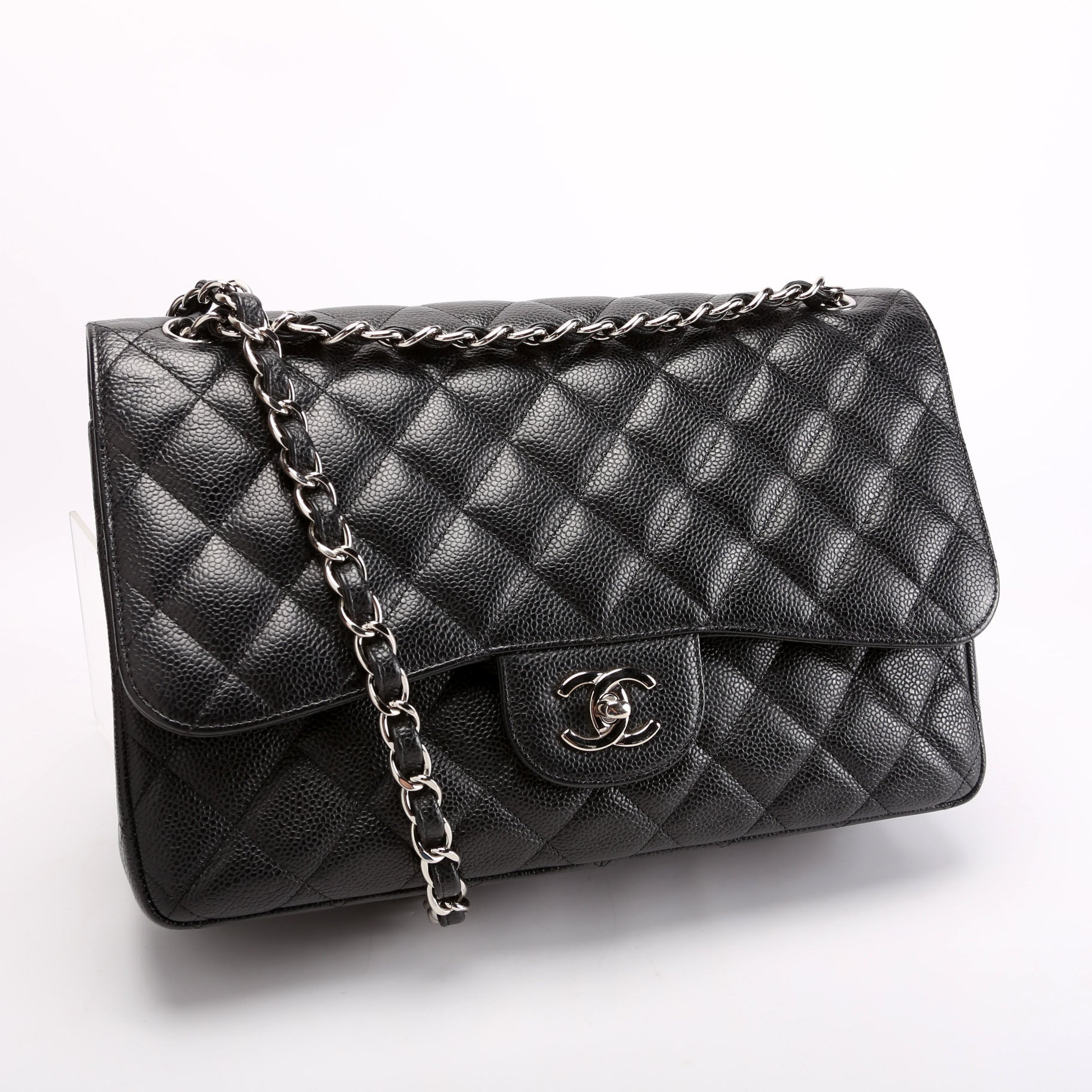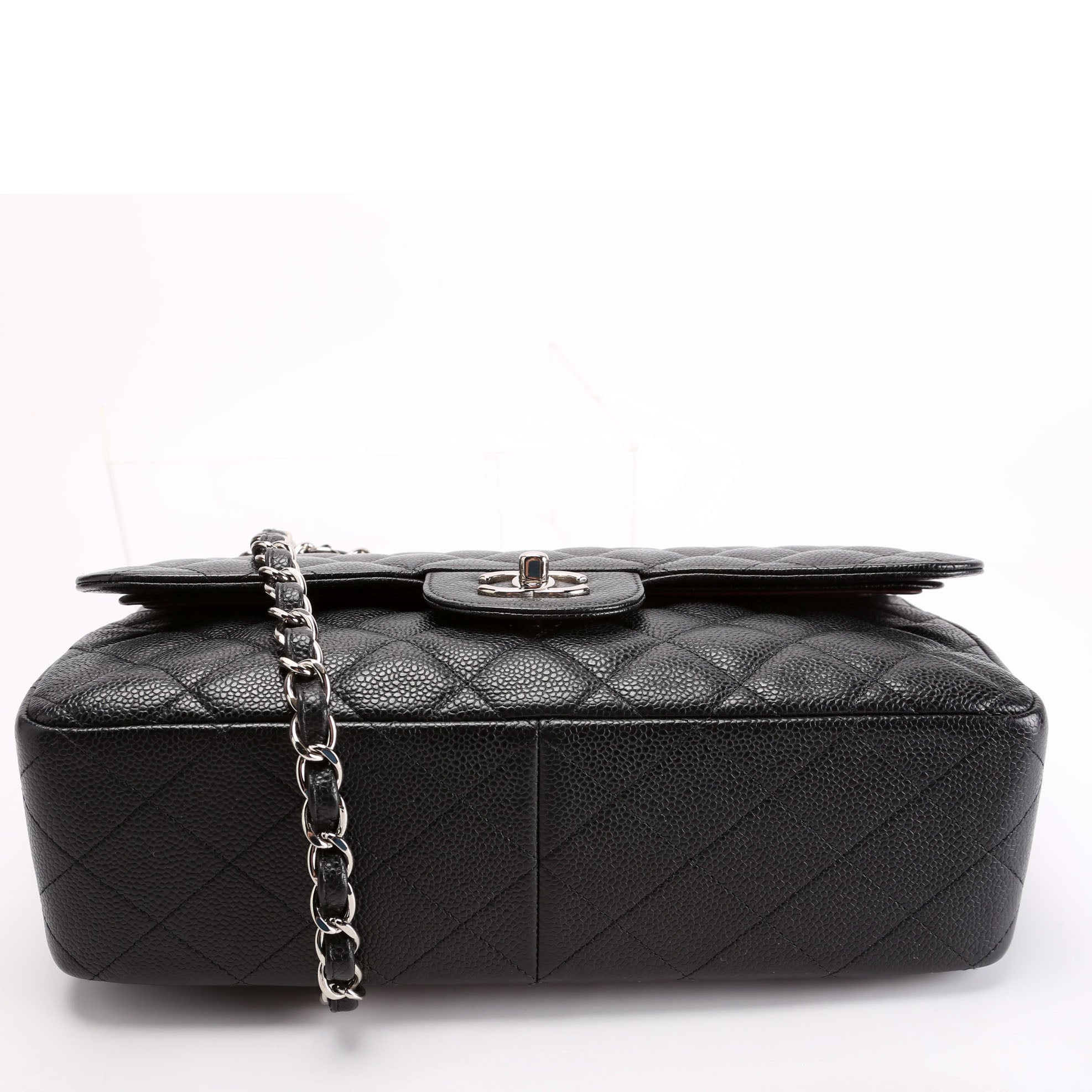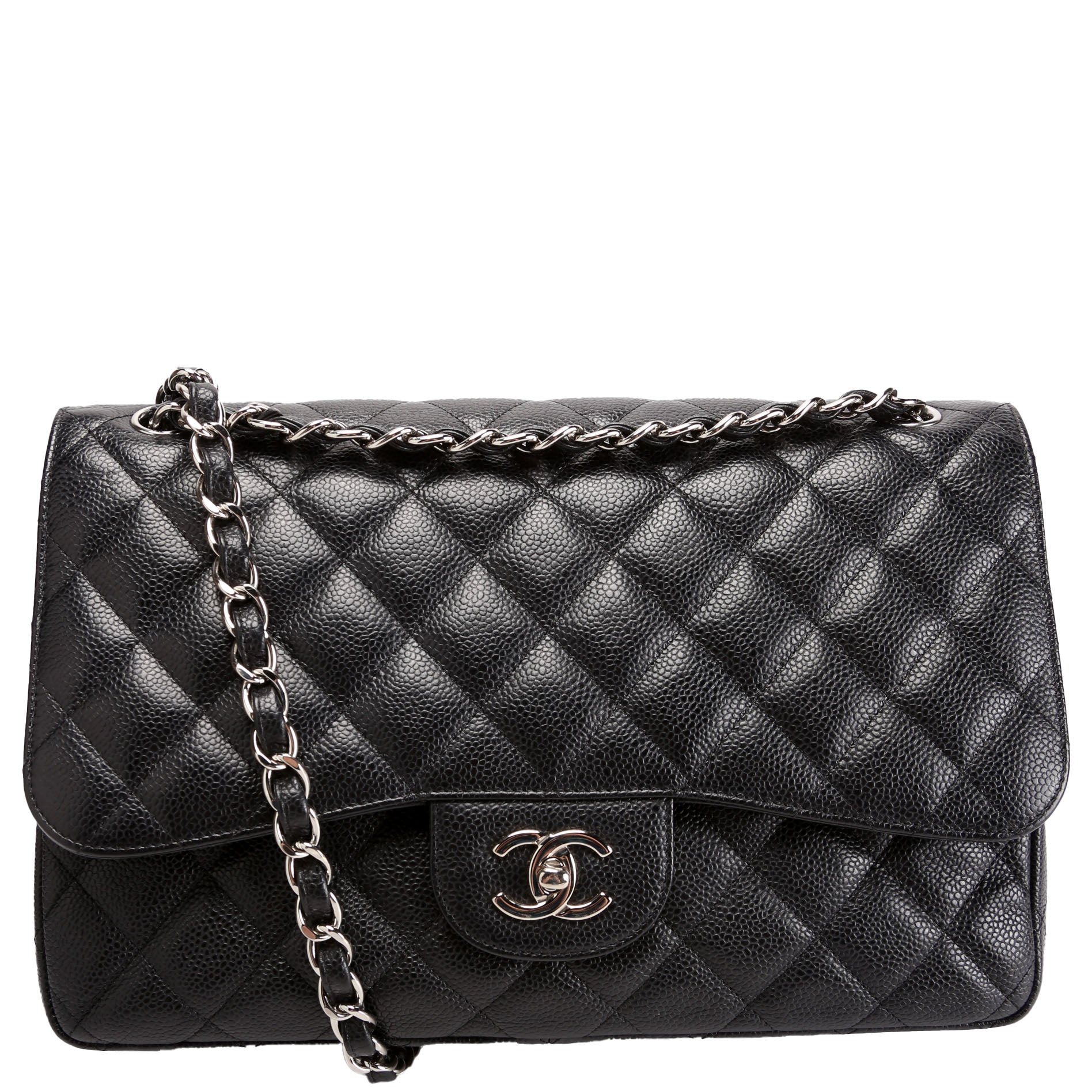 Chanel Classic Flap Jumbo�. The exterior is in the classic Chanel Caviar leather.