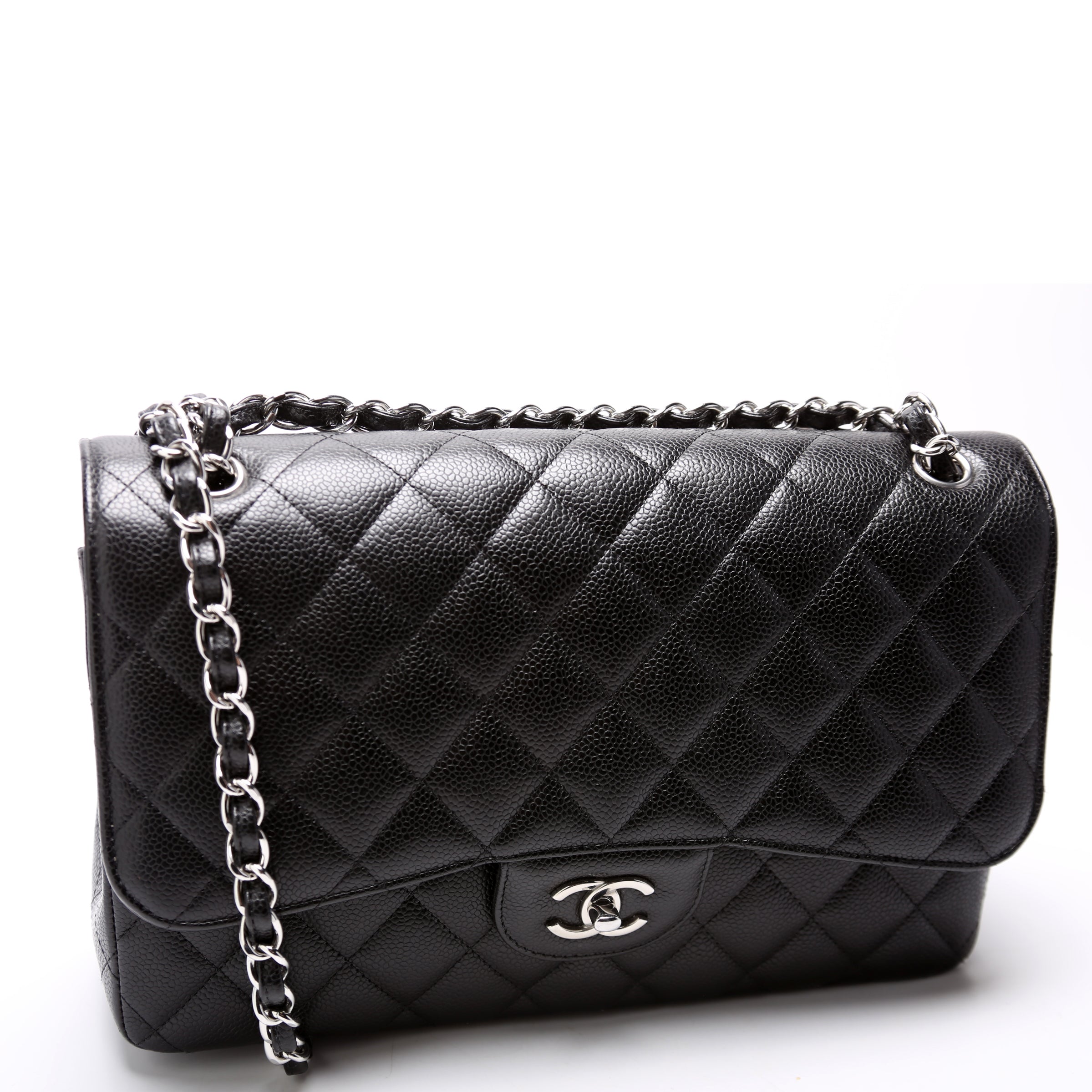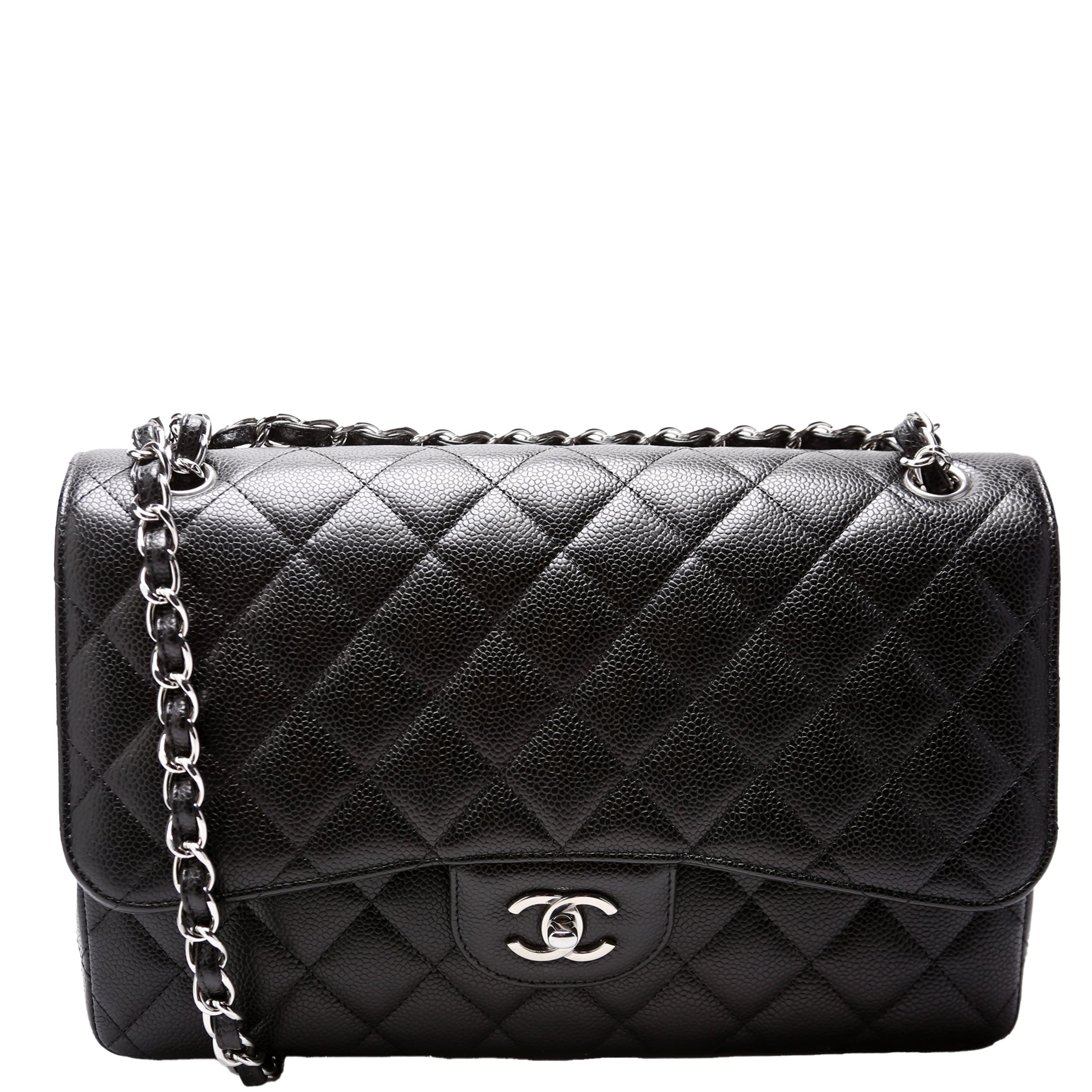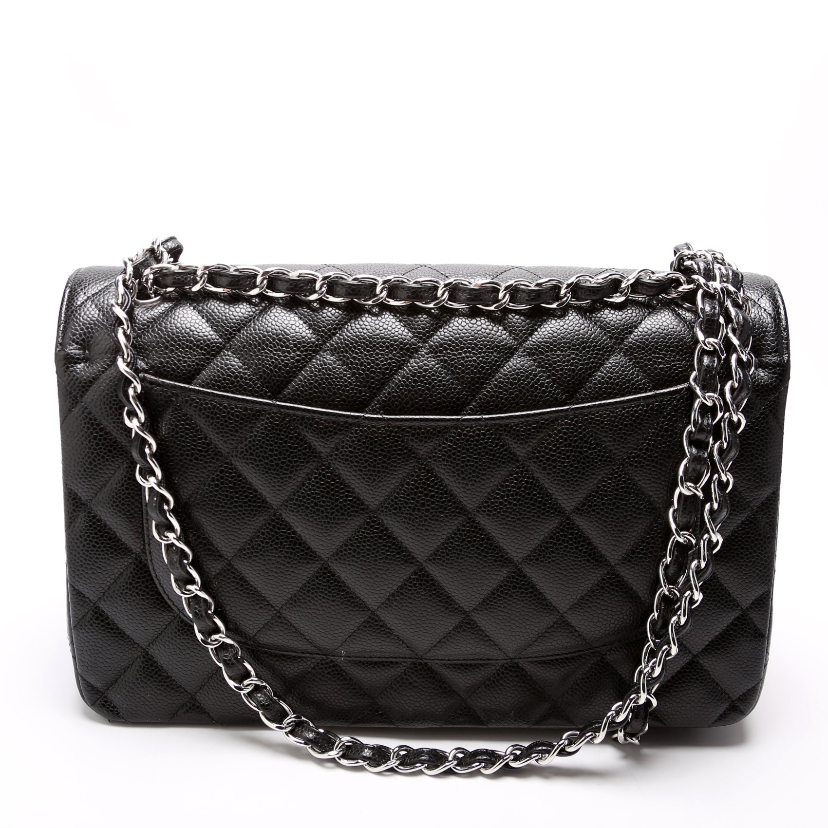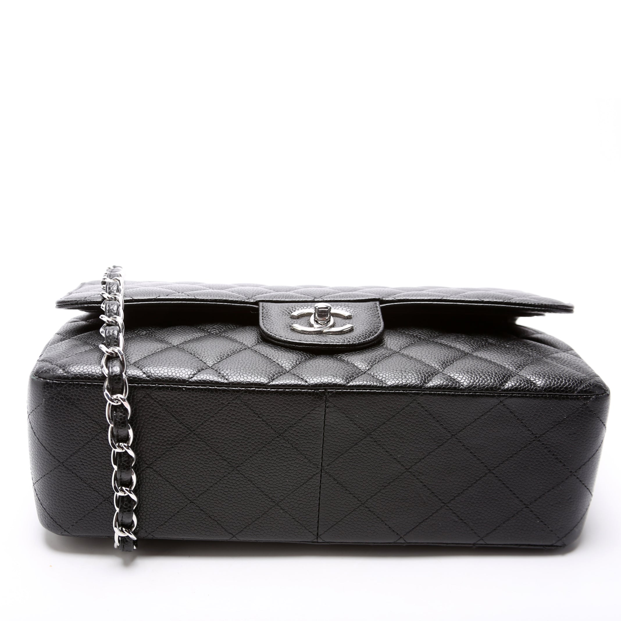 Chanel Classic Flap Jumbo. The exterior is in the classic Chanel Caviar leather. Â