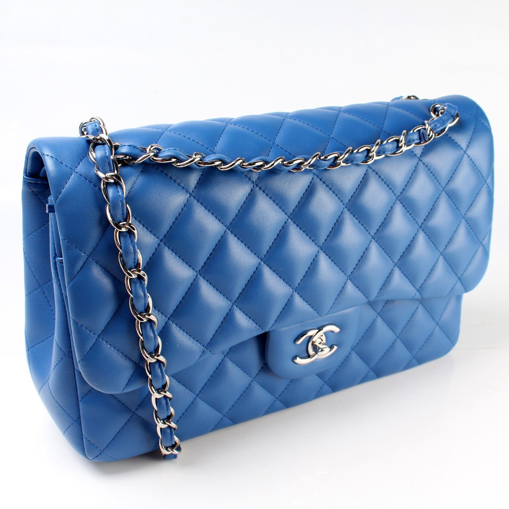 Chanel Classic Flap Jumbo�. The exterior is in the classic Chanel Lambskin leather. Â