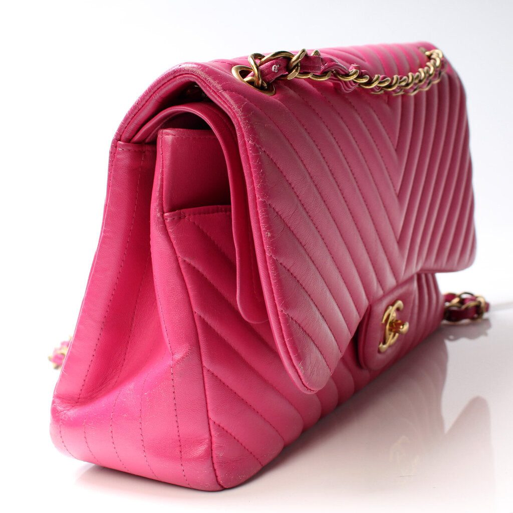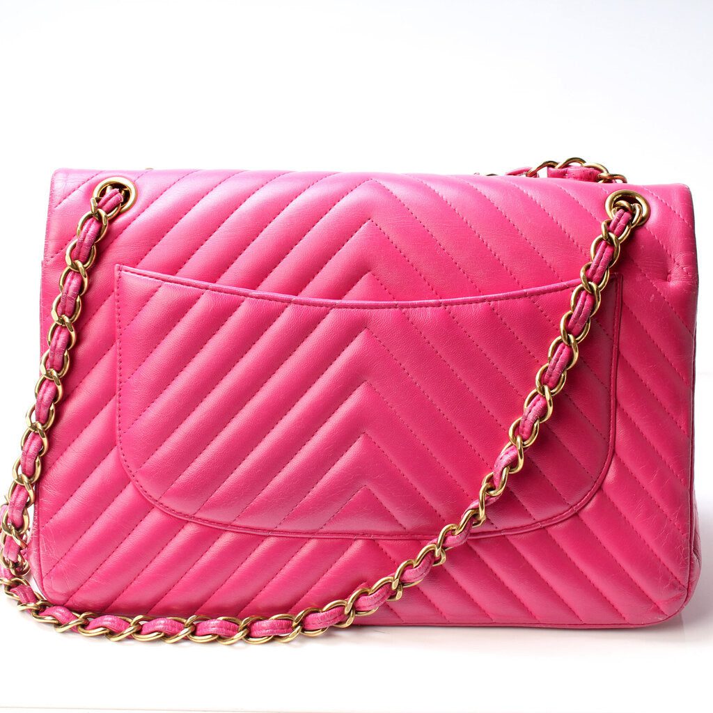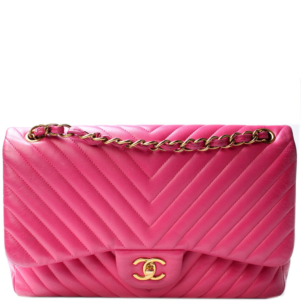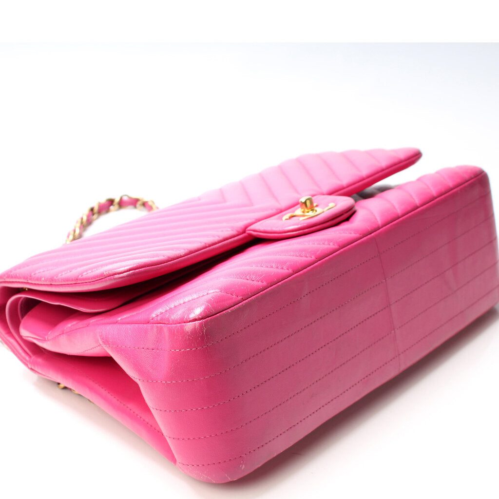 Chanel Classic Flap Jumbo. The exterior is in the classic Chanel Lambskin Leather.