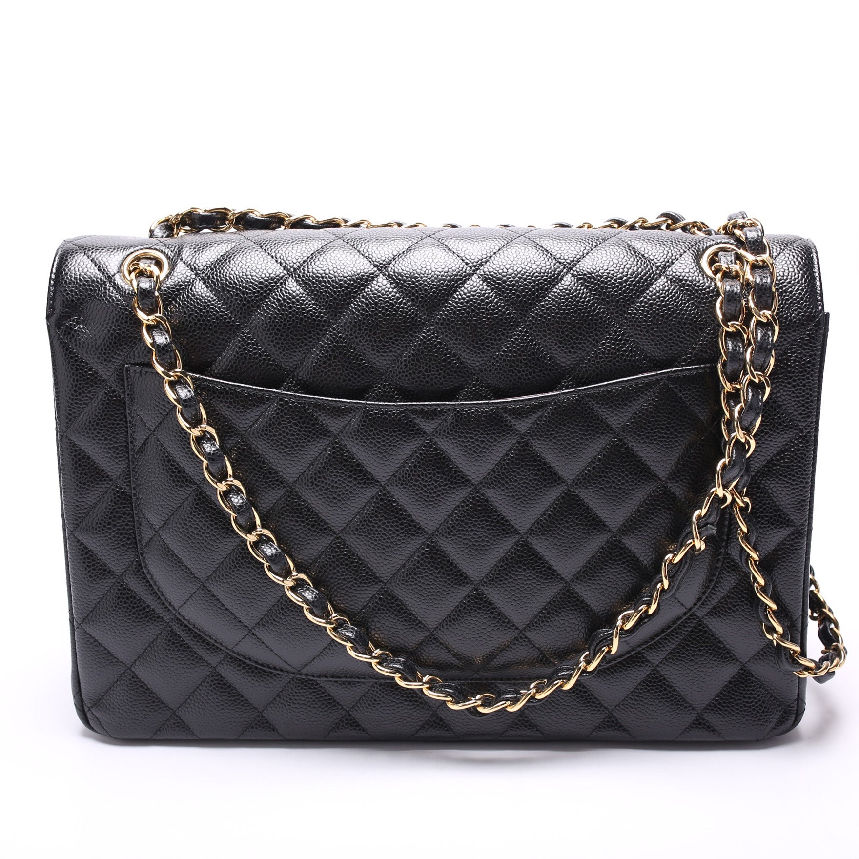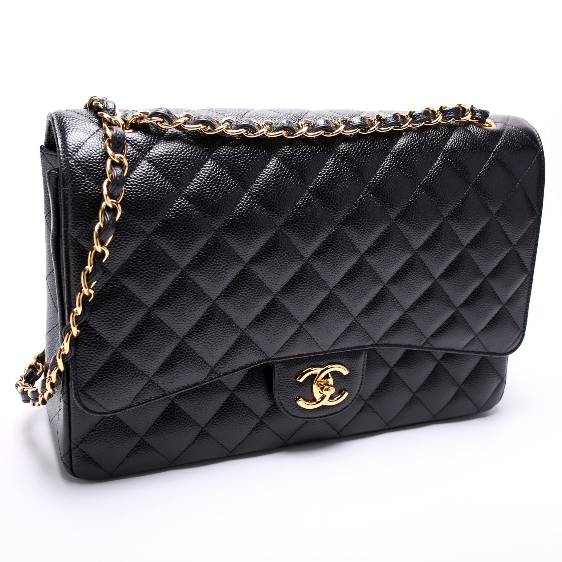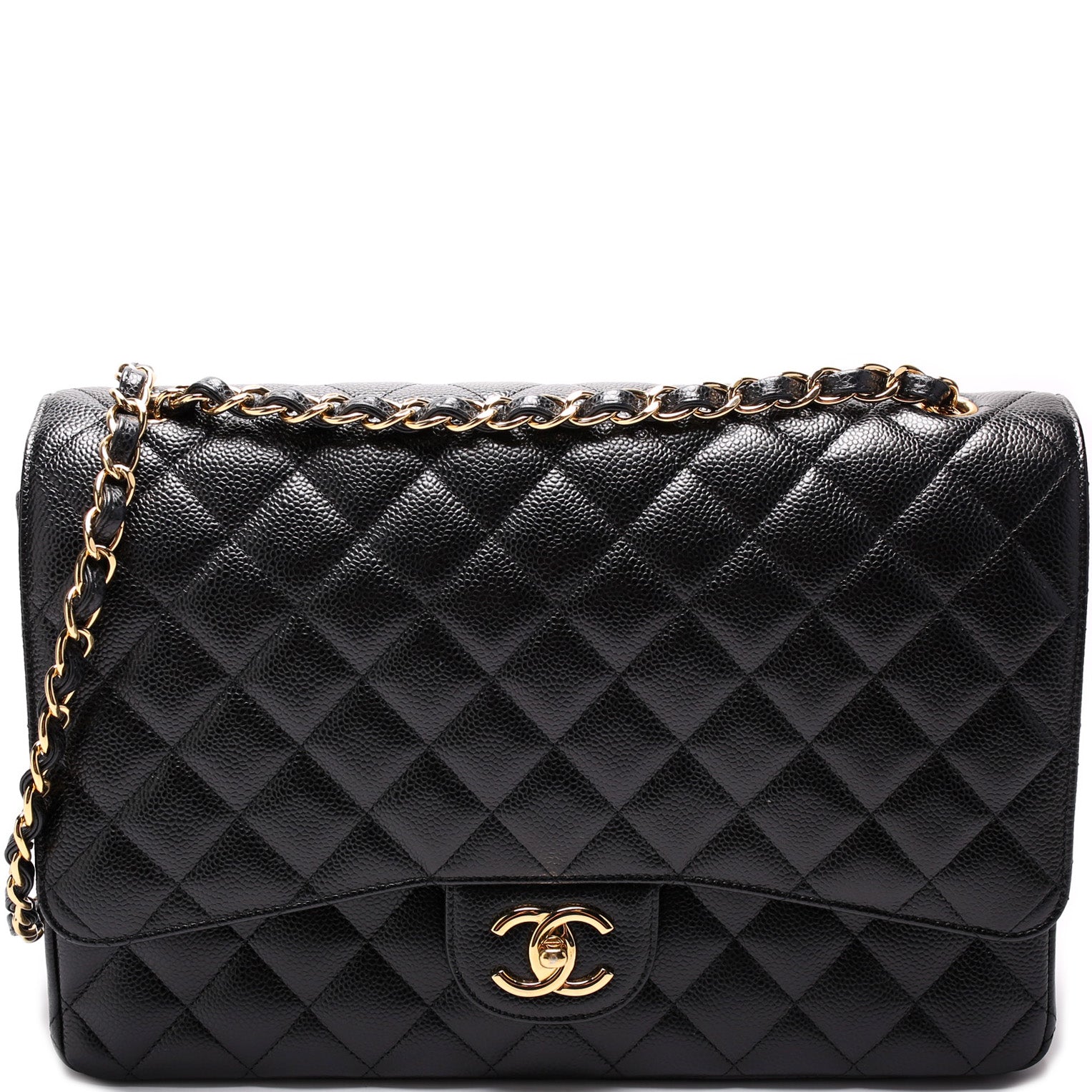 Chanel Classic Flap Maxi. The exterior is in the classic Chanel Caviar leather.Â