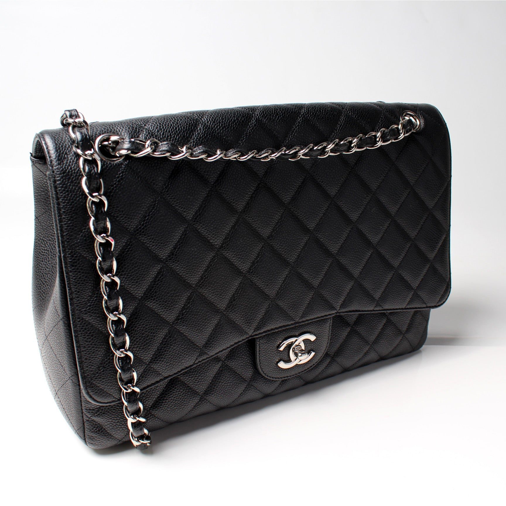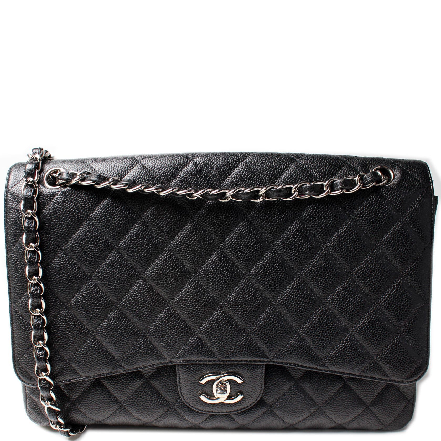 Chanel Classic Flap Maxi Shoulder Bag. The exterior is in the classic Chanel Caviar leather.Â