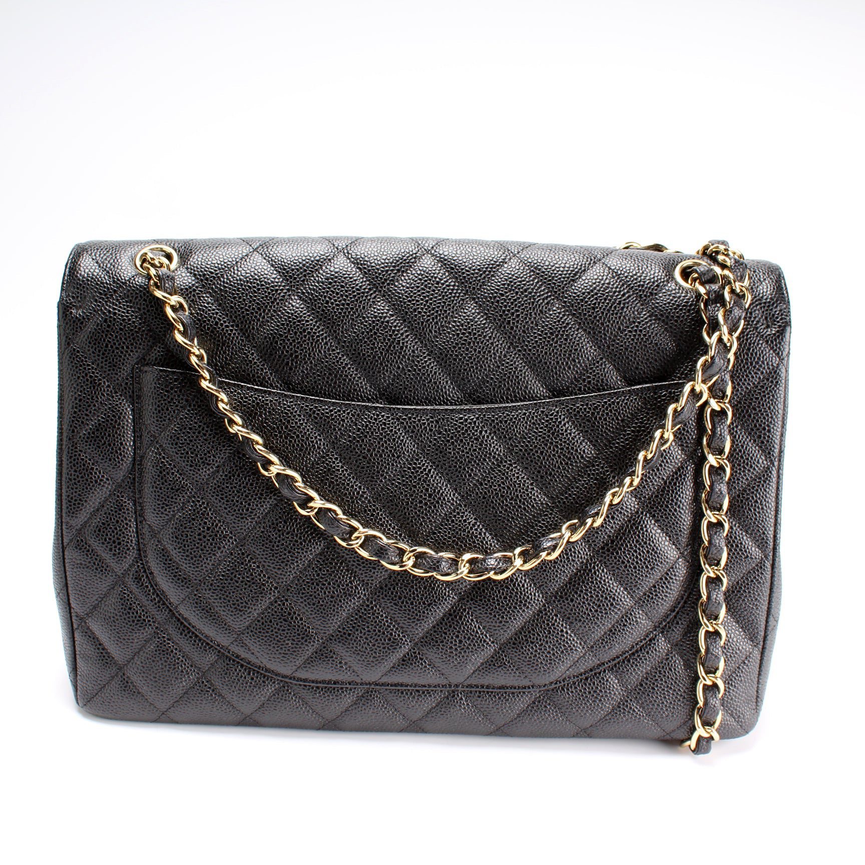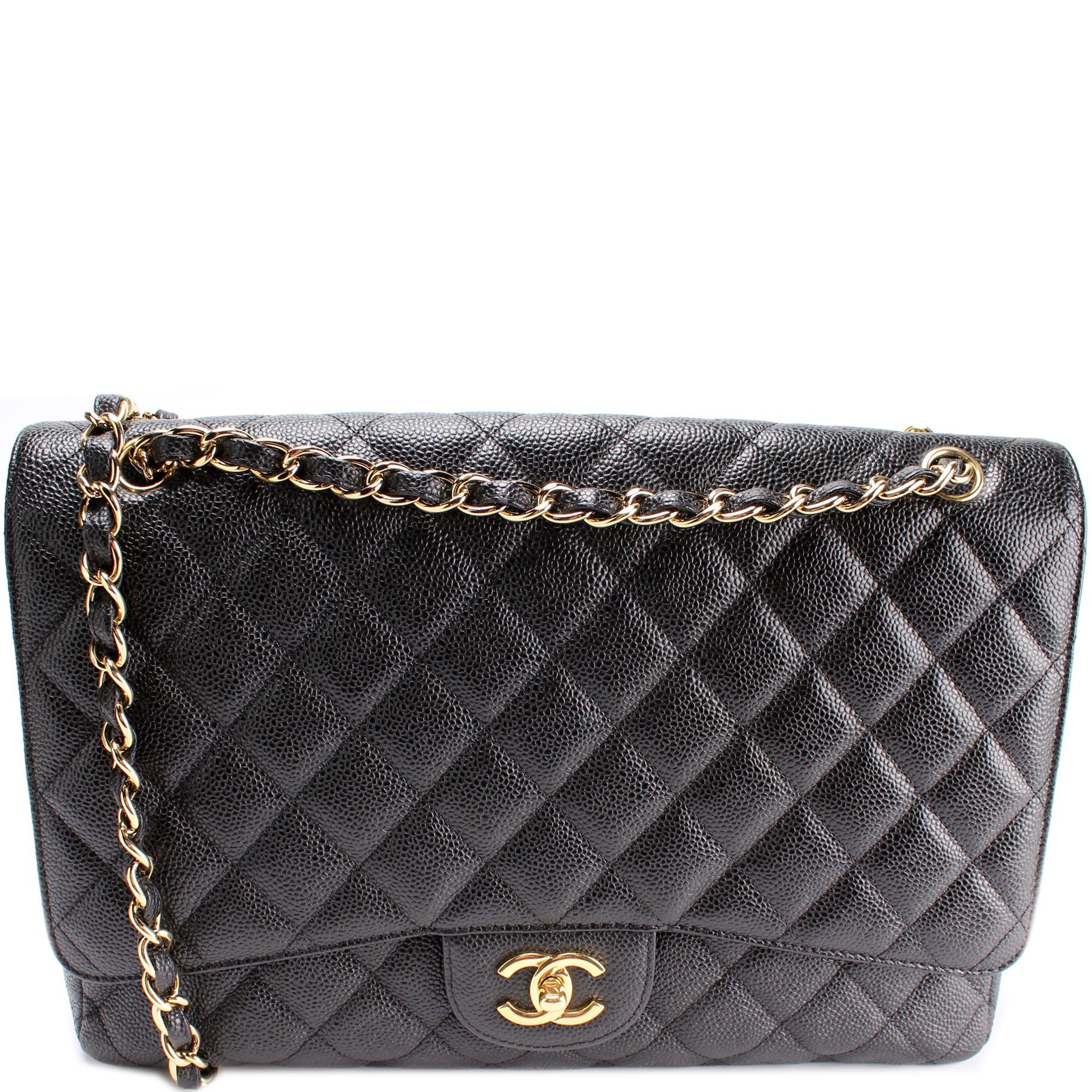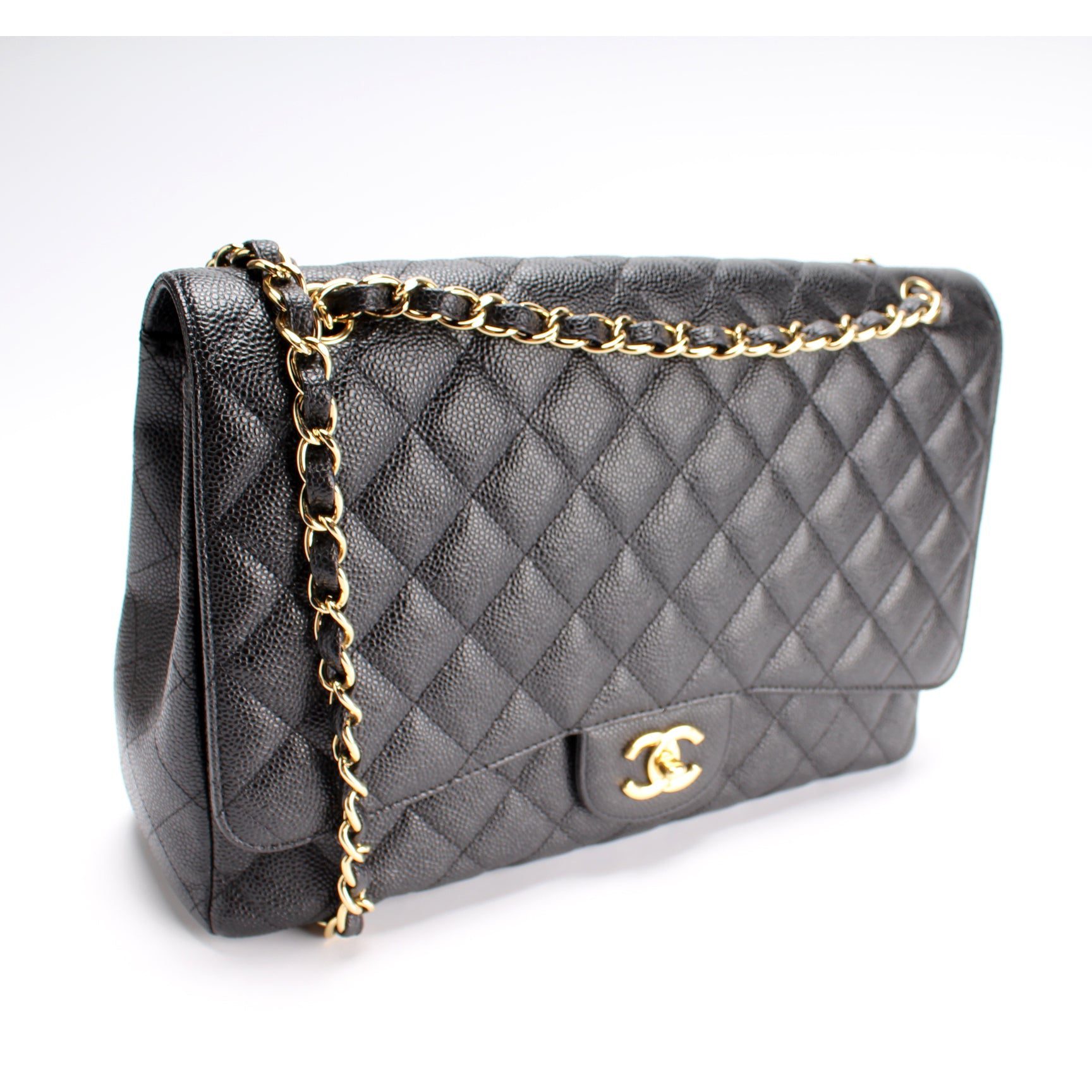 Chanel Classic Flap Maxi�. The exterior is in the classic Chanel Caviar leather. Â