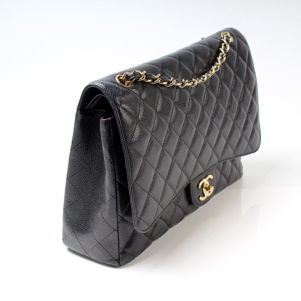 Chanel Classic Flap Maxi. The exterior is in the classic Chanel Caviar leather.Â