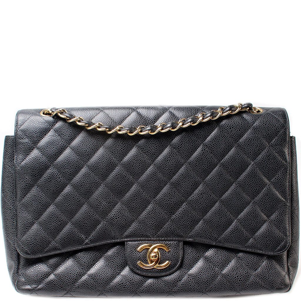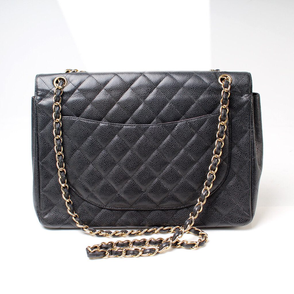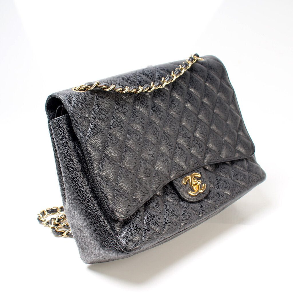 Chanel Classic Flap Maxi Shoulder Bag. The exterior is in the classic Chanel Caviar leather.Â