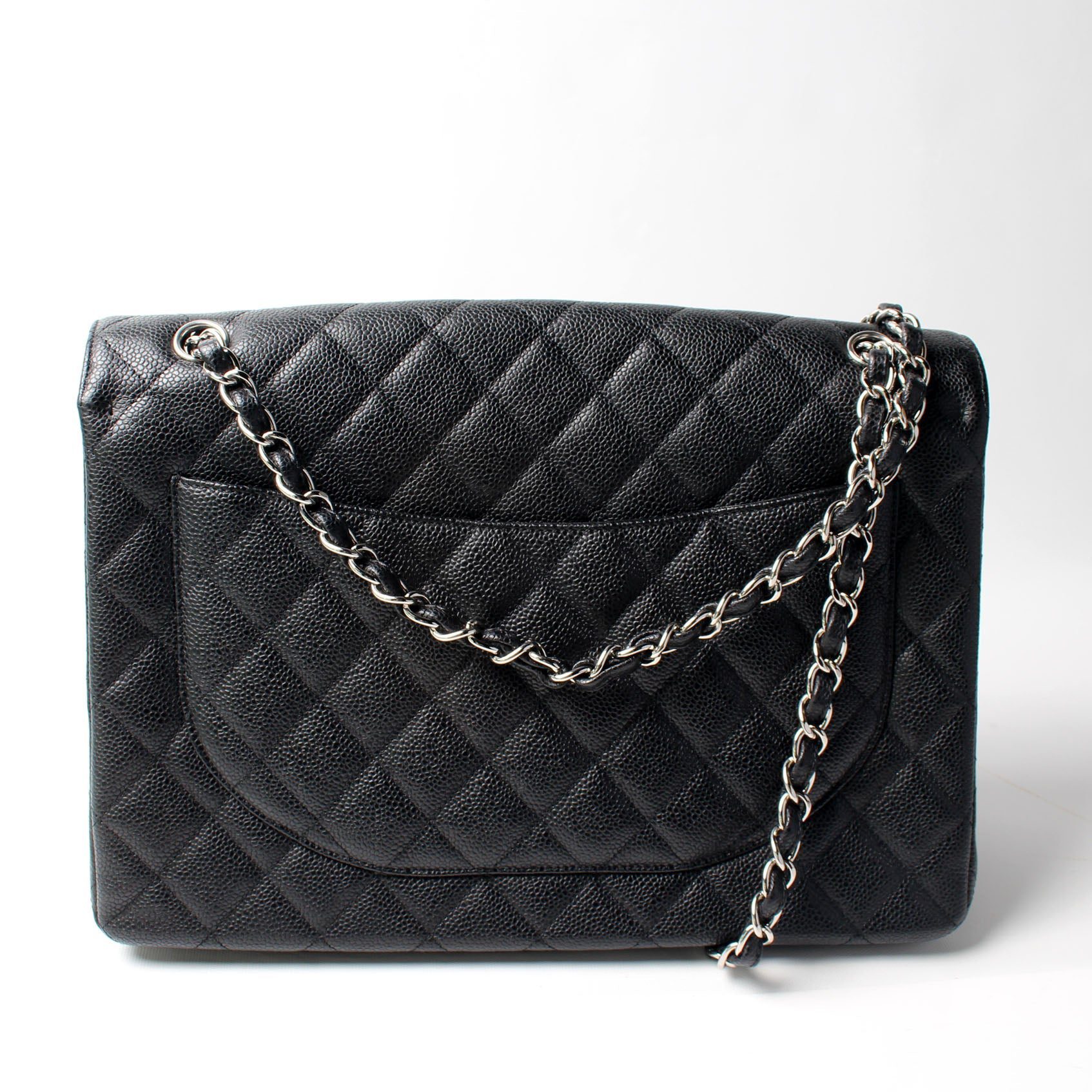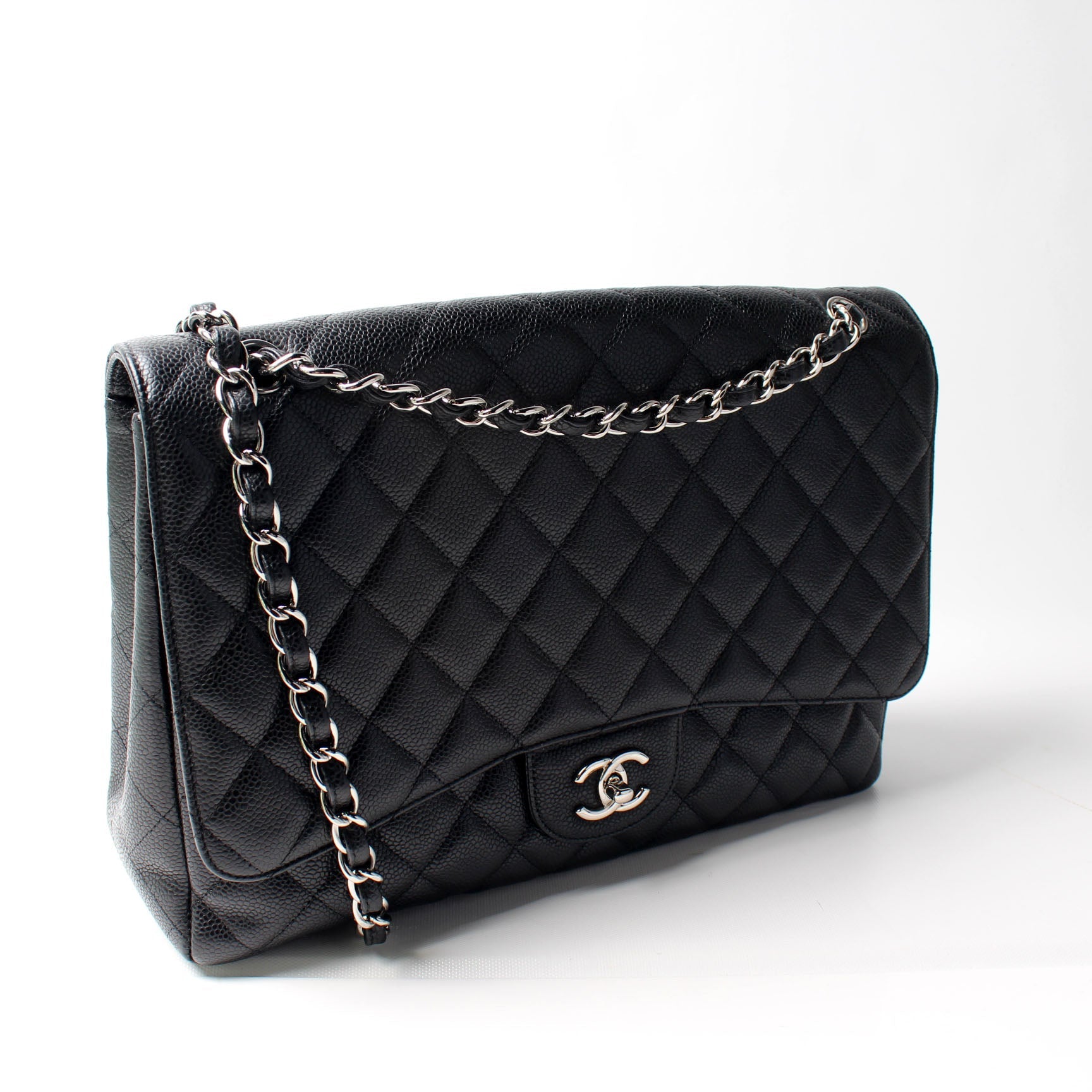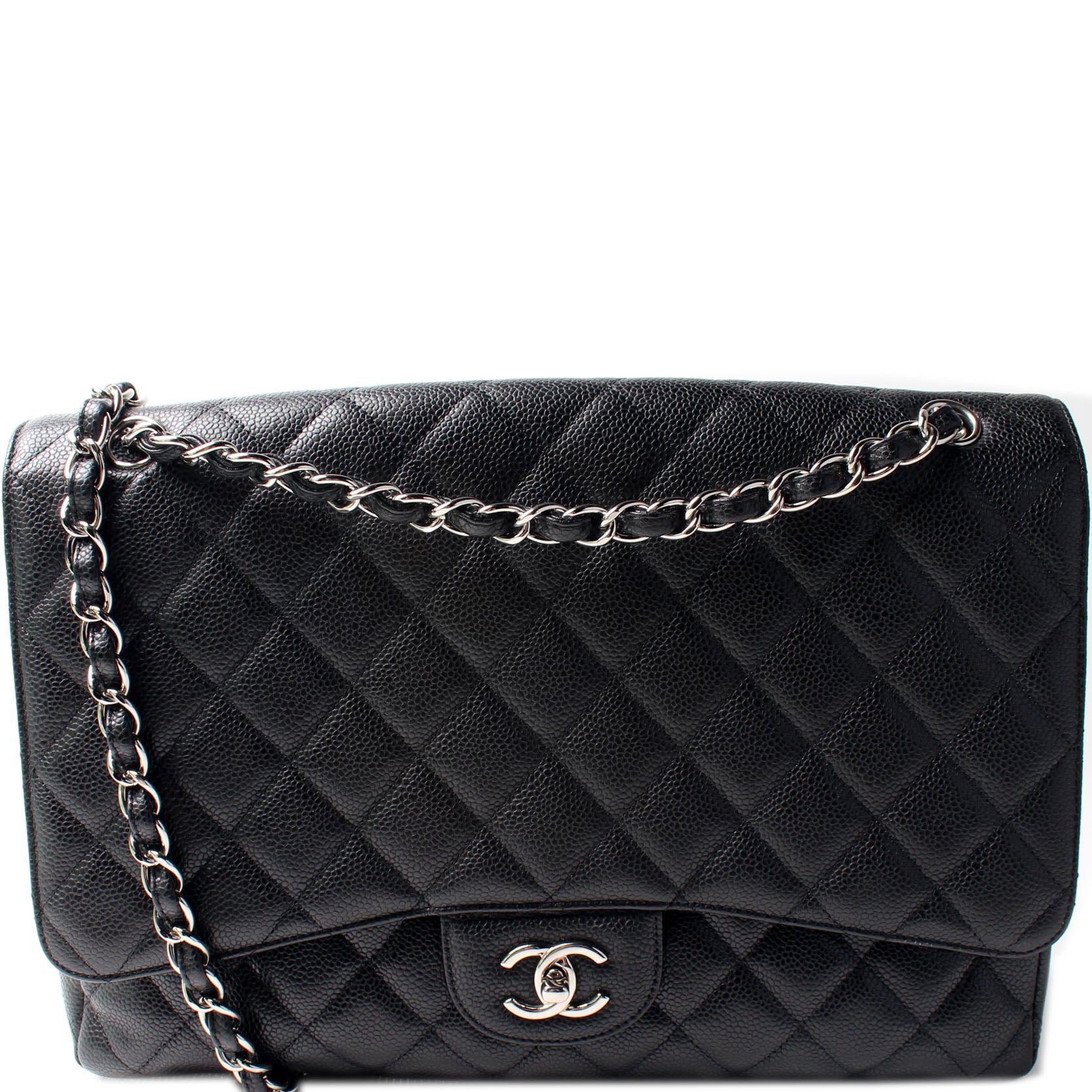 Chanel Classic Flap Maxi Shoulder Bag. The exterior is in the classic Chanel Caviar leather.Â