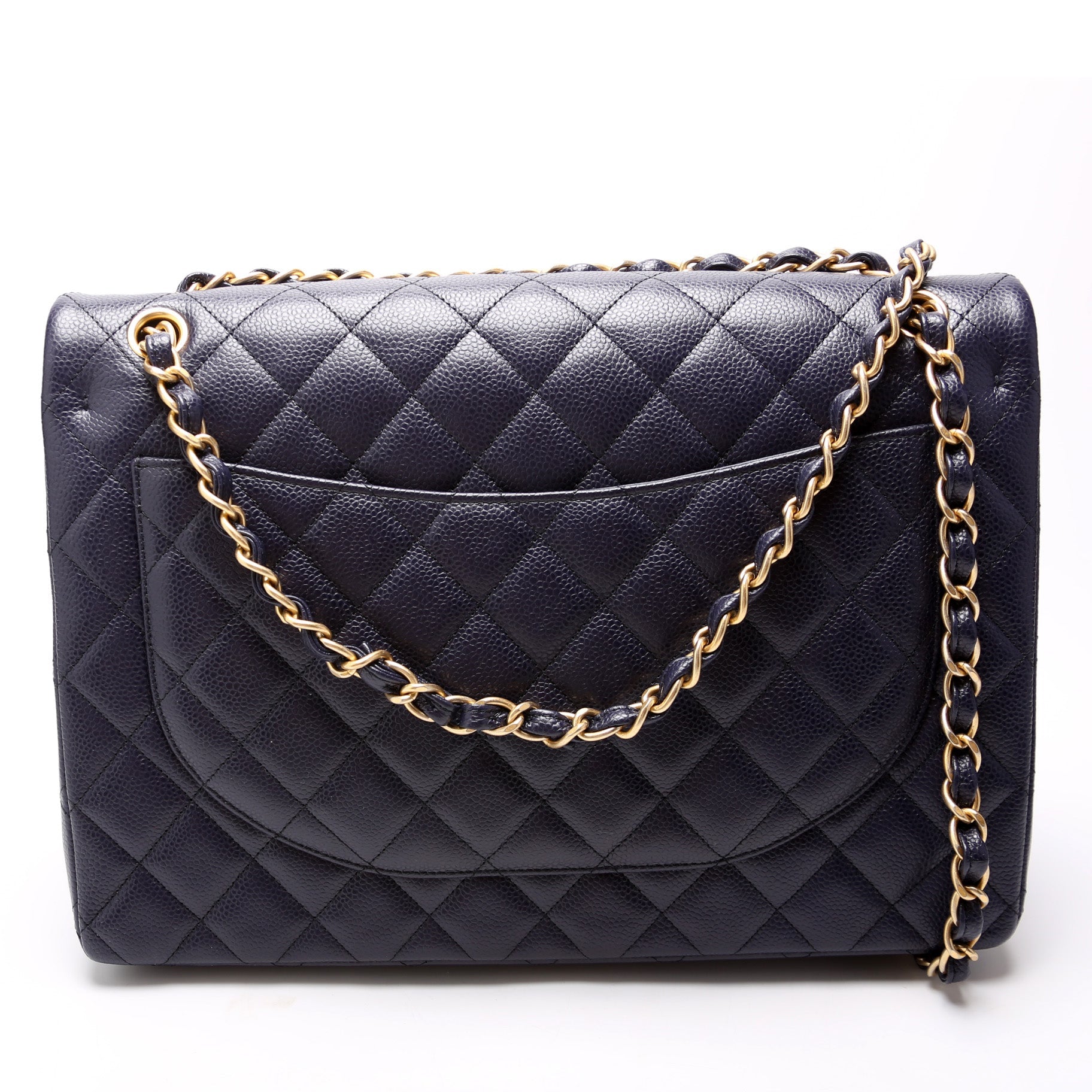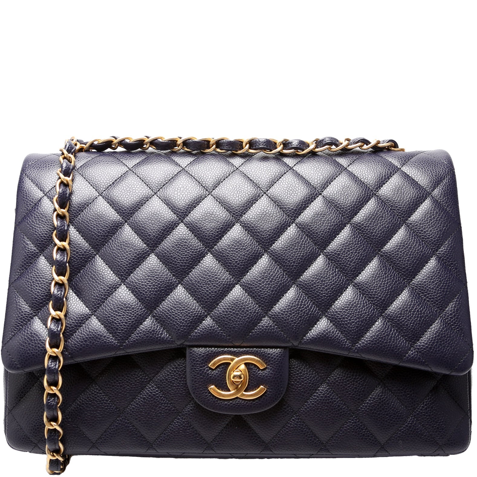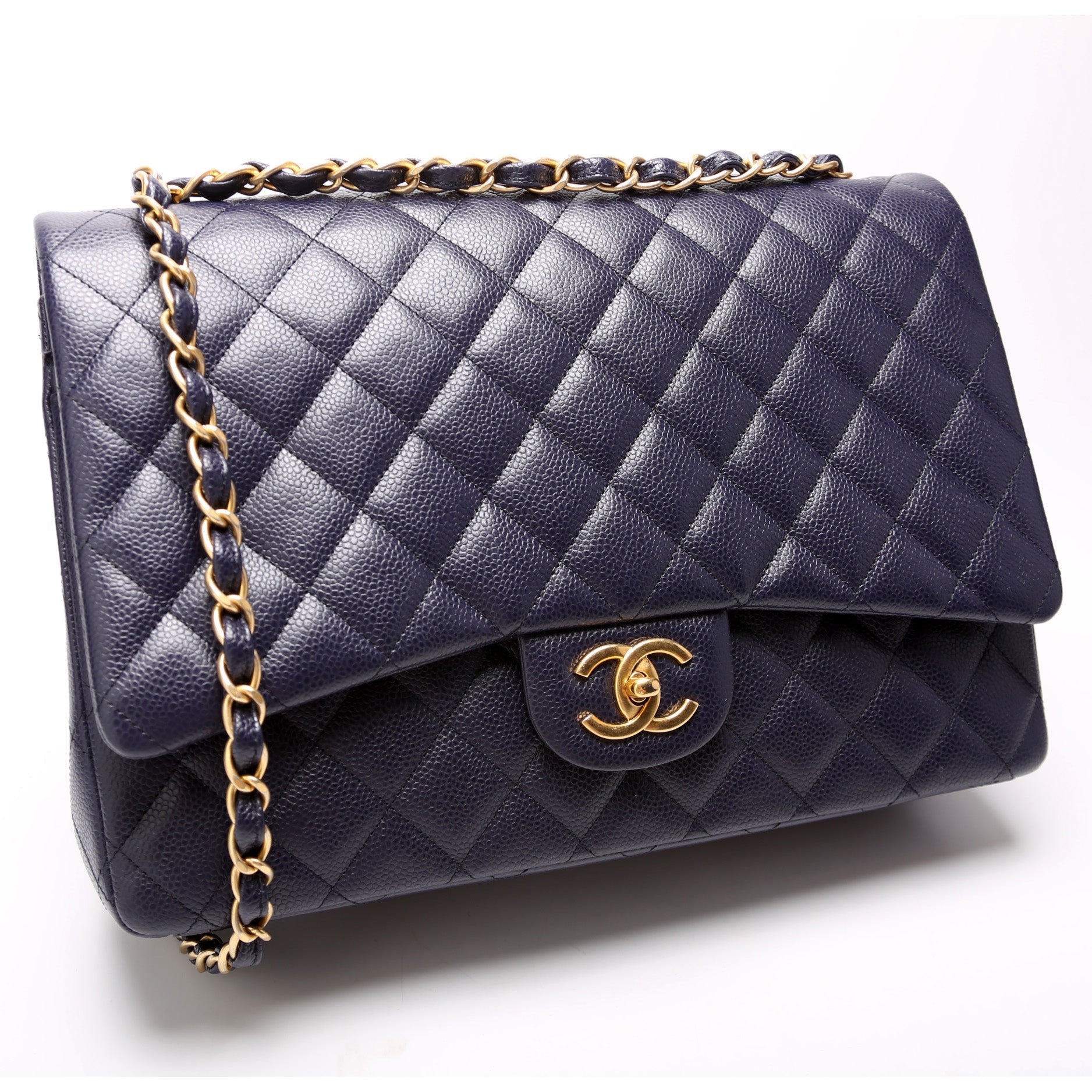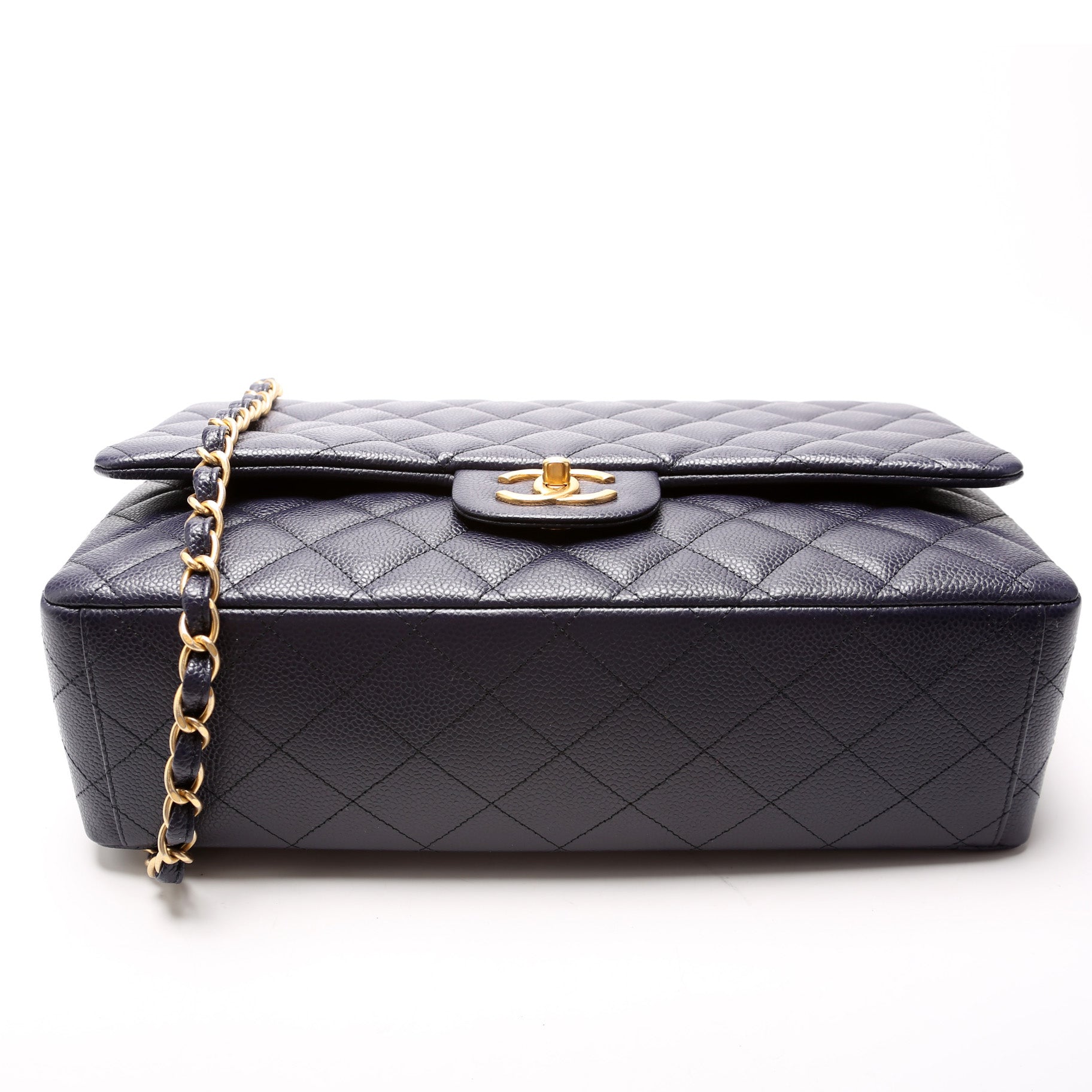 Chanel Classic Flap Maxi. The exterior is in the classic Chanel Caviar leather. Â