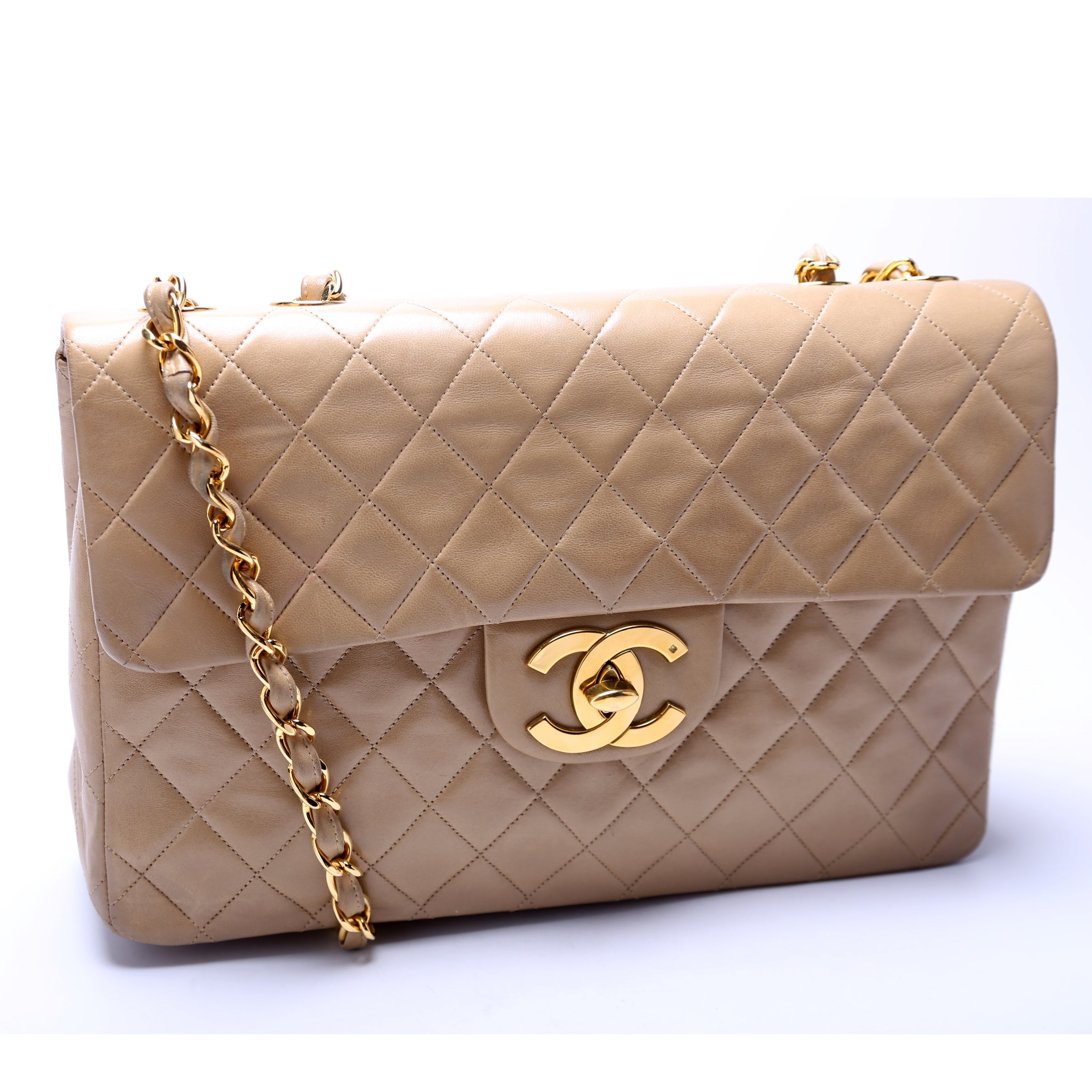 Chanel Classic Vintage Flap. The exterior is in the classic Chanel quilted lambskin leather. Â