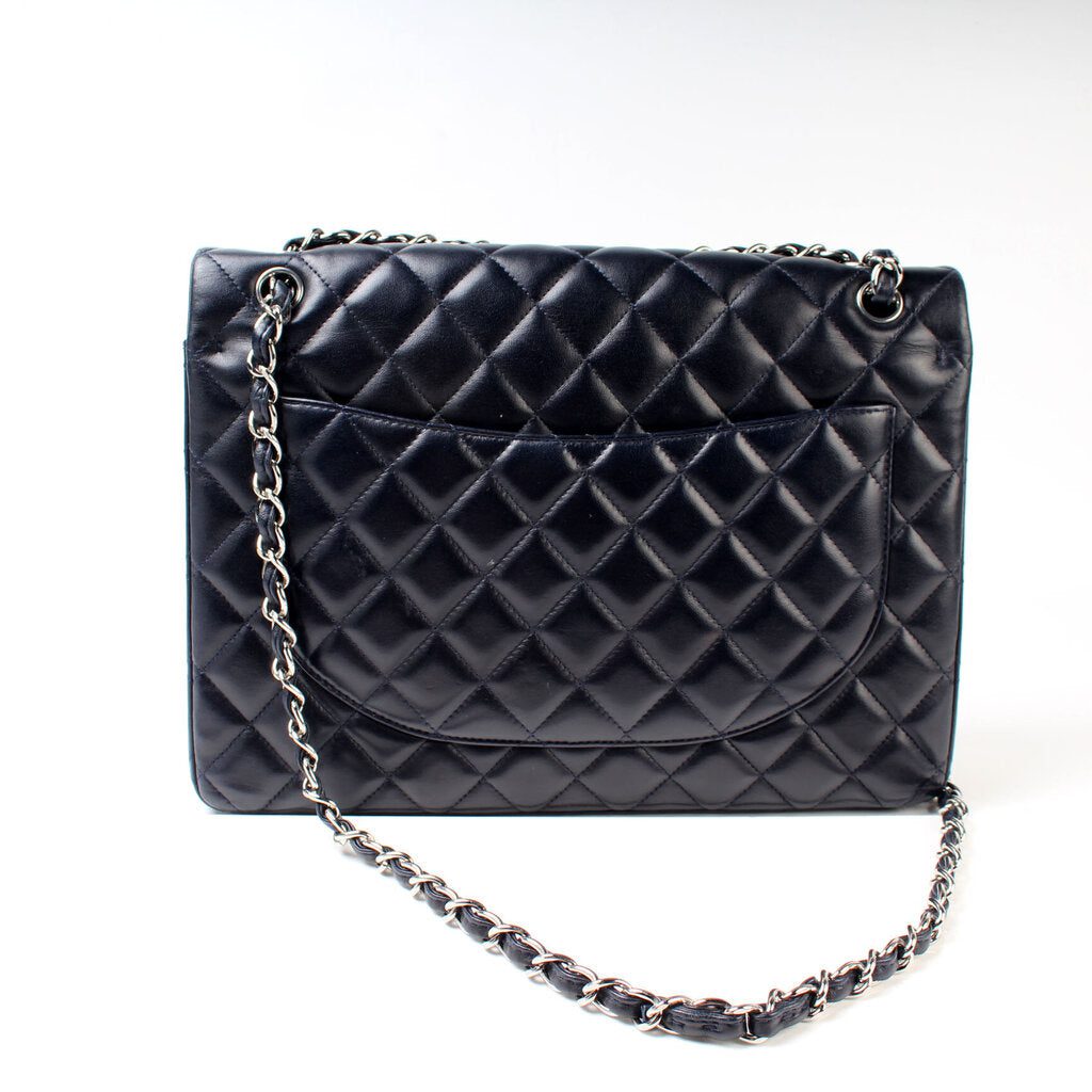 Chanel Classic Flap Maxi Shoulder Bag. The exterior is in the classic Chanel Lambskin leather.Â