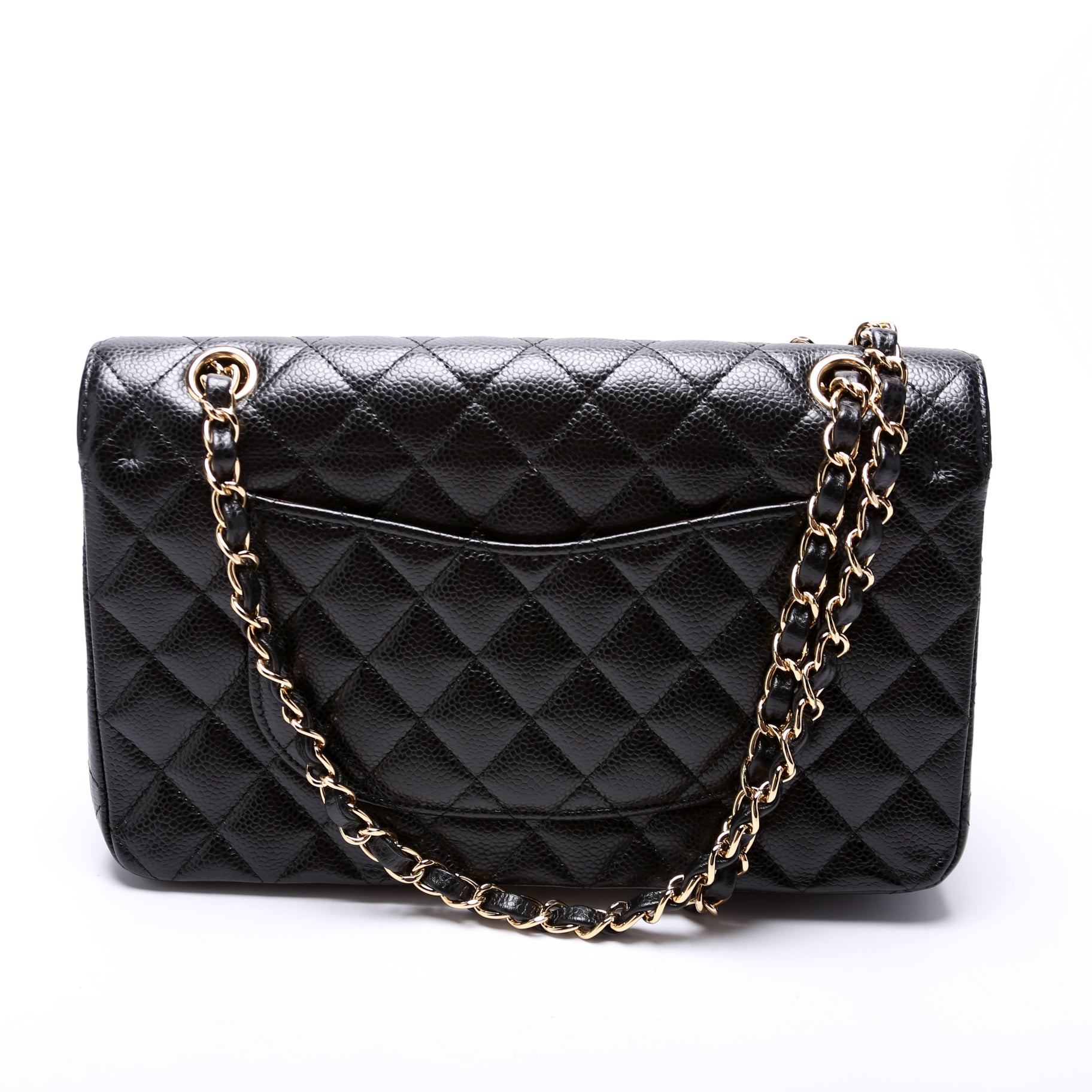 Chanel Classic Medium Flap. The exterior is in the classic caviar leather.