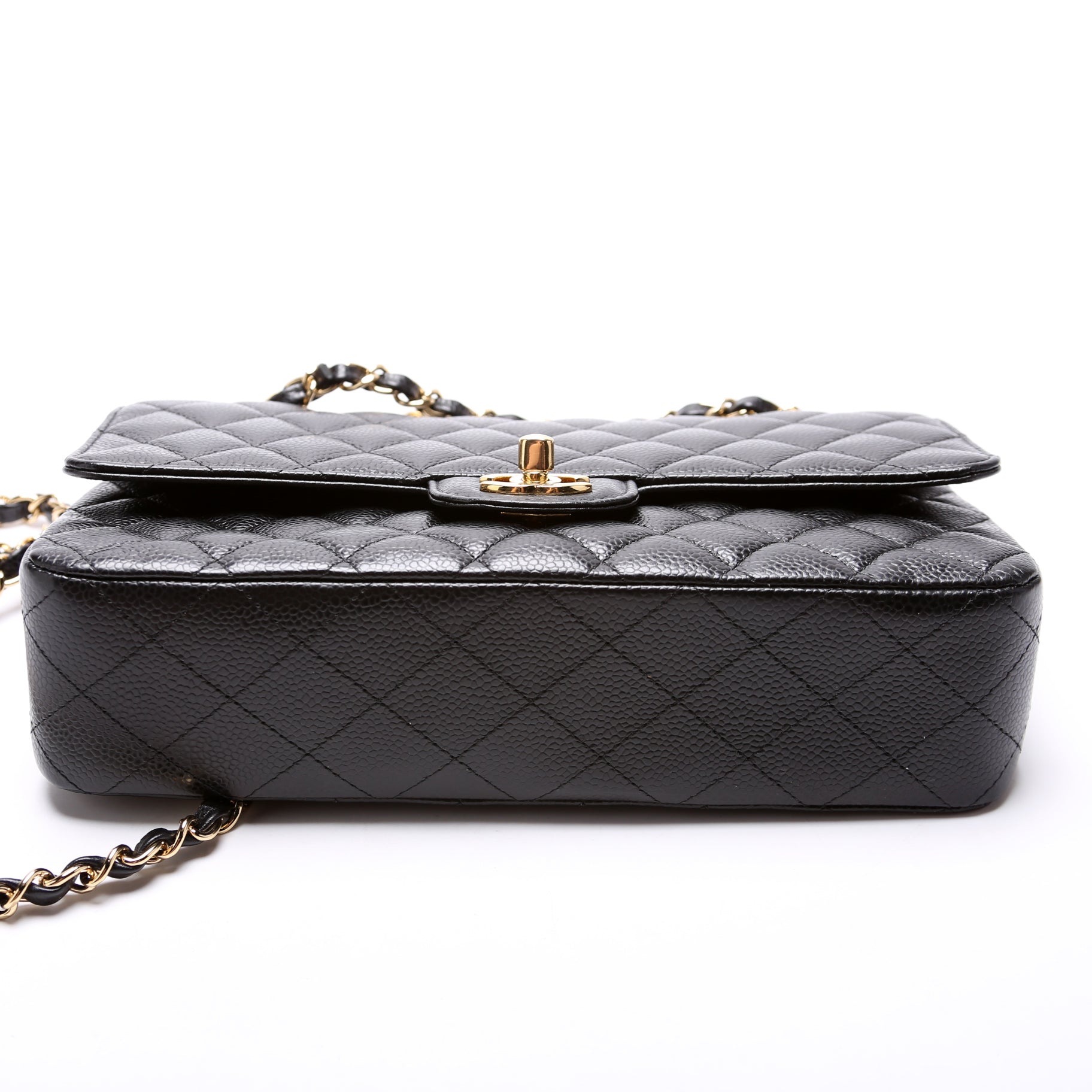 Chanel Classic Medium Flap. The exterior is in the classic caviar leather.