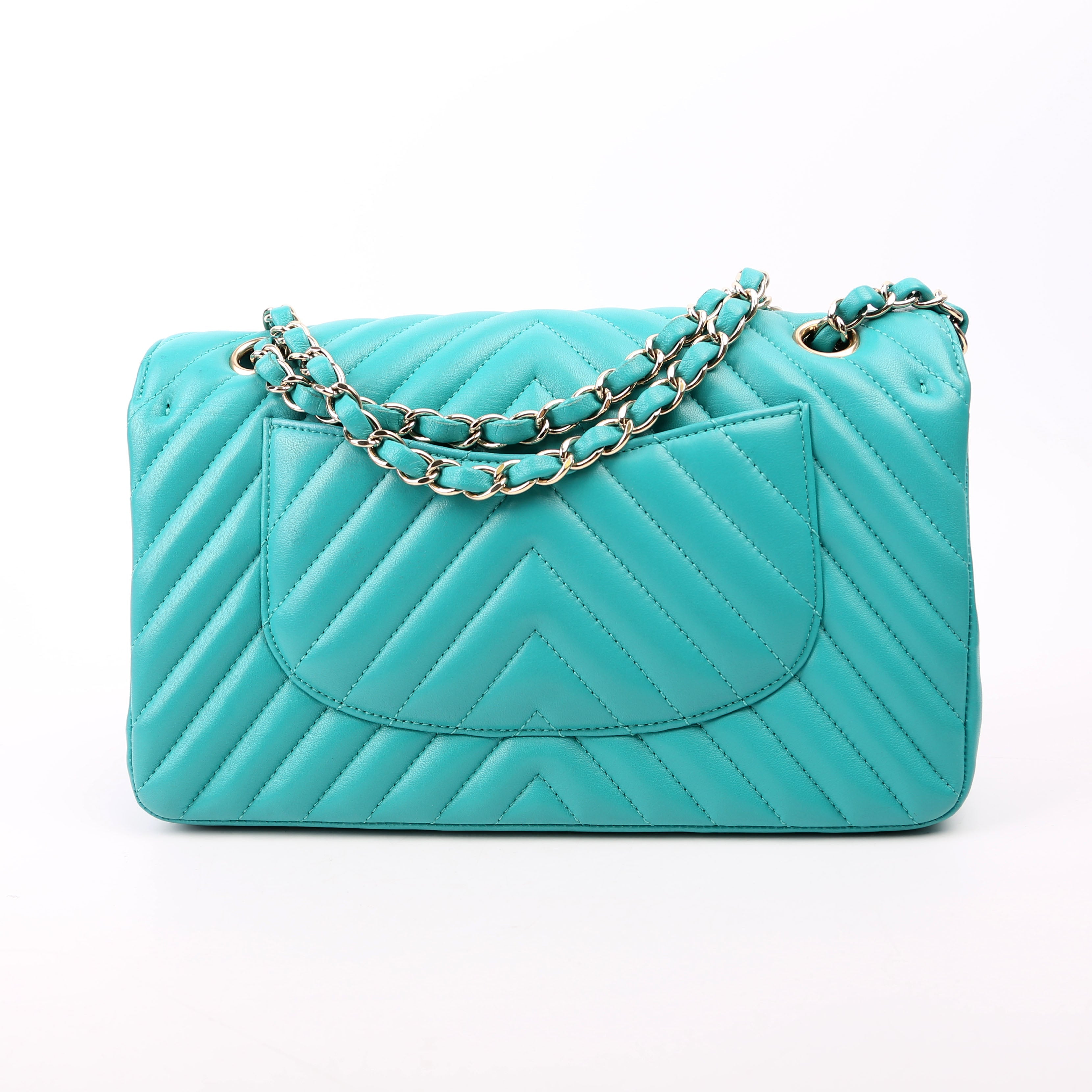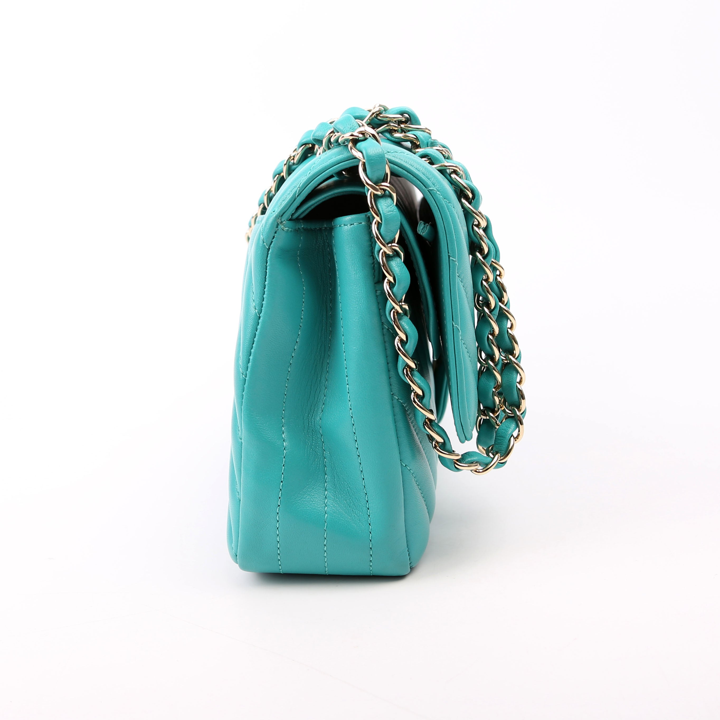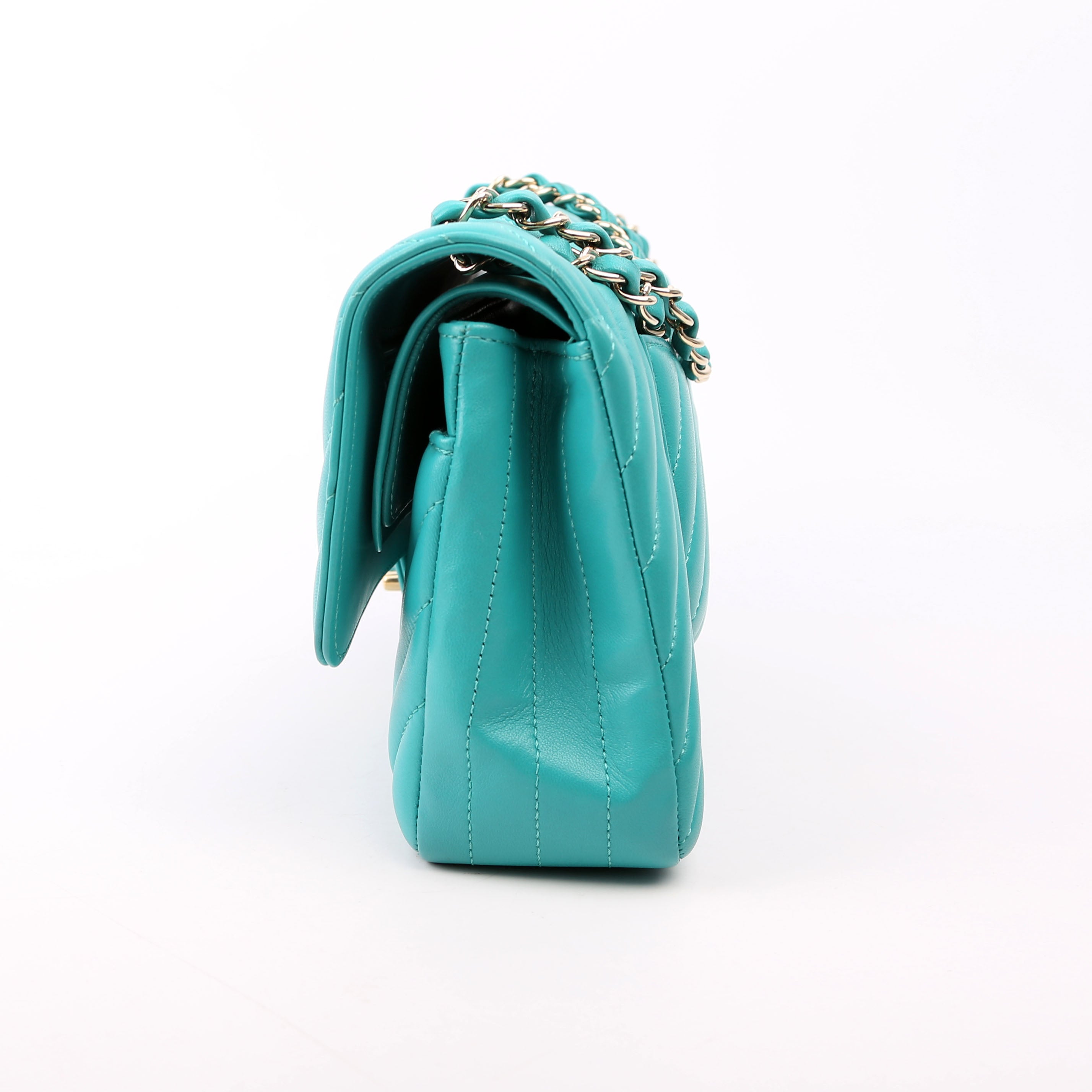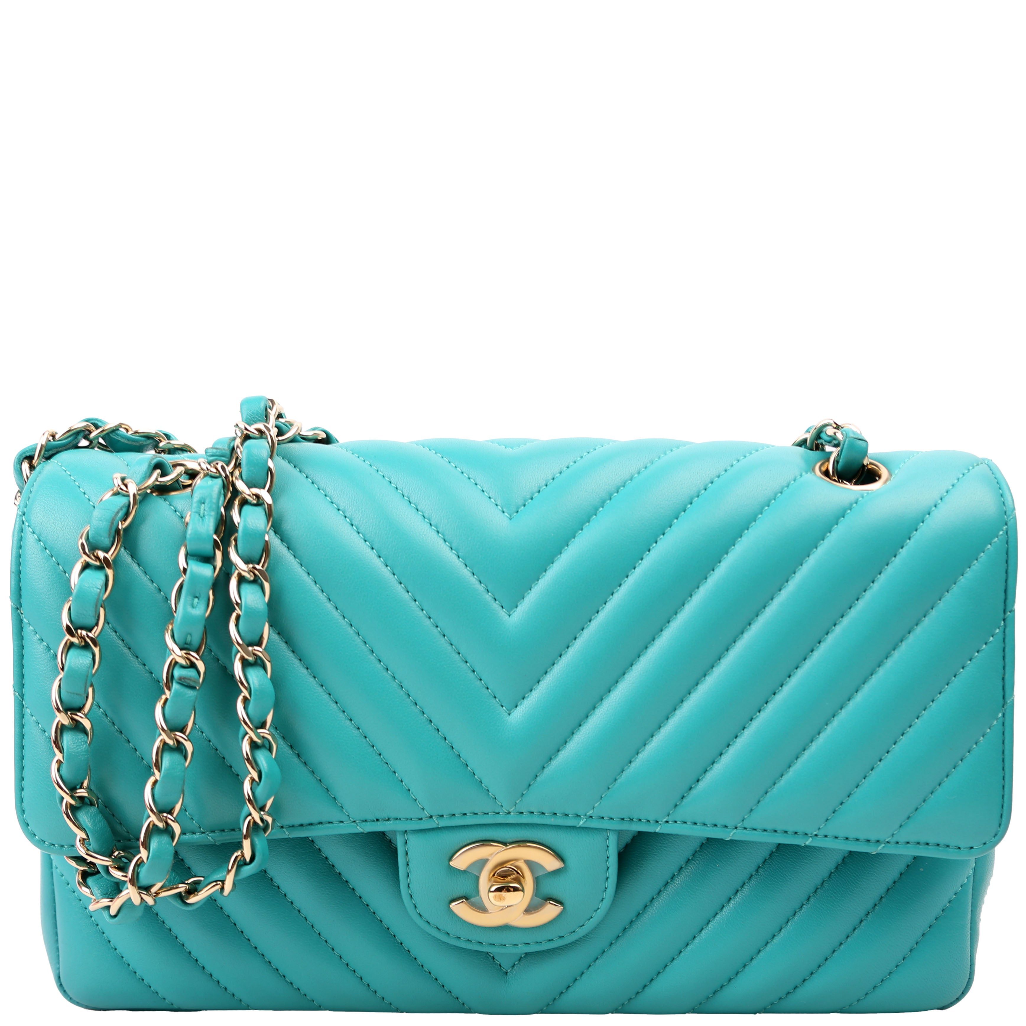 Chanel Classic Flap Medium Chevron Lambskin 23M Teal BagChanel Classic Flap Medium Chevron Lambskin 23M Teal Bag