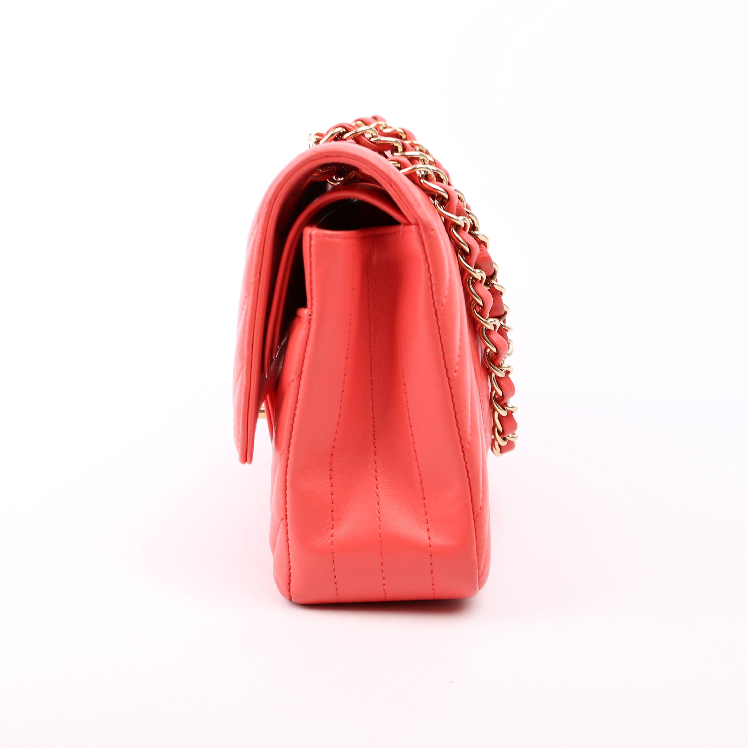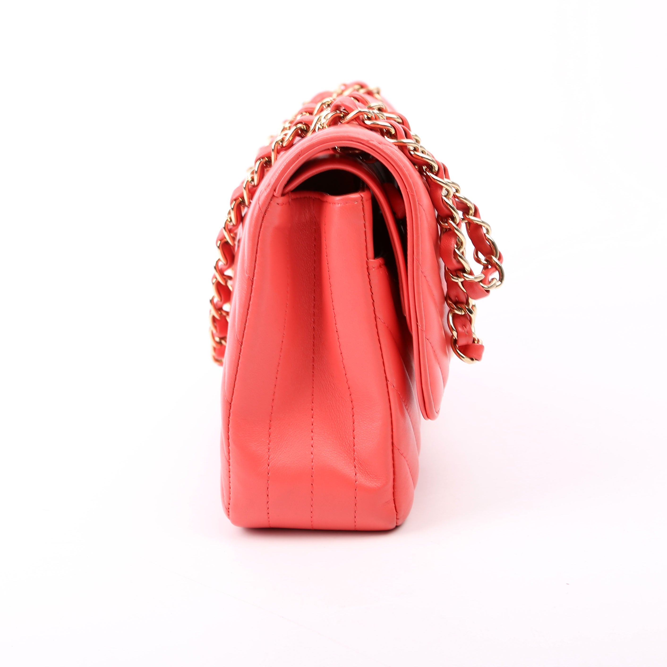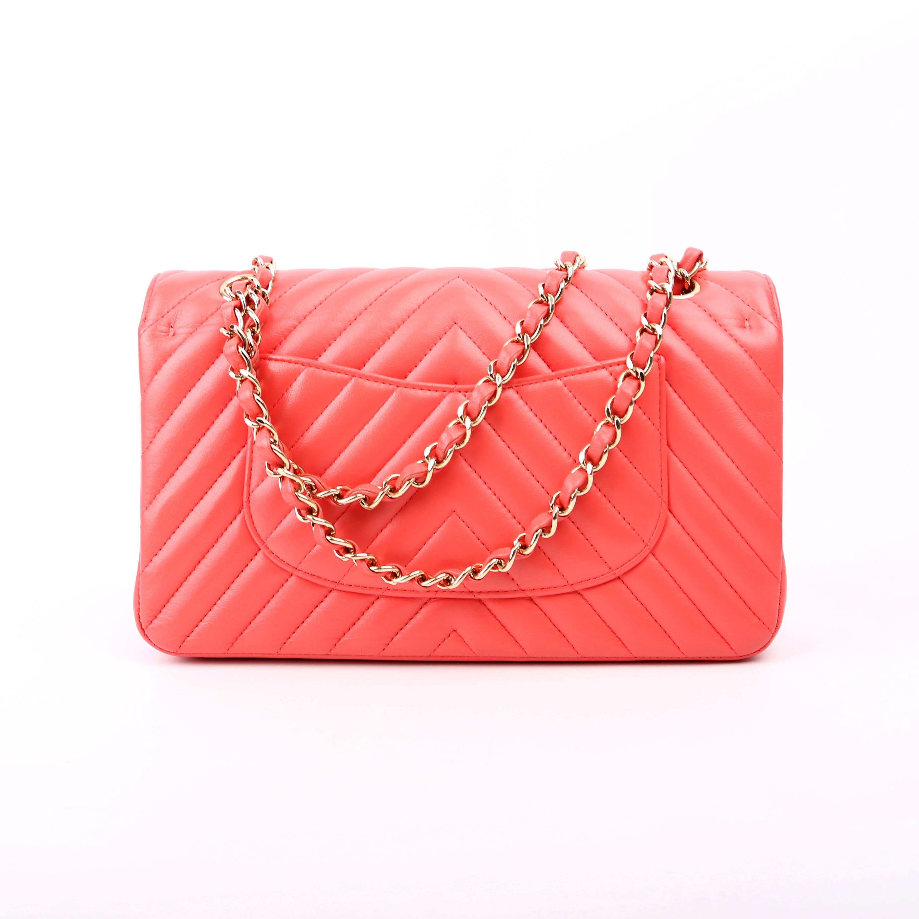 Chanel Classic Flap Medium Chevron. The exterior is in the classic Chanel Lambskin leather.Â