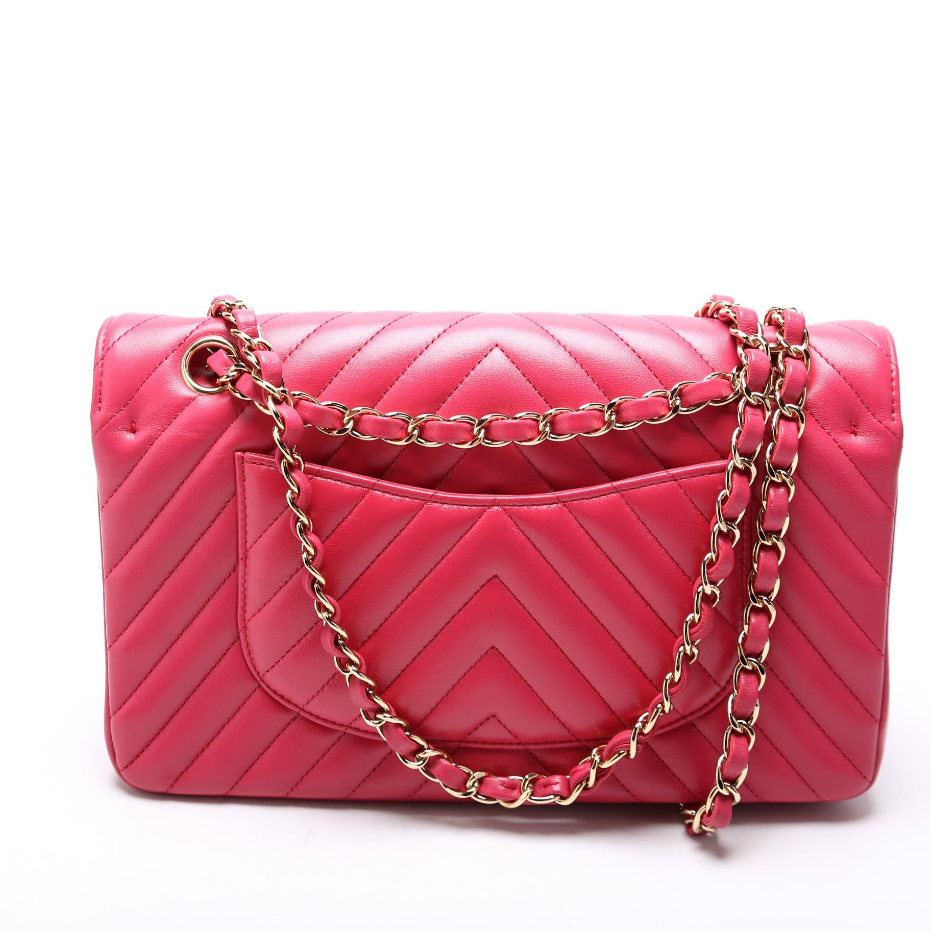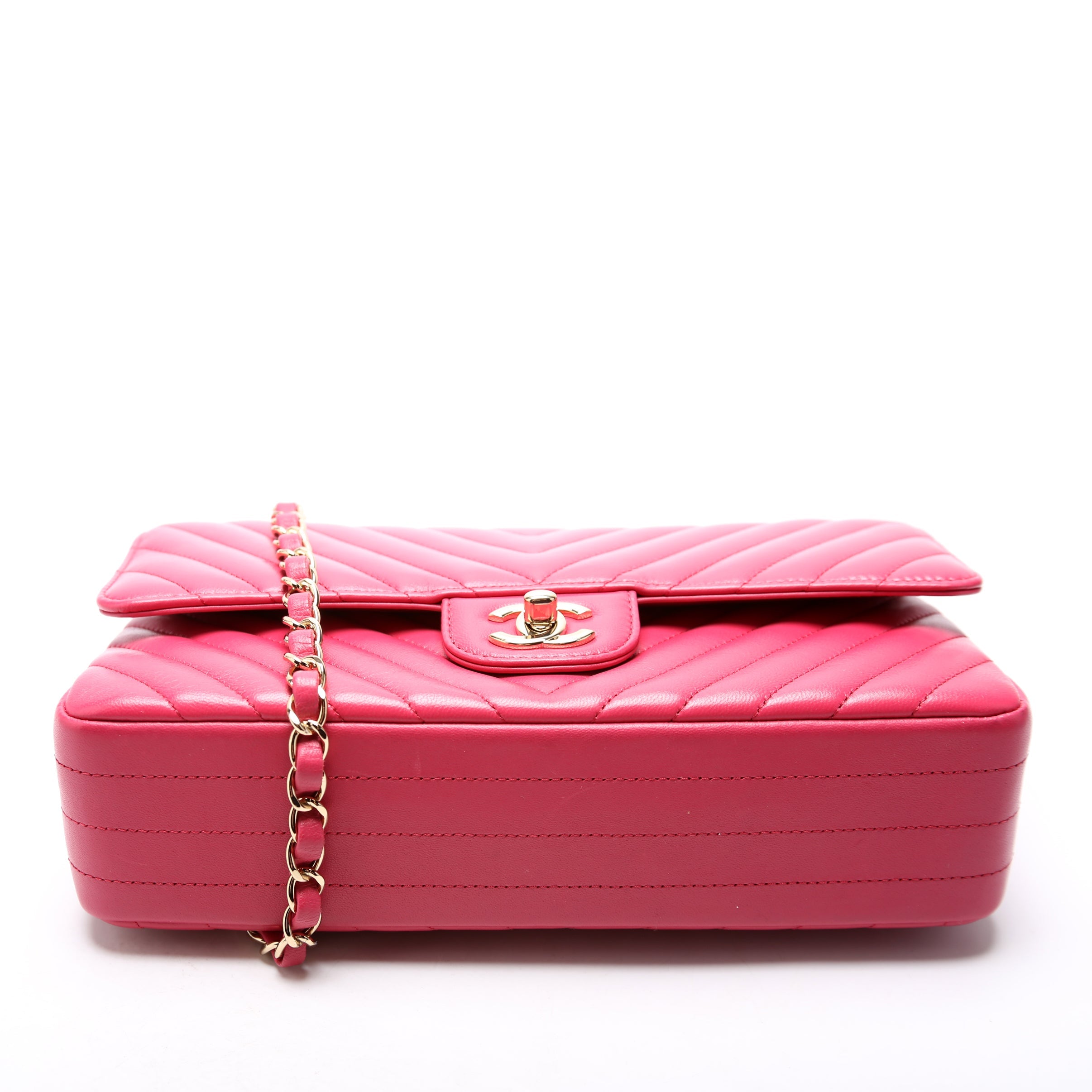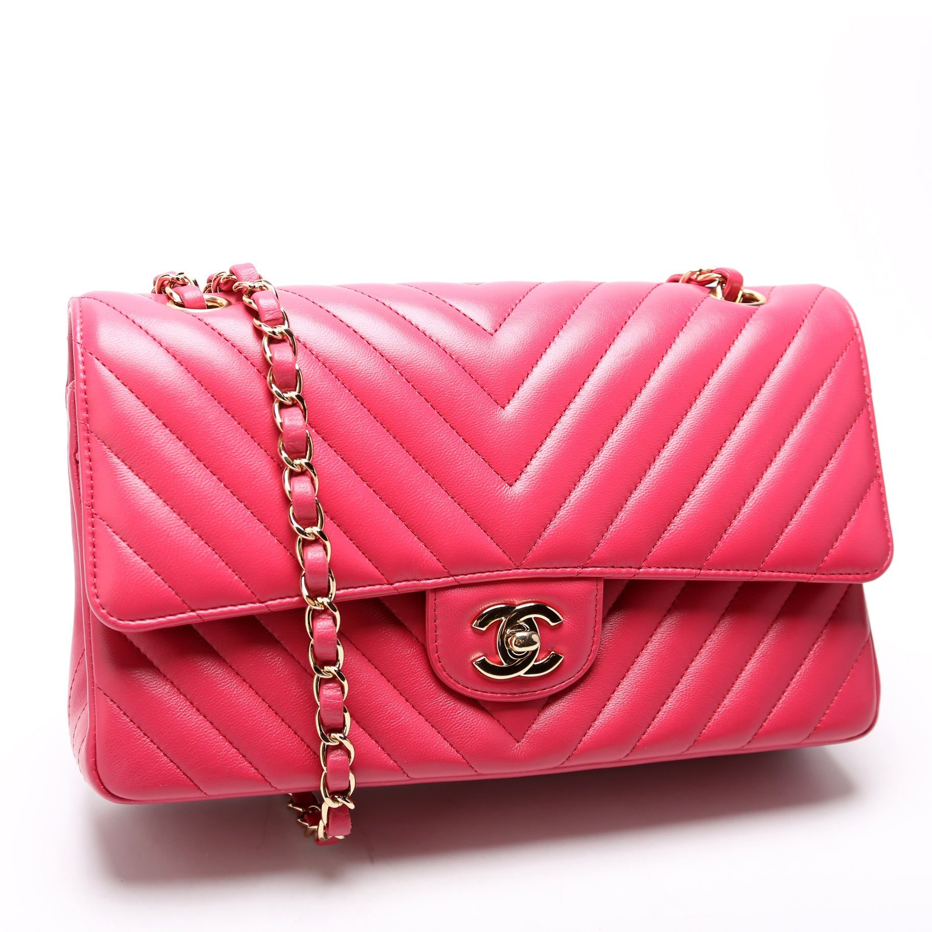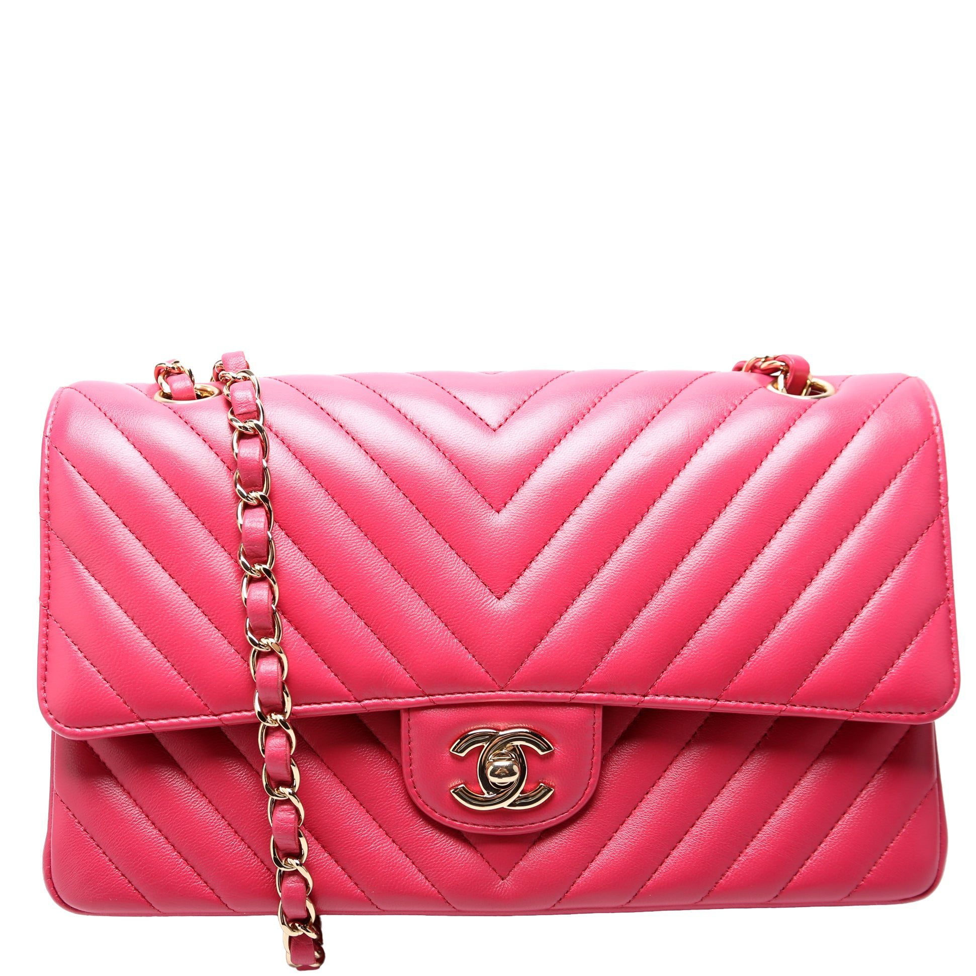 Chanel Classic Flap Medium Chevron. The exterior is in the classic Chanel Lambskin leather.Â
