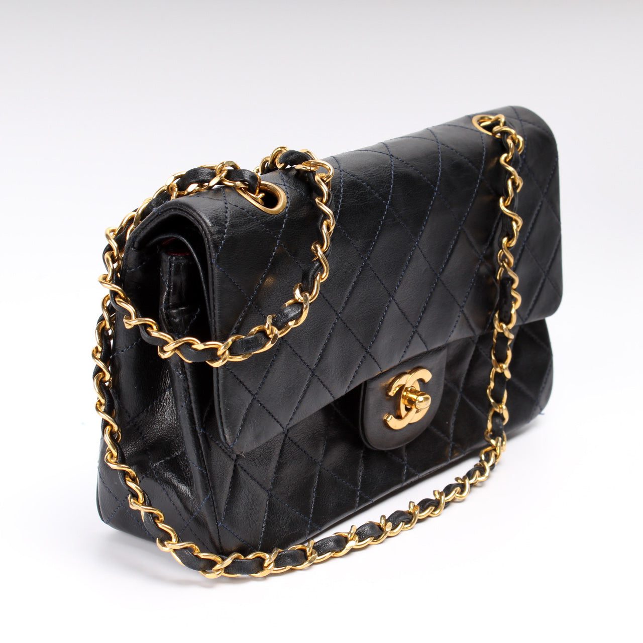 Chanel Classic Flap Small. The exterior is in the classic Chanel Lambskin leather. Â